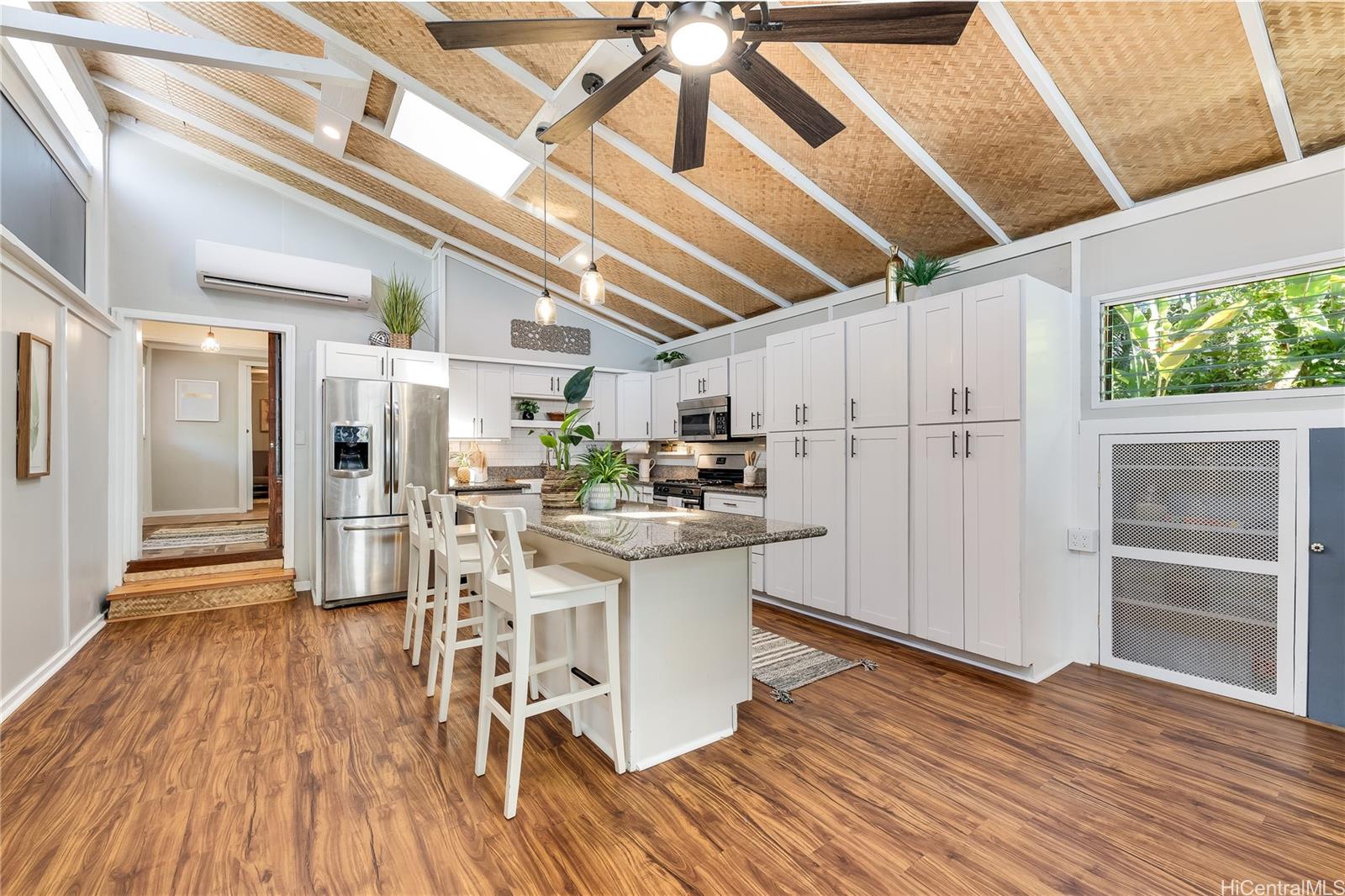 カハルウで静かなウォーターフロントライフを満喫しませんか?広々とした3,088平方フィート(約280平方メートル)のこの物件は、ベッドルーム3室、バスルーム3室を備え、静かな田舎の魅力と、わずか数分の距離にあるカネオヘの利便性が融合しています。メインのリビングエリアにはベッドルーム3室、バスルーム2室、アーチ型天井、そしてカネオヘ湾の素晴らしい景色を望むオープンレイアウトが魅力です。緑豊かな1/3エーカー(約1.2ヘクタール)の敷地には、バナナやライムの木、庭園スペース、手入れの行き届いた熱帯植物の植栽、そして2台のガスグリルを備えた屋根付きの調理エリアがあります。湾を見下ろす屋根付きデッキから息を呑むような日の出をお楽しみください。その後は、裏庭で釣り、カヤック(3台分)、ボート遊びなど、思いのままにお楽しみいただけます。快適さと持続可能性を重視して設計されたこの住宅には、テスラソーラーパネル46枚、パワーウォールバッテリー3台、スプリットエアコンと窓用ユニット、カーポート、そして工具やメンテナンス用品を完備した巨大なガレージ/ワークショップが備わっています。家具付きで販売され、売主は20フィートのベイボートも売却に含めてもいいと考えています!3つのスタジオスペースはそれぞれ専用の入り口とウェットバーを備えており、ゲストや親戚、クリエイティブな用途に柔軟に対応できます。