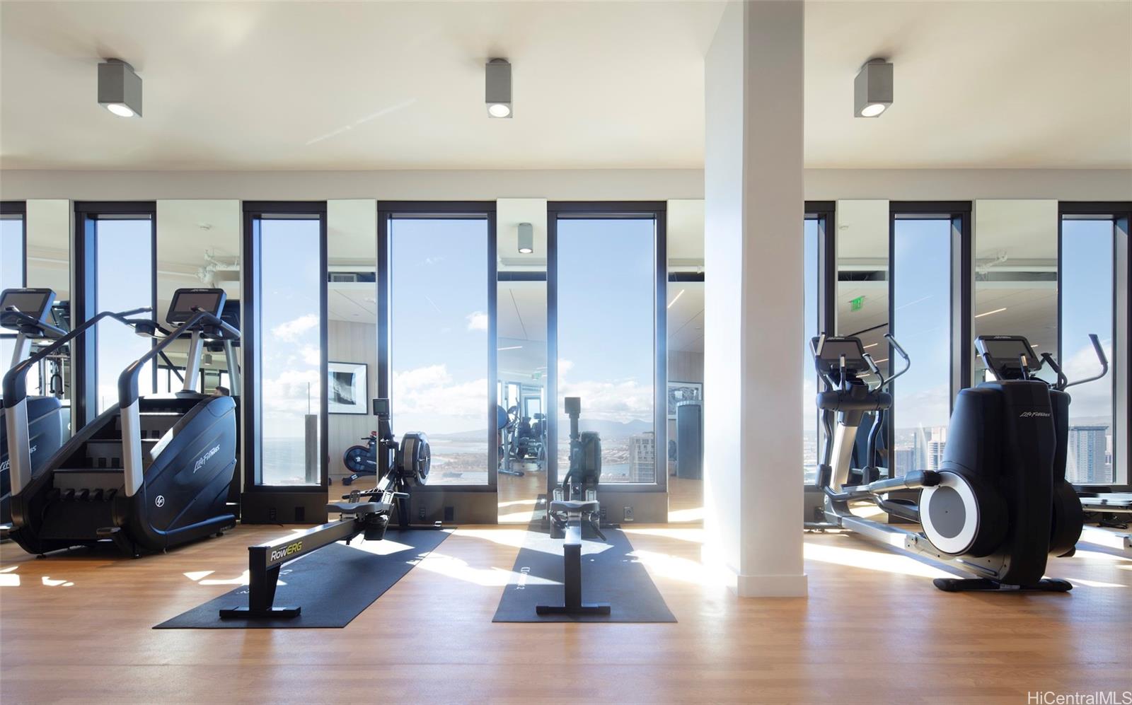 Beautiful ocean view studio in "A'ali'i" in Ward Village! Elegantly designed by Soloman Cordwell Buenz architects with Rottet Studio (interior designers of Four Seasons), stepping into A'ali'i is like stepping into a 5 star hotel. Unit includes fully furnished (elegantly interior designed valued at $30k, NOT MURPHY BED!) Located in the heart of Kaka'ako, with Whole Foods Market, numerous shopping and dining venues, and Ala Moana beach all within walking distance, this modern residence has a large pool deck with multiple cabana and grilling areas and party rooms. The rooftop "Lanai" on the 42nd floor, boasts Sky Lounge, event space, private dining room, fitness center with sweeping ocean and city views! Enjoy the ocean view from your lanai. 1 parking included.