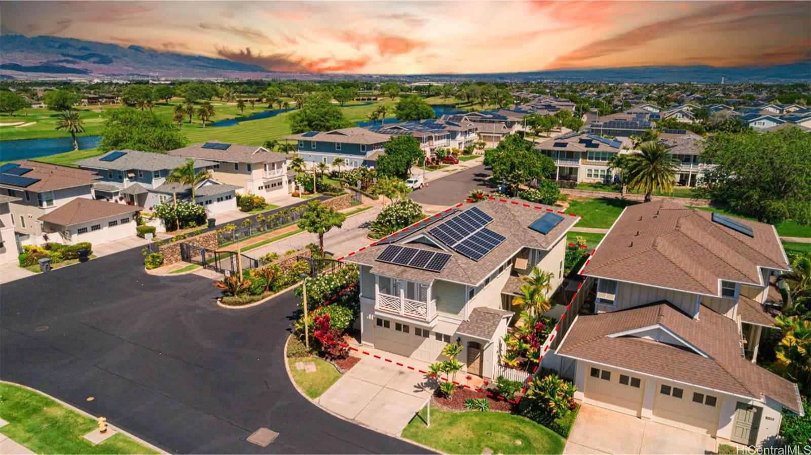 12月13日(土)午後2時から5時までオープンハウス。12月14日(日)午後3時から5時までオープンハウス。ホアカレイゴルフコースのベストプライス住宅—眺望の良い角地!ゴルフボールの心配をせずにゴルフコースライフをお楽しみください。この角地の住宅はプライバシー、スペース、そして美しいフェアウェイと山の景色を提供します。明るくオープンコンセプトのフロアプランは、最先端の家電製品を備えたモダンなキッチン、大きなアイランド、快適さと娯楽の両方のために設計された広々としたリビングとダイニングエリアを備えています。2階には、リモートワークや勉強に最適な多目的ワークスペース、広々としたベッドルーム、十分なクローゼット収納があります。26枚のソーラーパネルを所有しており、年間を通してエネルギー効率と月々のコスト削減をお楽しみいただけます。丁寧に整備されたコミュニティに位置し、広い通り、緑豊かな景観、ウォーキングやサイクリングコース、複数のプール、そしてプライベートなワイカイハレラグーンへのアクセスがあり、パドルボード、カヤック、または日光浴をお楽しみいただけます。活気に満ち、交通の便が良く、理想的な立地にあるホアカレイライフスタイルをお楽しみください。