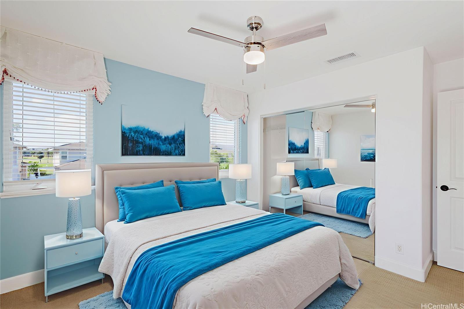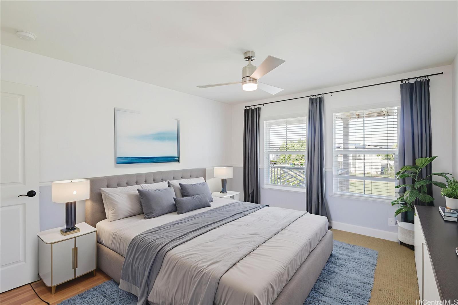 Best-Priced Home on the Hoakalei Golf Course — Corner Lot with Views! Enjoy golf course living without the worry of stray golf balls. This corner-lot home offers privacy, space, and scenic fairway and mountain views. The bright, open-concept floor plan features a modern kitchen with state-of-the-art appliances, a large island, and generous living and dining areas designed for both comfort and entertaining. Upstairs includes a versatile workspace ideal for remote work or study, along with spacious bedrooms and ample closet storage throughout. With 26 owned solar panels, enjoy energy efficiency and lower monthly costs year-round. Located in a meticulously maintained community with wide streets, lush landscaping, walking and biking paths, multiple pools, and access to the private Wai Kai Hale Lagoon for paddle boarding, kayaking, or relaxing in the sun. Live the Hoakalei lifestyle—vibrant, connected, and perfectly positioned.