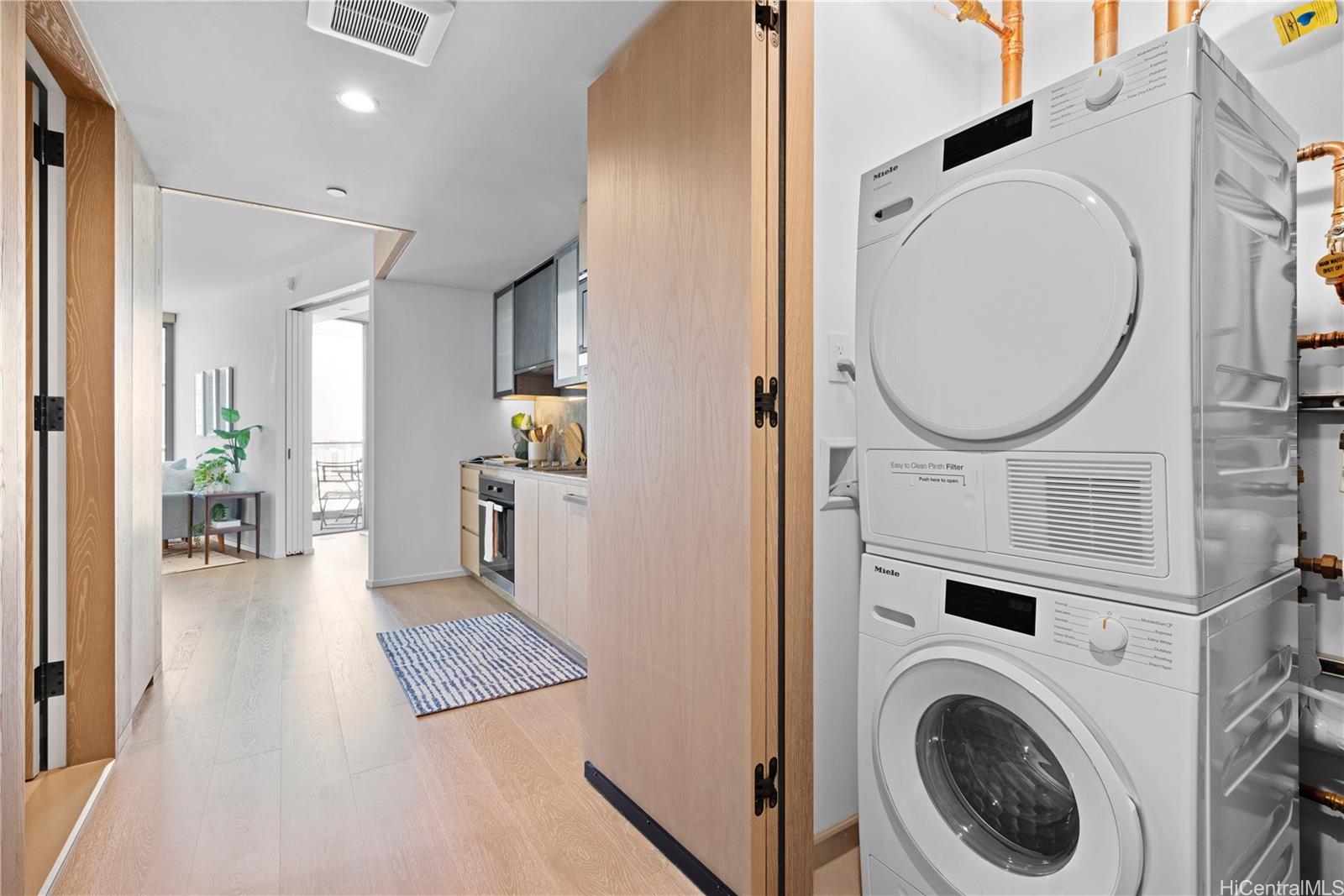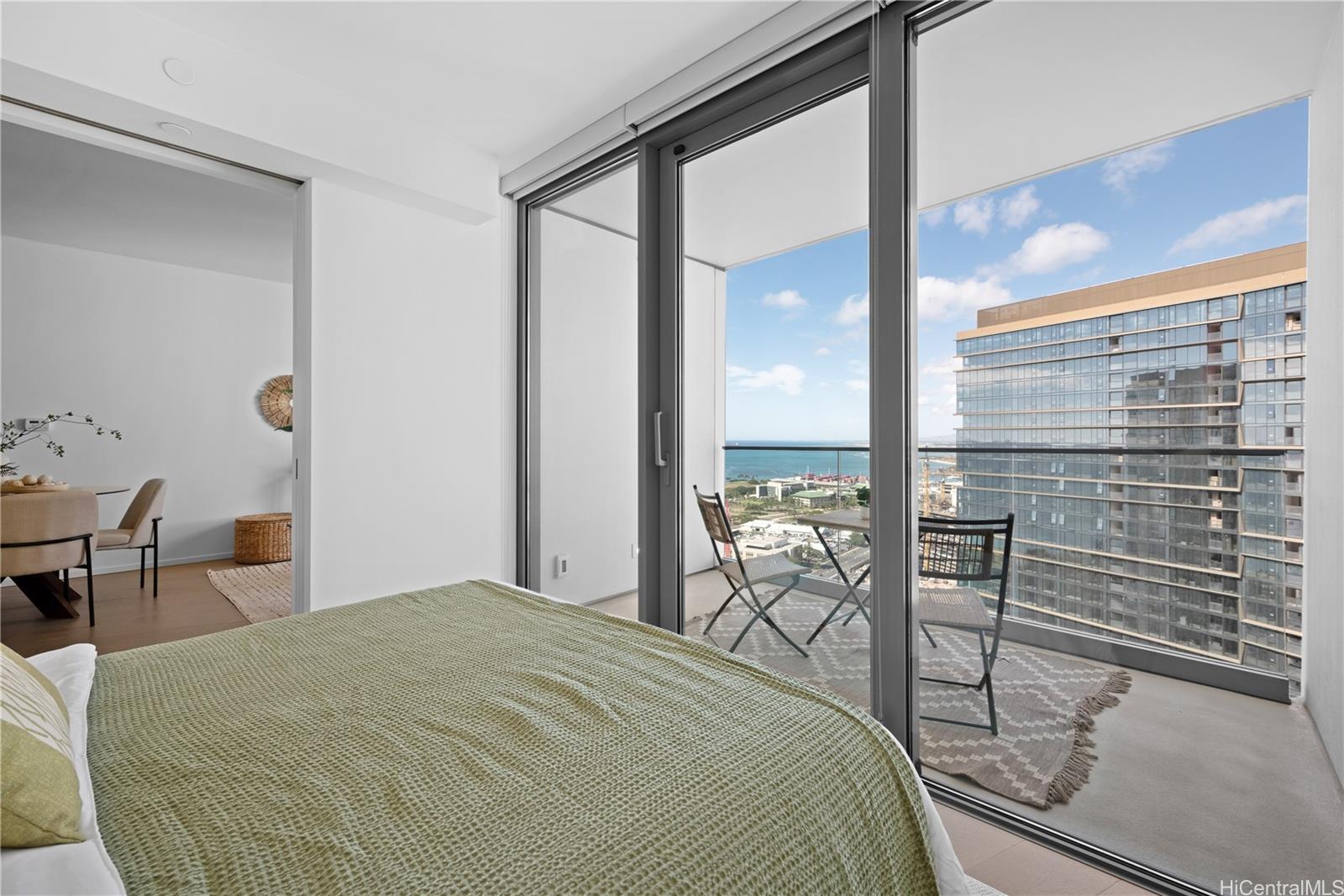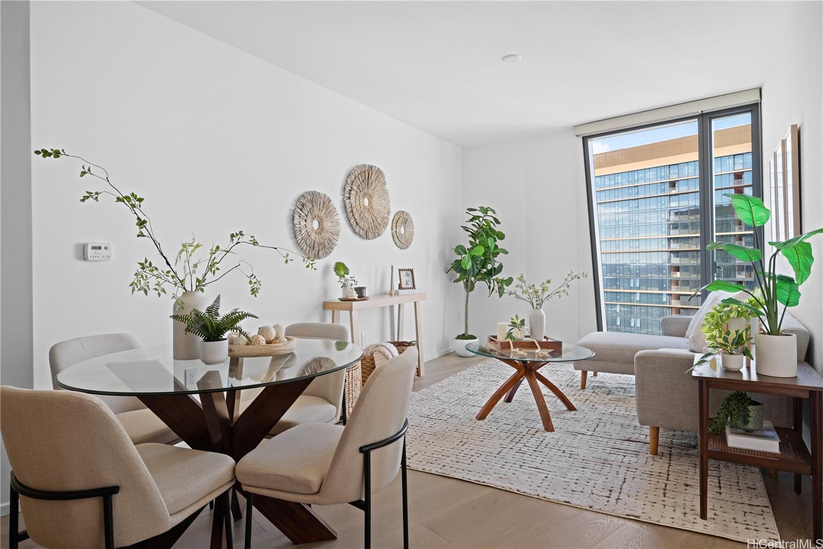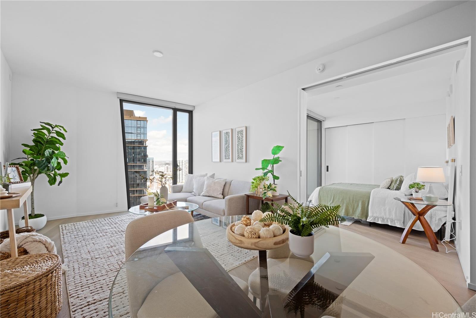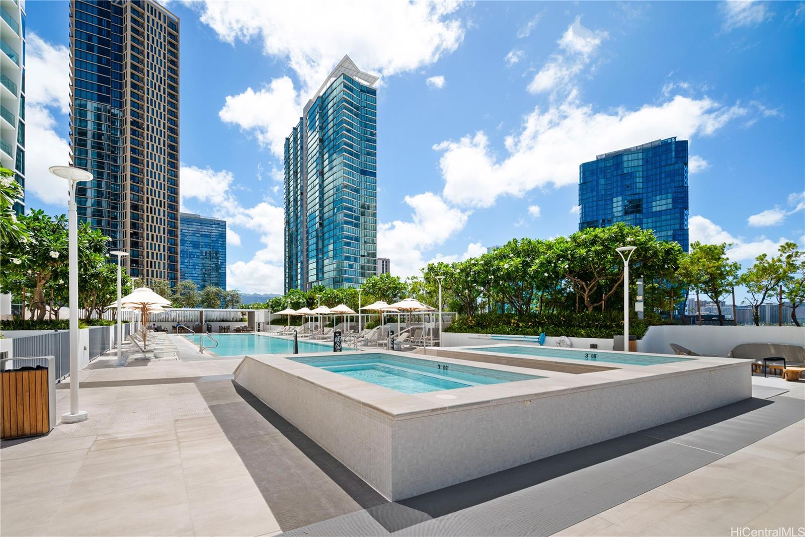 Experience elevated island living in Ko‘ula #3511, a luxurious residence in Honolulu’s vibrant planned community of Ward Village. Ko‘ula features a striking architectural design that maximizes natural light and views. This high-floor unit offers floor-to-ceiling windows and a large private lanai. The interior is finished with premium Miele appliances, custom cabinetry, and elegant natural materials that reflect refined island style. Residents enjoy world-class amenities such as a resort-style pool, spas, BBQ cabanas, indoor and outdoor fitness centers, private dinning areas, a grand lanai, sunset lounge, and even a place for your furry friend to run and play.