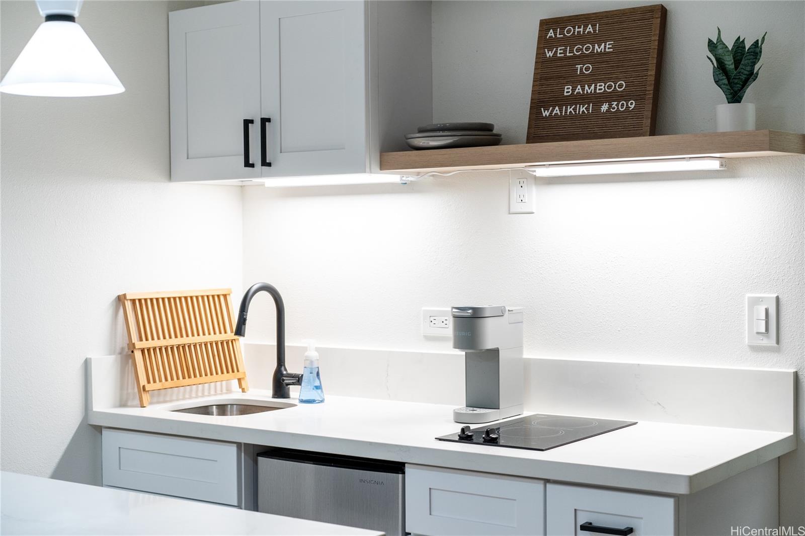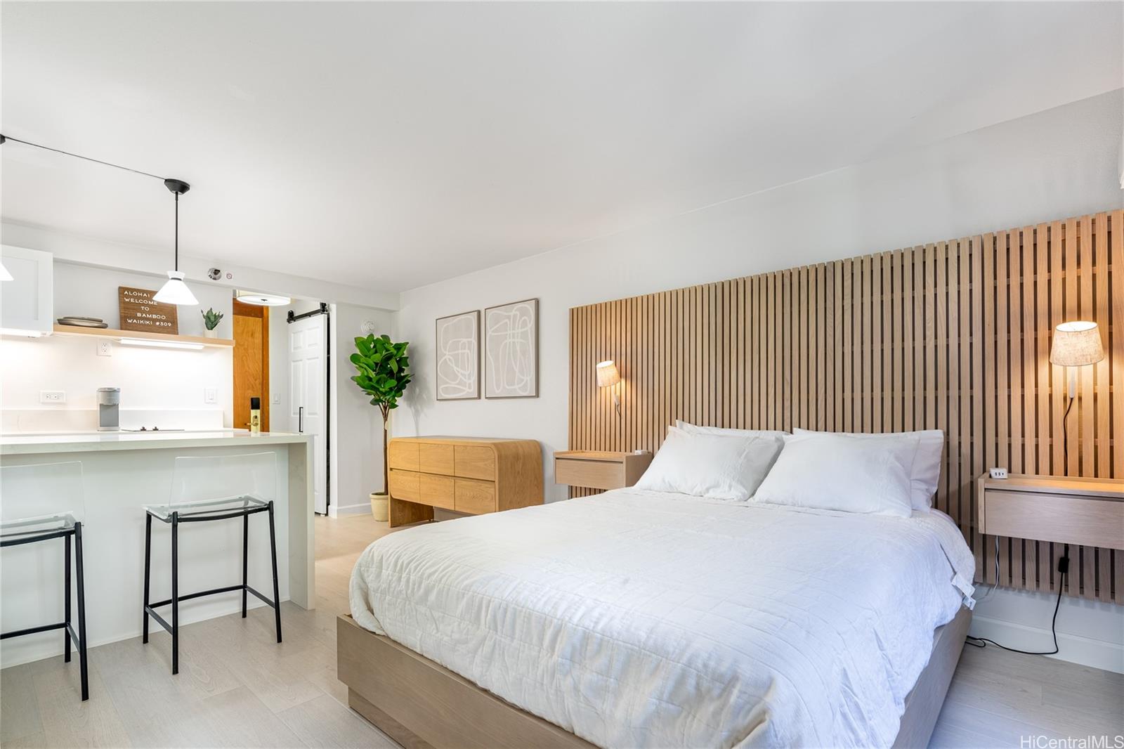 Looking for a successful, turnkey STR? Don't miss this chic, fully renovated studio that exudes island elegance and modern comfort. Located in the Bamboo, a boutique condotel situated in the heart of Waikiki - it's just 1.5 blocks from world-famous Waikiki Beach, steps from numerous tasty restaurants, boutique shops and the International Marketplace. A proven high-performing vacation rental, this self-managed Airbnb gem offers strong income potential - No DPP approval necessary to operate as an STR. Renovated in 2023, every detail of the renovation was carefully considered. Owner personally curated and shipped premium Crate & Barrel furnishings from the mainland to ensure the highest level of quality throughout the unit. Everything in the unit, including appliances, linens, kitchenware, decor, and a cabinet stocked with extra supplies, is included in the sale. The property is ready to go live on Airbnb from day one, with ample supplies to operate seamlessly for at least several weeks. Whether you’re seeking a luxurious vacation retreat or a turnkey investment, this exceptional unit delivers the best of both worlds—modern luxury and island charm.