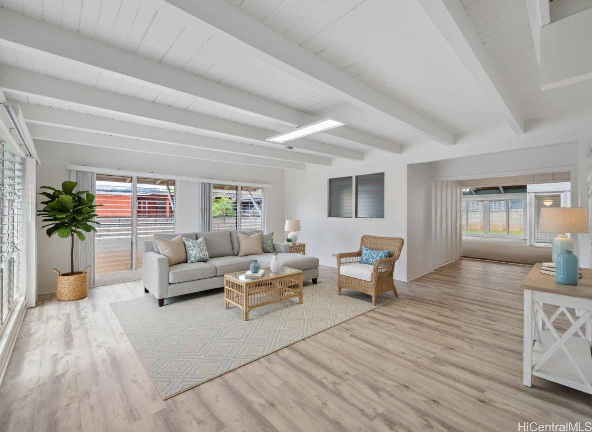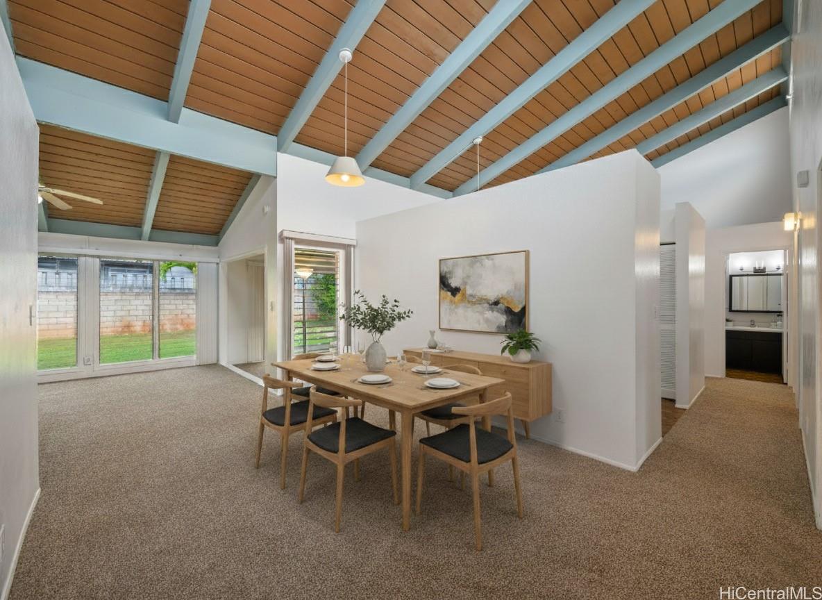 This 3-bedroom, 2-bath single-level home offers comfort and space. The open layout features high ceilings in the kitchen and dining area, creating an inviting atmosphere perfect for gatherings. Enjoy fresh interior paint, a 2-car carport with additional driveway parking, and a private backyard ideal for entertaining or relaxing outdoors. As part of the Mililani Town Association, residents have access to 7 recreation centers, pools, parks, sports courts, and scenic walking paths. Conveniently located near shopping, schools, and neighborhood parks. *Some photos have been virtually enhanced with staging. Next Open House Sunday, December 21st, 2pm-5pm.
