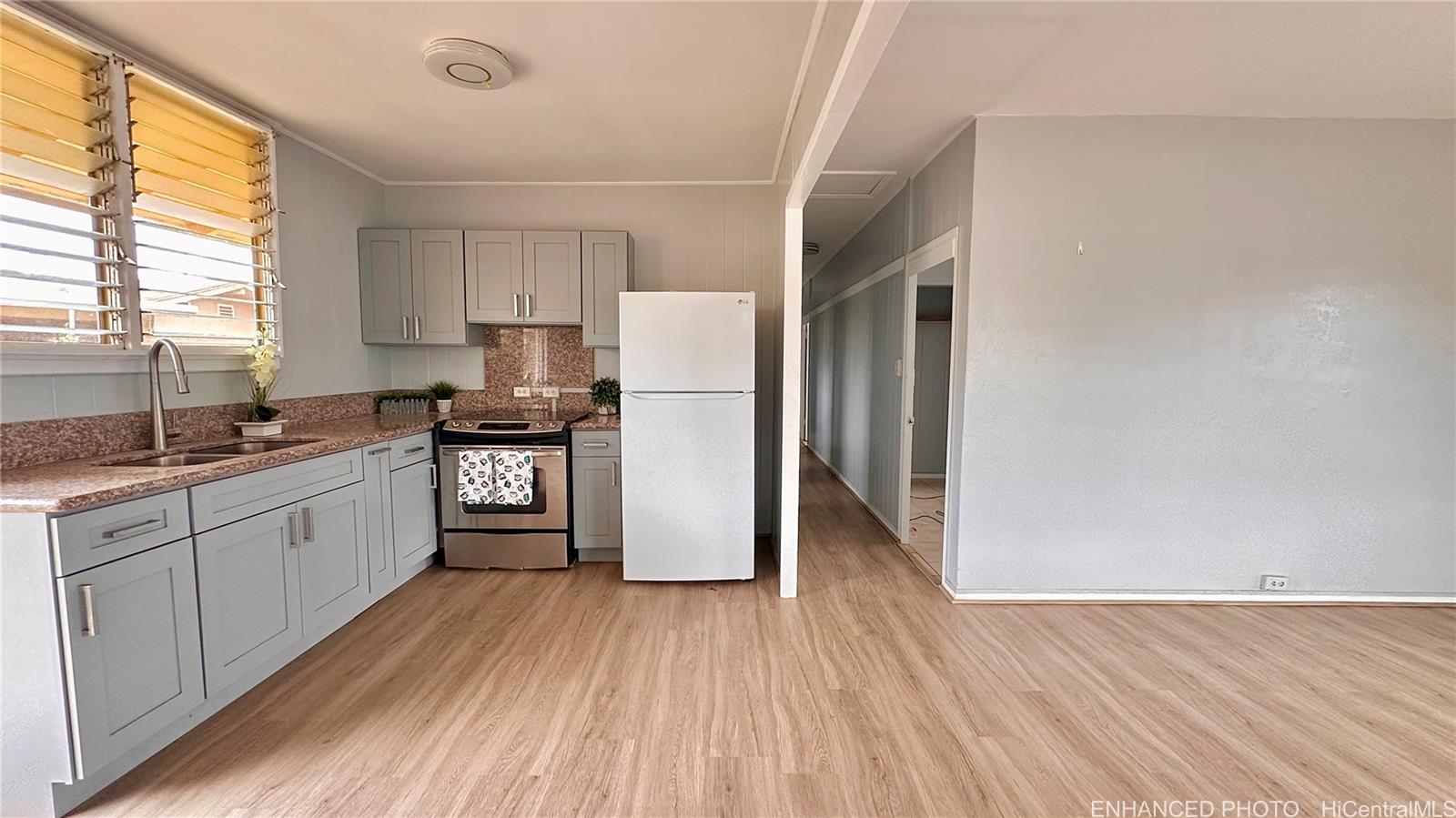 4 bedroom, 2 bathroom home in the Maili neighborhood! Perfectly situated just across from the beach park, this single-family residence features a fully fenced yard, ideal for children, pets, or entertaining. Inside, enjoy updated luxury vinyl flooring and a modern kitchen with new cabinets and countertops upgraded in 2024. The spacious, flat backyard provides plenty of room for play, gardening, or expanding your living space. Experience the comfort, charm, and relaxed island living that Maili has to offer, your Hawaiian dream home awaits!