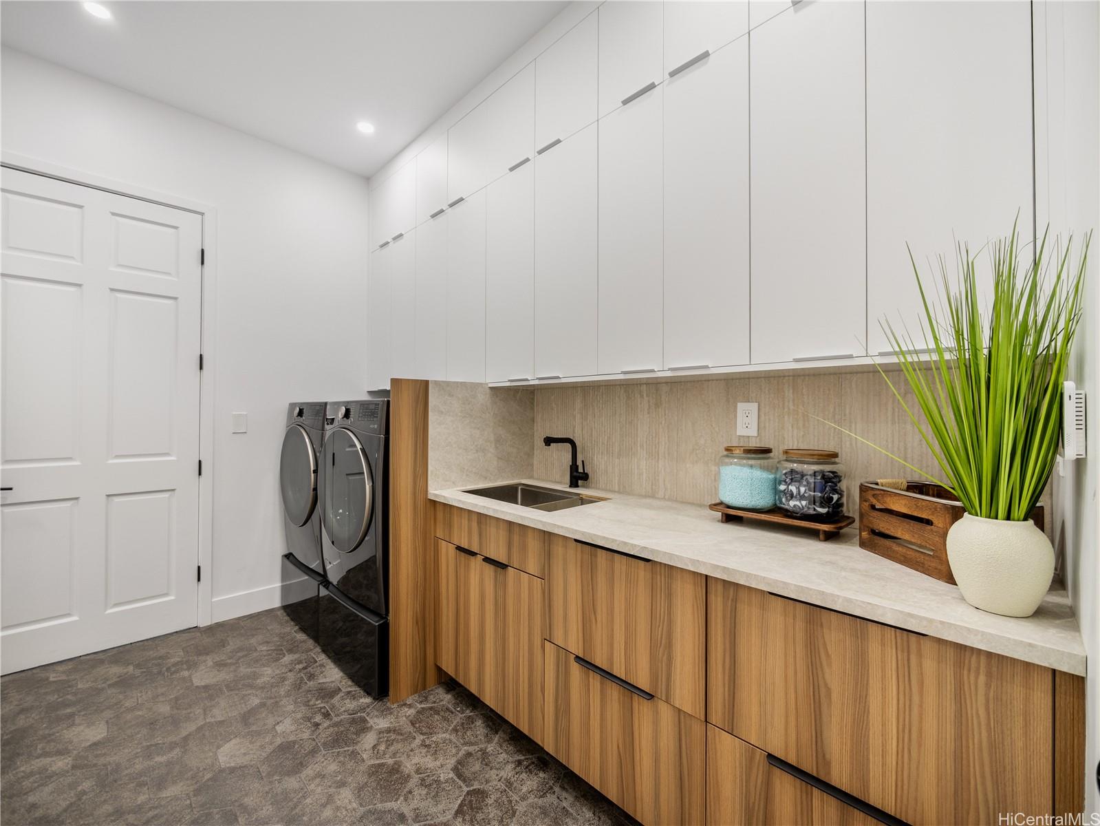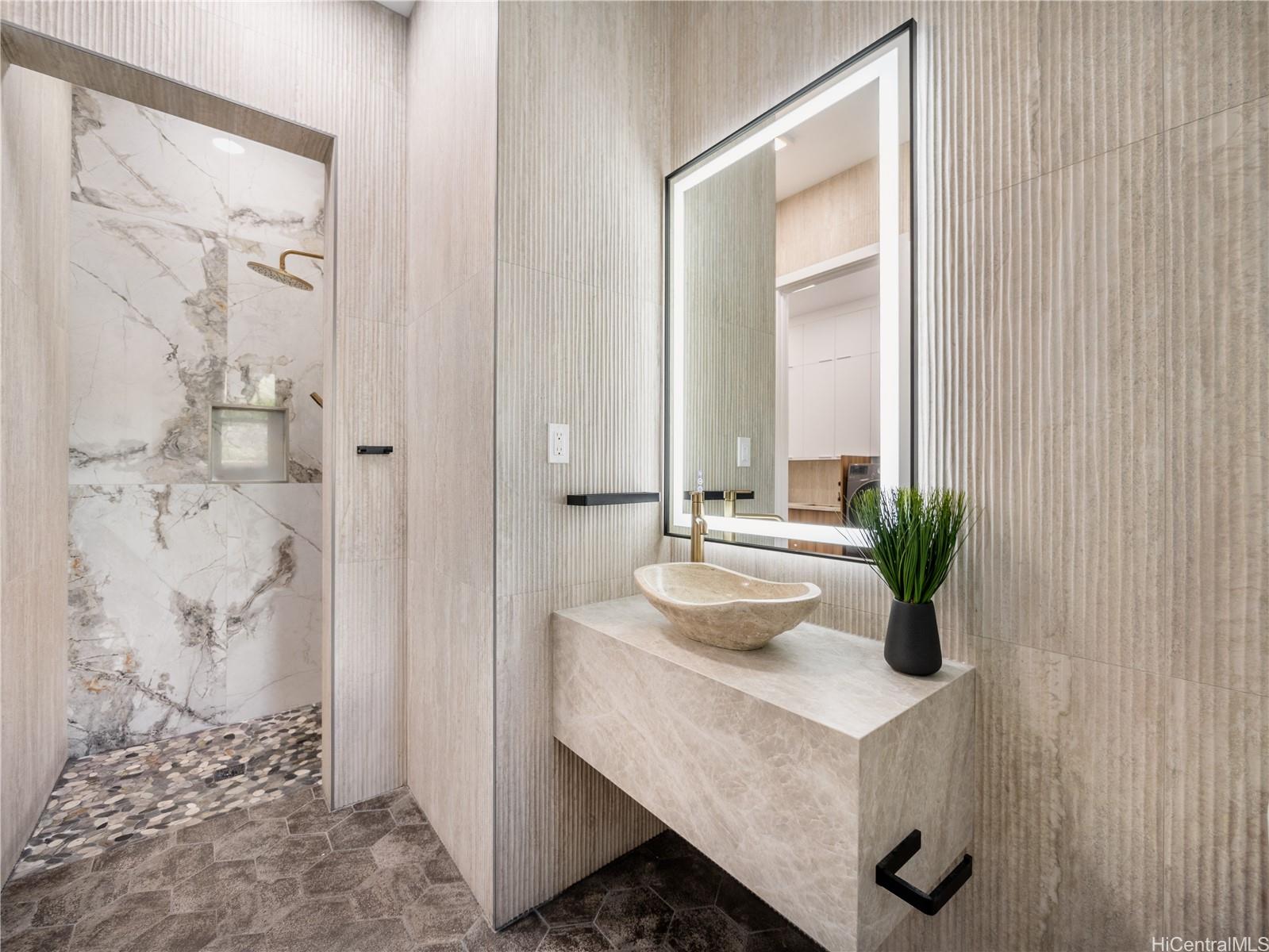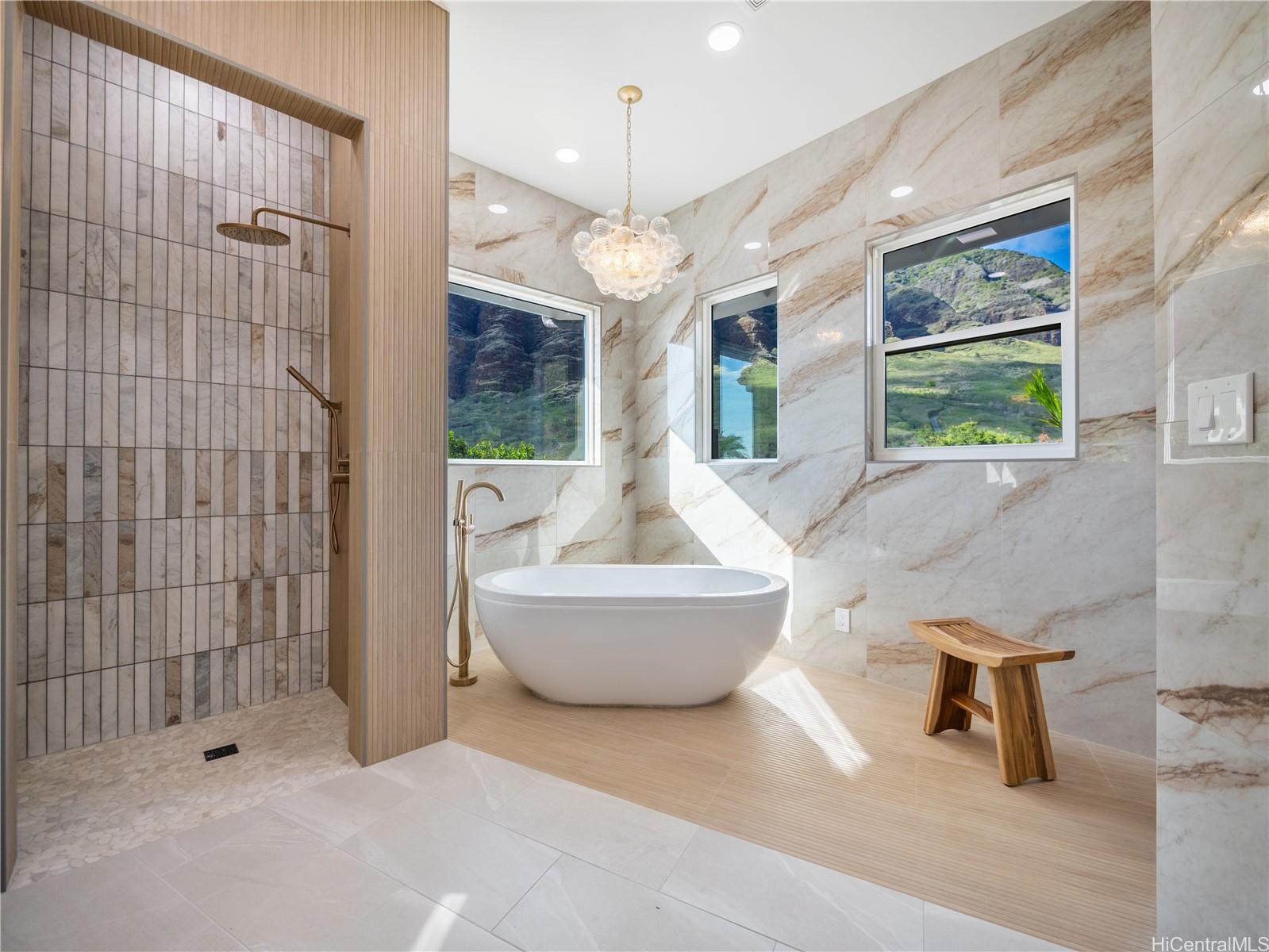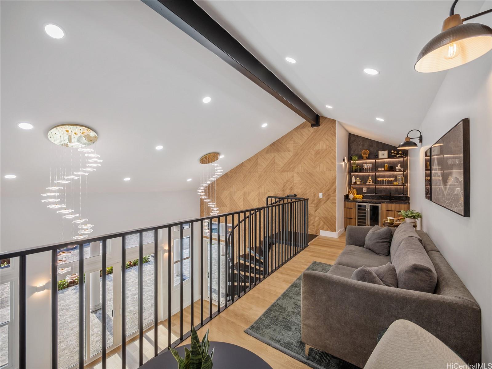 高級ゲートコミュニティ、マウナオル・エステーツに佇む、この格別なアイランドリトリートは、モダンなエレガンスとハワイの自然美が見事に融合した、他に類を見ない空間です。緑豊かな1エーカーの敷地に広がる、平屋建ての4ベッドルーム、4バスルームの邸宅は、屋内と屋外を繋ぐ快適な生活と、豪華なエンターテイメントのために設計されています。約3,500平方フィートの洗練された空間は、高い天井、特大の窓、そして自然光がたっぷりと差し込むスライドドアを備え、息を呑むような山と海の景色を一望できます。シェフズキッチンには、最新のカフェ家電、特注キャビネット、そして12名様用の手作りダイニングテーブルが備えられており、大人数での集まりにもプライベートな集まりにも最適です。メインスイートは、スパ風のバスタブを備えた静かな空間で、らせん階段を上るとウェットバーとワインセラーを備えたロフトがあり、くつろぎのひとときや、お客様をおもてなしするのに最適です。屋外では、特注の滝、緑豊かなランドスケープ、ウォータースライダーとスパを備えたリゾートスタイルのプールをお楽しみいただけます。900平方フィート(約83平方メートル)を超える3台用ガレージは、両開きドアを備え、機能性とラグジュアリーさを融合し、究極のハワイライフスタイルを体現しています。