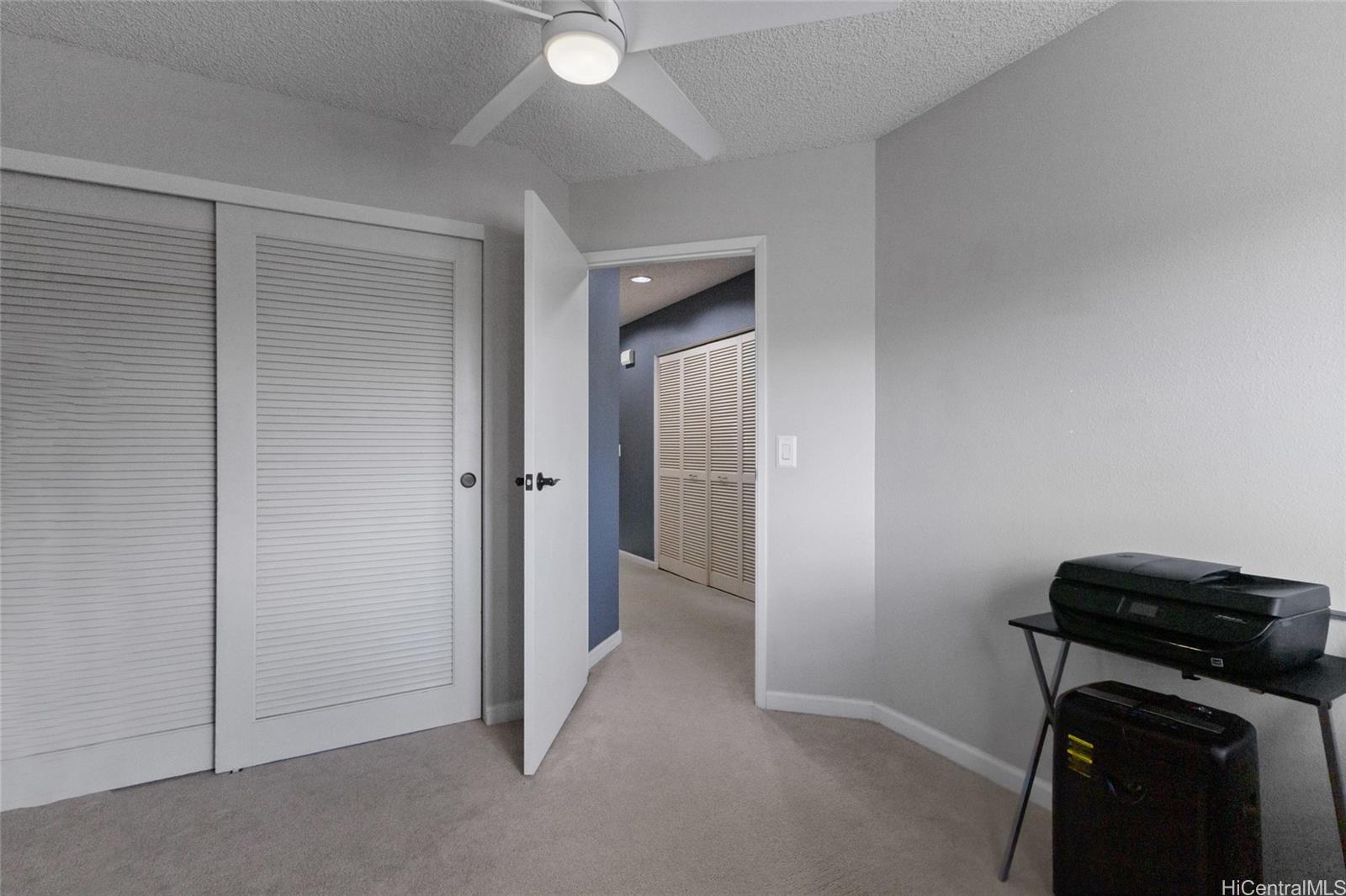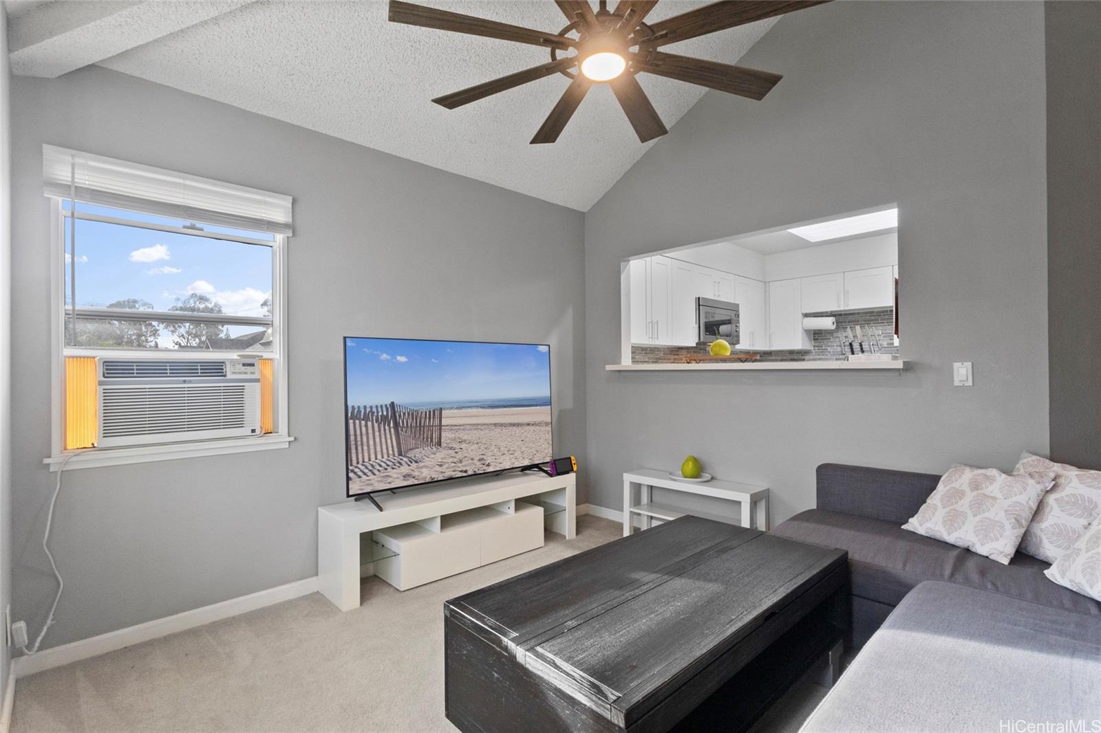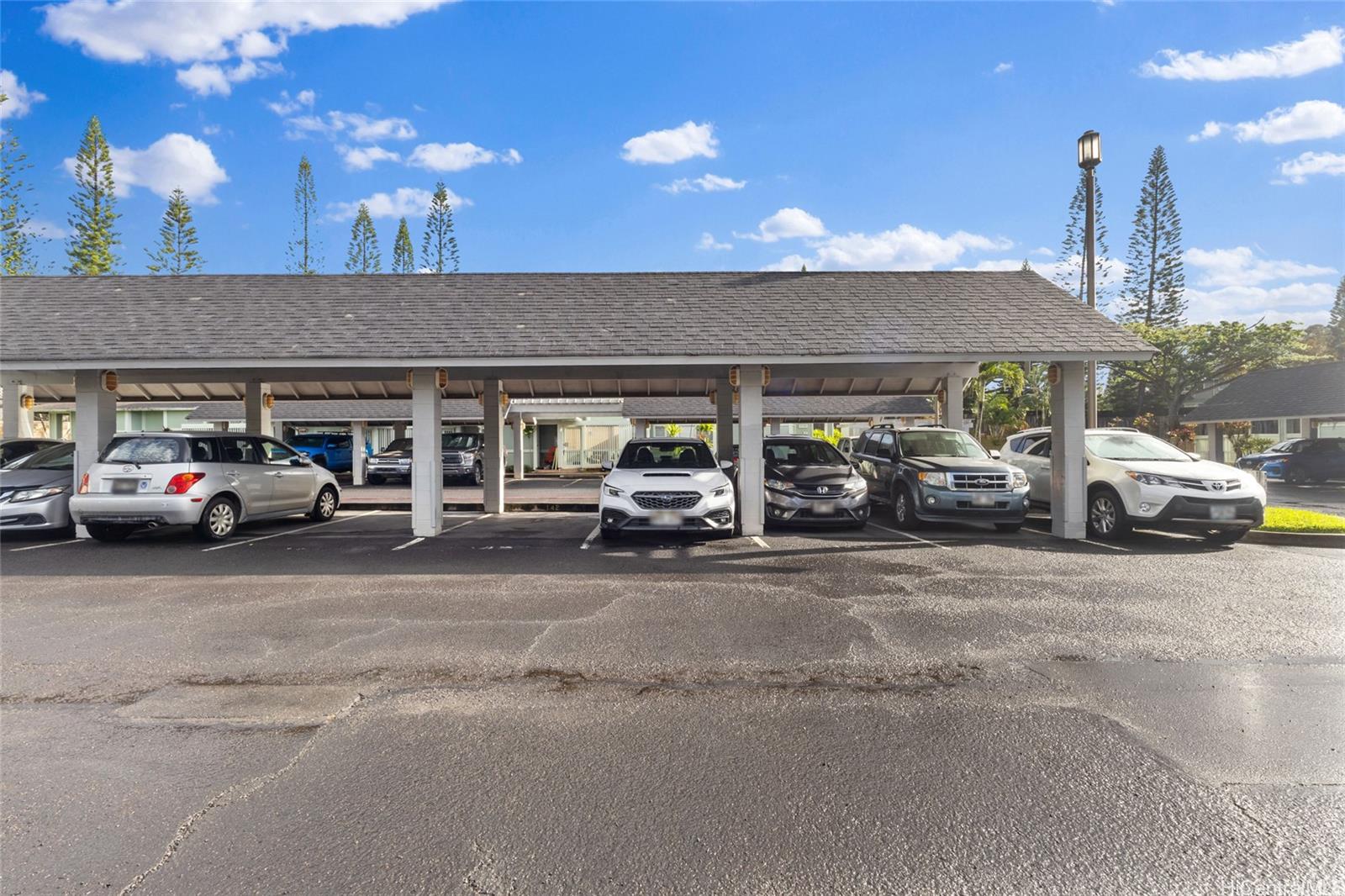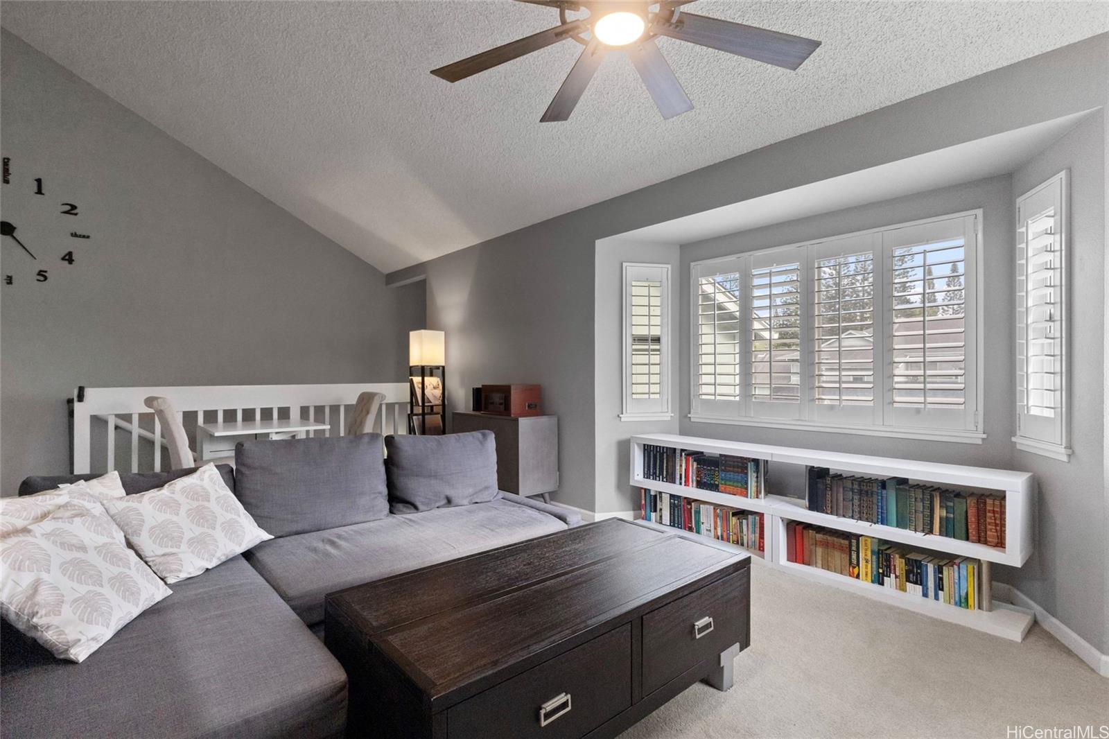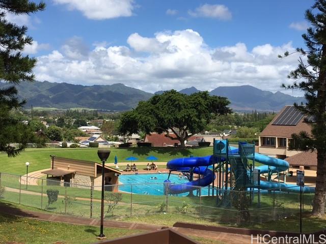 Whether you are a first-time buyer, downsizing, or investing, this community checks the boxes for convenience & livability. This well-maintained townhome in Kumelewai Court is pet friendly & offers a rare opportunity of a spacious two-bedrooms & one-bath in a community known for family-friendly amenities and convenience. This unit is located right at the top of the steps, which means you don’t have any neighbors above you — just extra privacy and high vaulted ceilings. With two assigned parking stalls (one covered) & vaulted ceilings creating an open feeling. This unit has been tastefully updated kitchen & bathroom plus lovely plantation shutters in each window. Located directly across from the Mililani Mauka shopping center, close to multiple military bases & this home also benefits from easy freeway access. Don't miss the opportunity. Welcome to your home in Mililani Mauka!