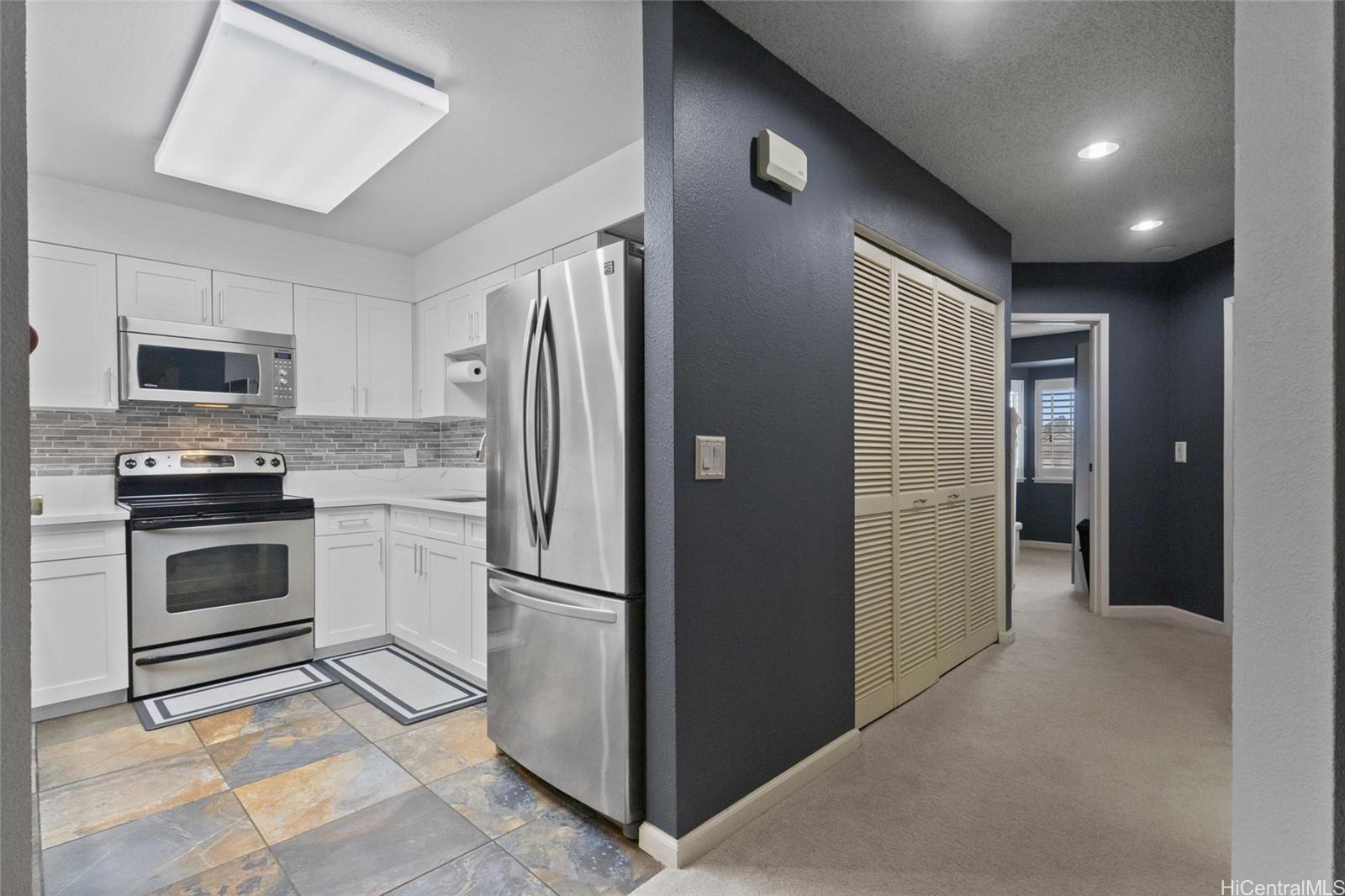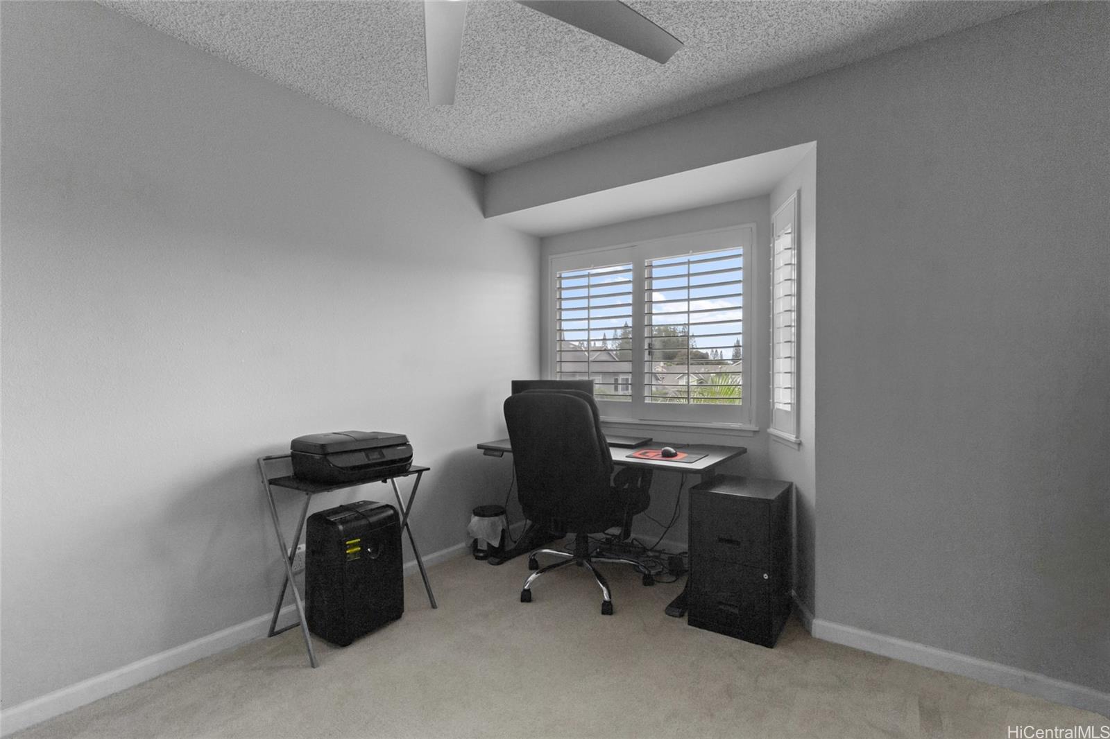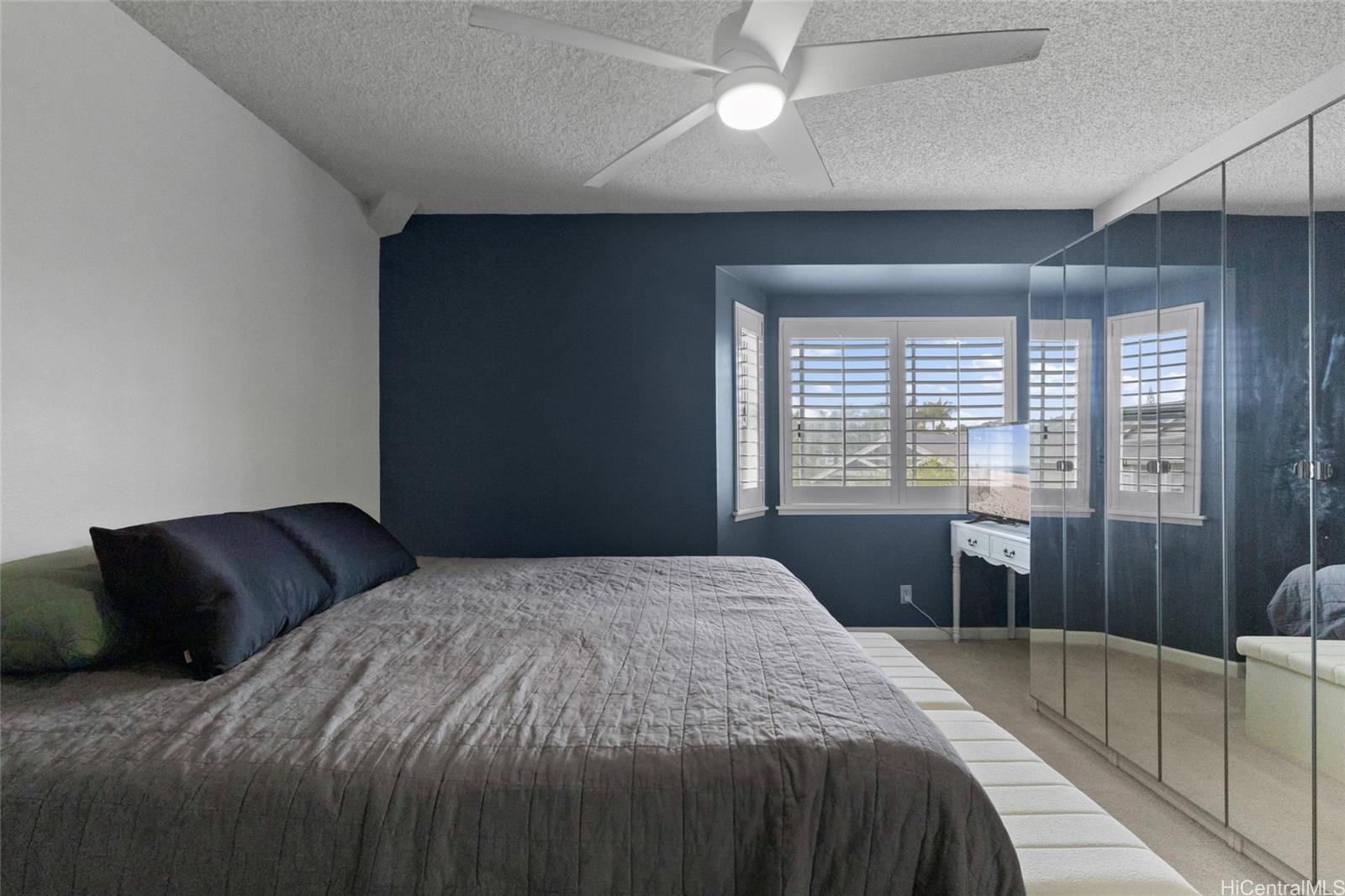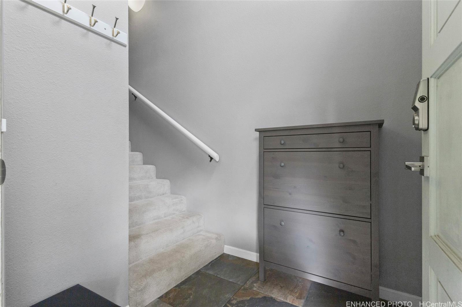 Whether you are a first-time buyer, downsizing, or investing, this community checks the boxes for convenience & livability. This well-maintained townhome in Kumelewai Court is pet friendly & offers a rare opportunity of a spacious two-bedrooms & one-bath in a community known for family-friendly amenities and convenience. This unit is located right at the top of the steps, which means you don’t have any neighbors above you — just extra privacy and high vaulted ceilings. With two assigned parking stalls (one covered) & vaulted ceilings creating an open feeling. This unit has been tastefully updated kitchen & bathroom plus lovely plantation shutters in each window. Located directly across from the Mililani Mauka shopping center, close to multiple military bases & this home also benefits from easy freeway access. Don't miss the opportunity. Welcome to your home in Mililani Mauka!