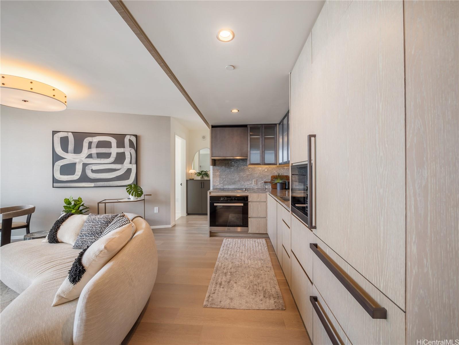 魅力的なアップグレード済みのKoulaコンドミニアムは、家具完備で、ベッドルーム1室、バスルーム1室、EV充電器付きの専用駐車スペース1台を備えています。電動カーテン、デザイナー壁紙、特注のビルトイン家具などの設備が備わっています。高級ミーレ製家電、モダンなデザイン、そしてリゾートスタイルのアメニティをお楽しみください。受賞歴のあるWard Village開発地区に位置するこのコンドミニアムは、ビーチパーク、劇場、レストラン、アラモアナセンターへのアクセスに便利です。建物にはオープンエアのロビー、公園のような雰囲気、そしてバーベキューエリア、フィットネスセンター、スパプールなど、1エーカーを超える屋外アメニティが備わっています。