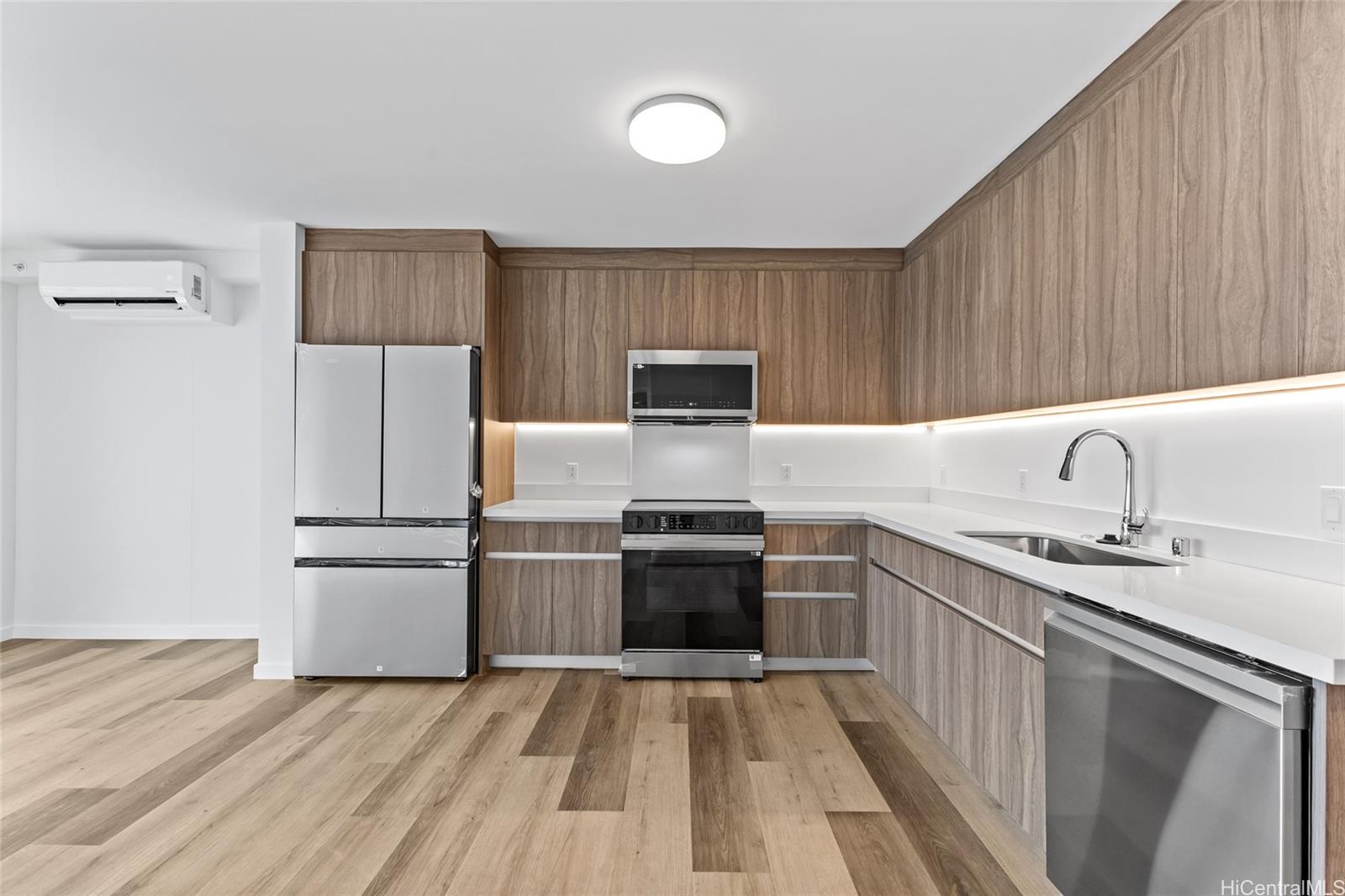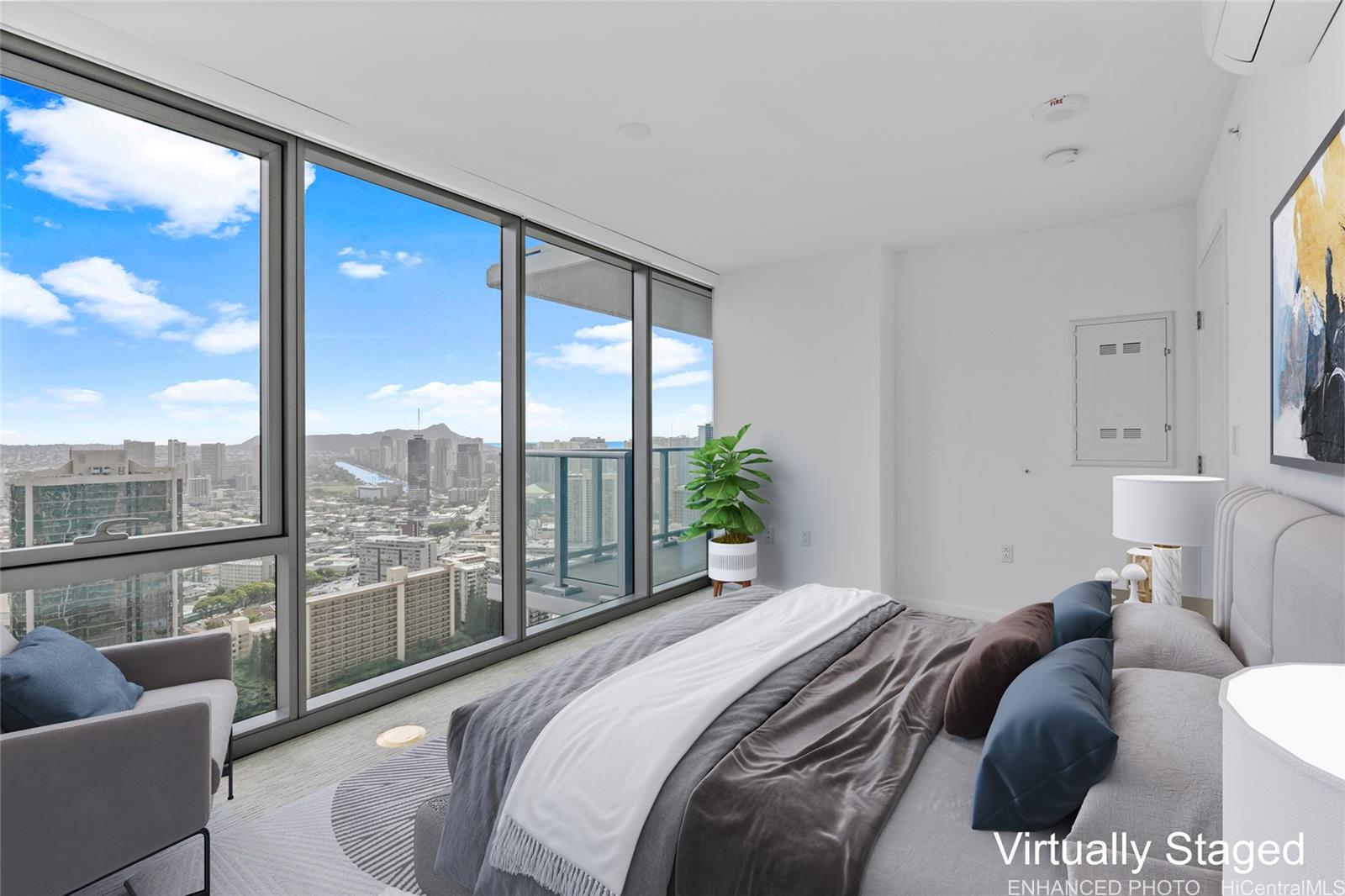 Welcome to beautiful Diamond Head view of high floor, The Park on Keeaumoku, a brand-new, modern community offering the best of urban living. This 602 sq ft one bedroom features a private lanai for seamless indoor-outdoor enjoyment. The open layout is enhanced by floor-to-ceiling windows, luxury vinyl plank flooring, and quartz countertops. Enjoy resort-style amenities, including an infinity pool, fitness center, and media room. With a "Walker's and Biker's Paradise" score, the location is incredibly convenient. You are just moments away from Ala Moana Center, Walmart, and Sam's Club, with easy access to dining, shopping, and entertainment. This is city living at its finest. One or more photos have been enhanced.