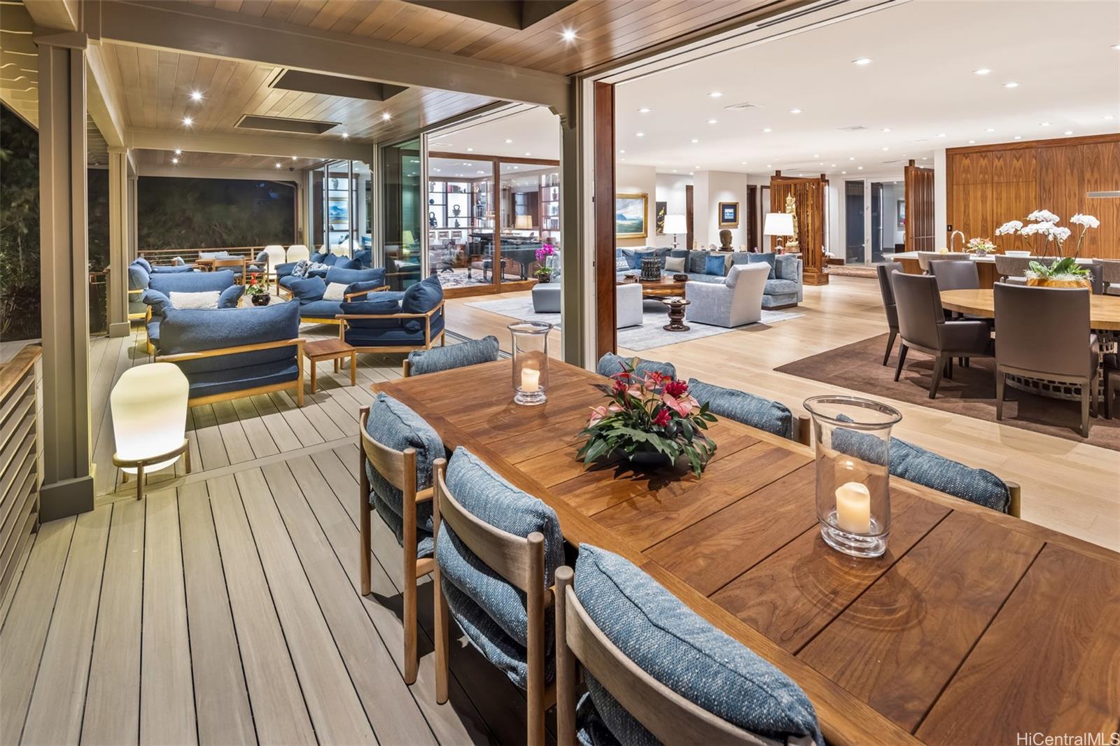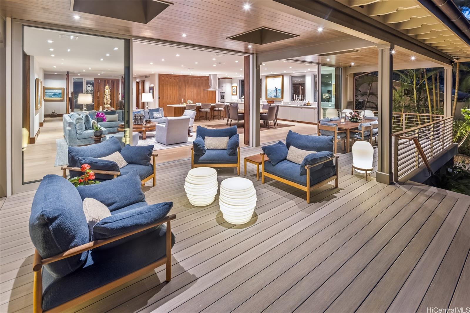 nearly 1 acre, this oceanfront property includes 152 linear feet along the Pacific Ocean. Nestled in a private, gated location, the 2 lot compound offers over 8600 sq ft of living area in its main house, guest house, cottage, and studio. Expansive lawns provide mesmerizing views across the ocean to Manama (Rabbit) Island and stunning vistas of the Koolau Mountains. The main house completed in 2022, sets a new standard of quality craftsmanship. Exceptional design, flawlessly executed using premium materials, creates a luxurious, beautiful, and comfortable home. Floor to ceiling sliding glass doors span the oceanfront side, providing spectacular views of the lush landscaping and ocean. The gourmet kitchen includes top of the line appliances, custom walnut cabinetry, and a disappearing pantry consistent with its sleek, modern design. Next door includes a 3BR oceanfront guest house, 2BR cottage and studio. This irreplaceable compound offers its next owner an opportunity to enjoy a spectacular lifestyle with family and friends in a magnificent oceanfront setting.