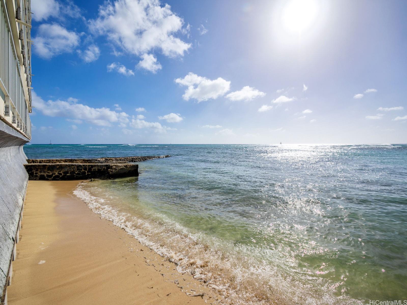 Come and experience breathtaking ocean views from this rare beachfront 2 bedroom, located directly on a sandy beach at the base of Diamond Head. Situated on the private, tranquil end of Oahu’s prestigious Gold Coast, Kainalu is one of the most desirable boutique buildings in the area. This spacious Co-op unit welcomes your personal touches and offers an open layout with generous living and dining areas. Enjoy the soothing sound of waves and cool tradewinds drifting through your windows, creating the ultimate island retreat. Step outside to your own private sandy beach—swim, surf at Tonggs, or unwind in the oceanfront lounge area. The unit includes a covered parking stall and in-unit washer and dryer for your convenience. The secure building features easy walk-up or elevator access and a peaceful, quiet environment. Located just minutes from Waikiki, Kapiolani Park, Diamond Head Lookout, and the Outrigger Canoe Club, Kainalu offers the perfect balance of serenity and island lifestyle. Live the Gold Coast lifestyle — where every day feels like a vacation.