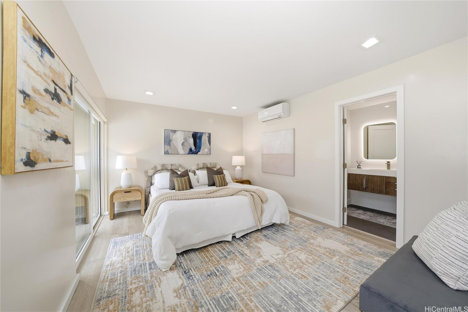 美しく改装された東オアフのタウンハウスに今すぐお住まいください。ビーチ、公園、そして生活の利便性へも徒歩圏内という絶好のロケーションです。モダンな快適さを随所に取り入れたこの住宅は、スプリットエアコン、二重窓、特注のビルトイン、そして幅広の硬質フローリングを完備。キッチンはまさに目玉で、豊富なコントラストのキャビネット、電子レンジ付きコンベクションウォールオーブン、ワインセラー、集いの場に最適な大型アイランドキッチン、そしてカウンターから天井まで続く印象的なタイル張りのバックスプラッシュが魅力です。改装された主寝室には、広々とした特注ウォークインクローゼットと、思慮深く設計された専用バスルームが備わり、静かな隠れ家のような空間を演出しています。多目的に使えるセカンドベッドルームは、ホームオフィス、ゲストルーム、あるいはビルトインのマーフィーベッドと一体型のキャビネットを備え、あなたのライフスタイルに合わせて自在にアレンジできます。百聞は一見に如かず。