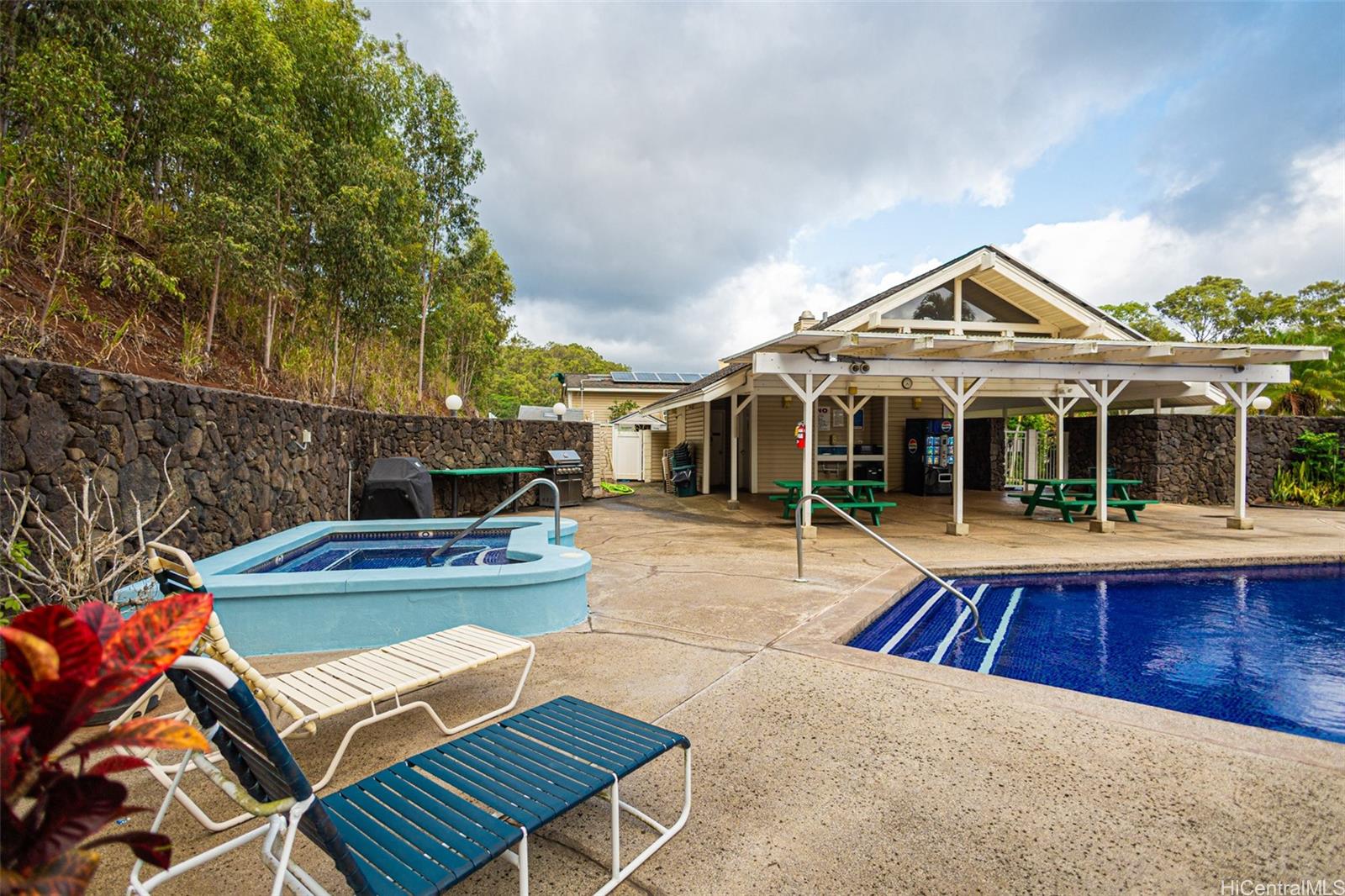 Gorgeous 2 bedroom 2 bath townhome in the desirable Evergreen Terrace. Very open floor plan with great natural light from the large covered lanai that over looks a spacious green area across the way. Move in ready condition, this home features luxury ceramic title flooring, stainless steel appliances, new water heater, and multiple window A/C. You will love relaxing on your lanai that overlooks the open wooded area. Nice, private, and quiet location; perfect for relaxing after a long day. The amenities include a playground and sizeable condo association pool. Close to community park, schools, golfing, tennis court, and Schofield Barracks. Let this tucked away gem be your retreat in paradise. This is a short sale and will be sold "As Is". Please add the Short Sale Agent Guideline (supplement) to all offers.