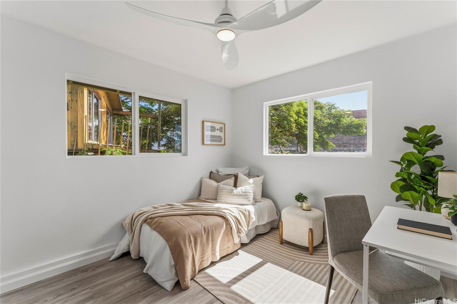 Step into this fully renovated corner-lot retreat featuring 5 bedrooms and 4.5 baths. Upstairs offers 3 bedrooms, 2.5 baths, a spacious dining area/living room, and sweeping ocean views from the balcony. Downstairs includes 2 bedrooms, 2 baths, private entry, and laundry. Ideal for large families, multi-generational living or an excellent rental income opportunity. Everything is new! Quartz countertops, vinyl windows, appliances, cabinets, flooring and bathrooms. Close to beaches, shopping, and everything you need. Don’t wait, this beauty won’t last!
