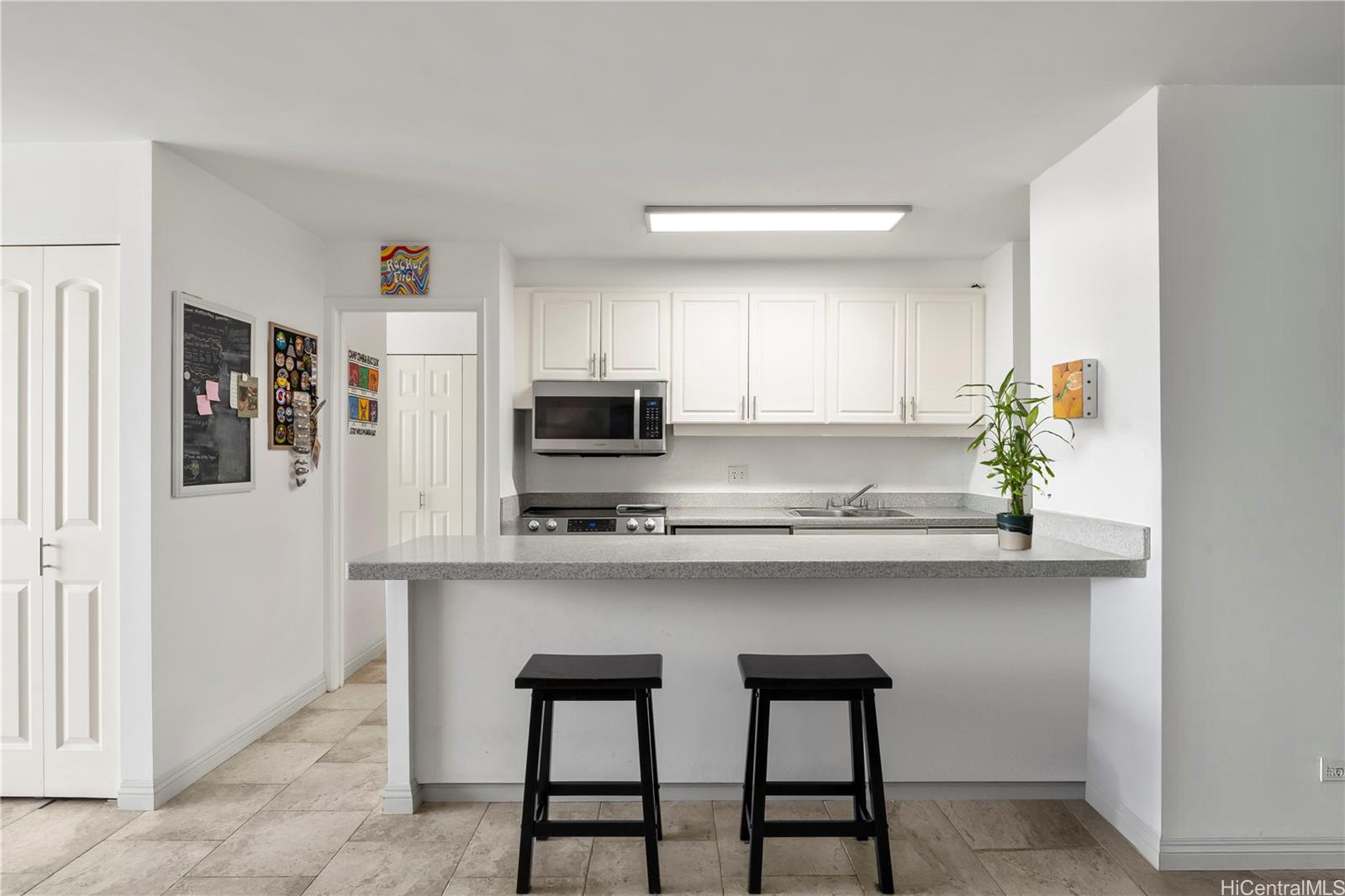and full-service management. Wi-Fi, basic cable, hot water, sewer, and AC chiller are included in the maintenance fee. Prime West-End Waikiki location close to Ala Moana Center, Ala Moana Beach Park, and world-class dining and shopping. Don’t miss this opportunity – call for your showing today! The unit is 96.893% fee simple with the AOAO holding both the right and obligation to acquire the remaining 3.107% leasehold interest by December 31, 2039. Lease rent is $37.87/quarter or $12.62/month.