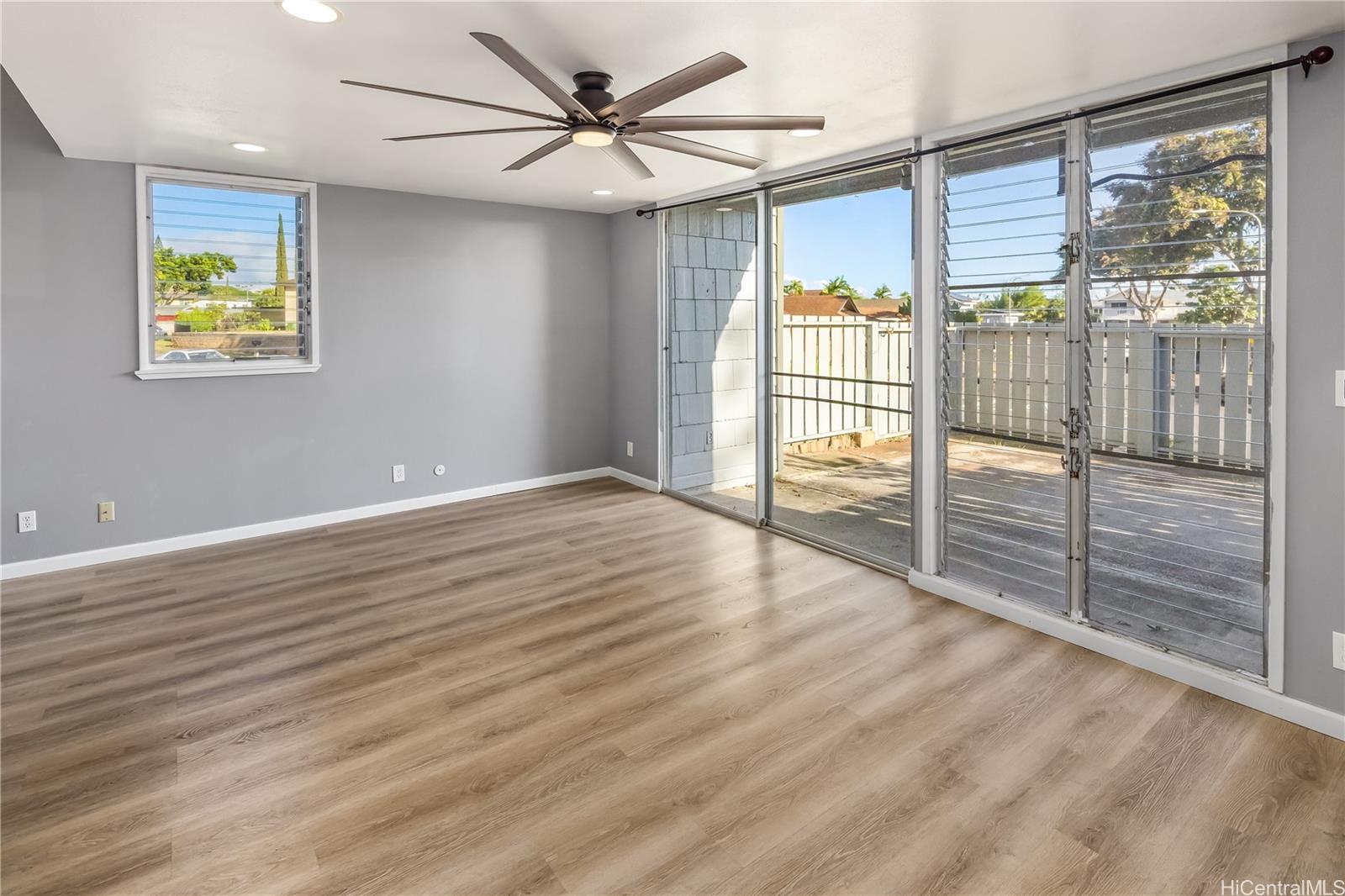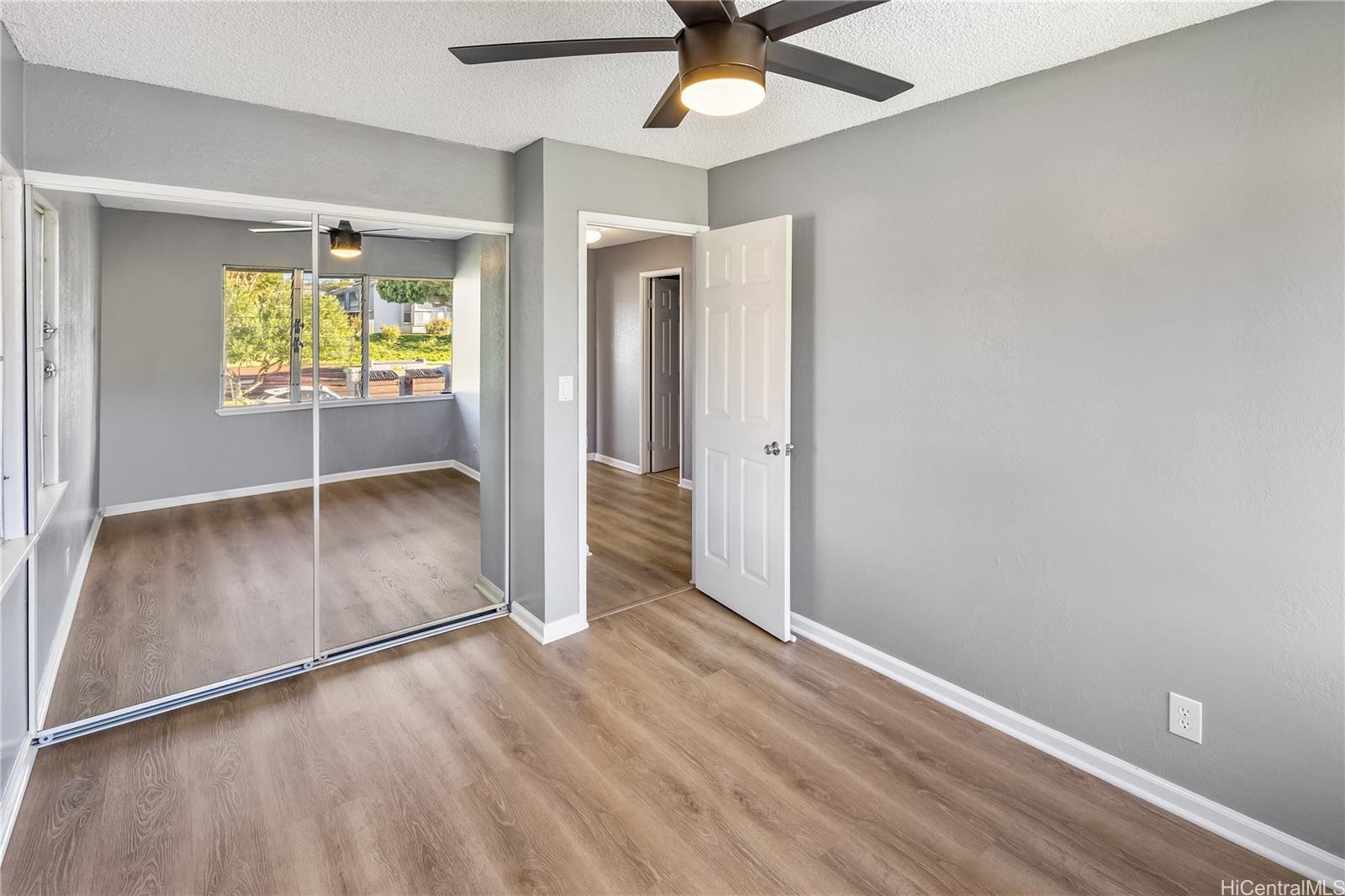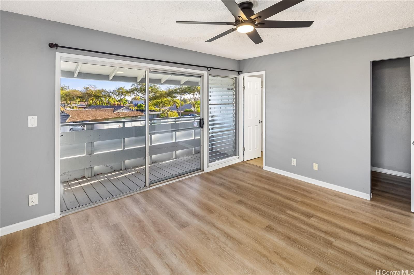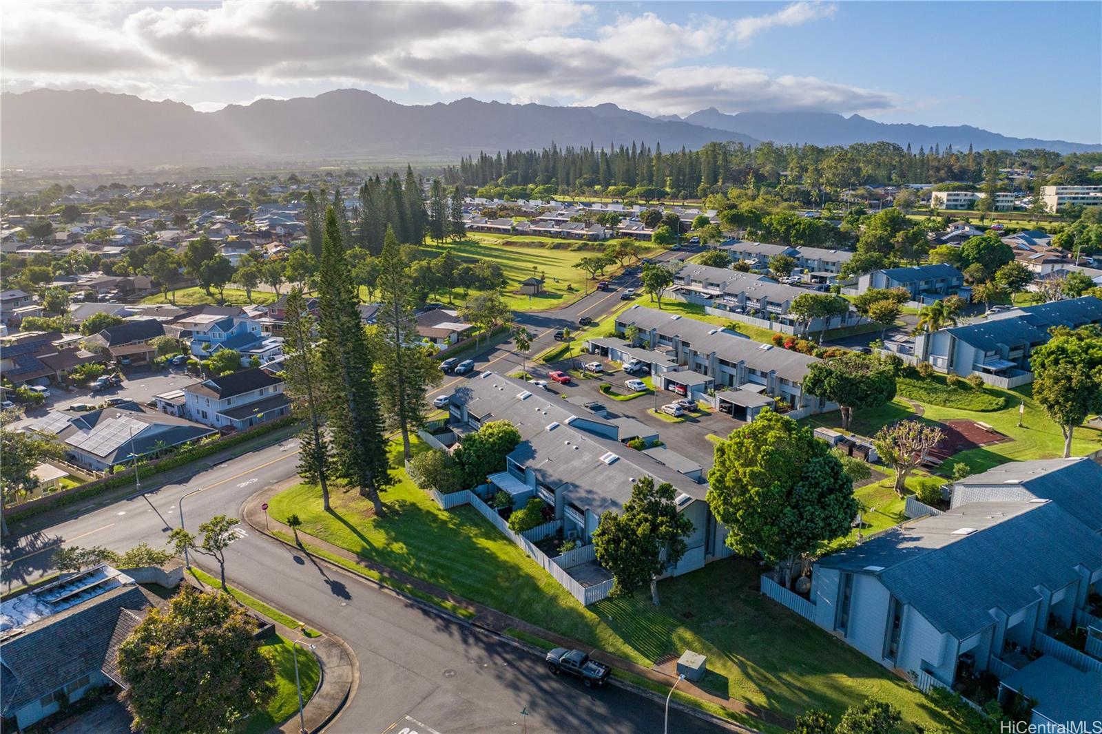 Welcome to Holaniku Hale, one of Mililani’s most desirable townhome communities! This spacious 3-bedroom, 2.5-bath corner unit residence offers the comfort of a single-family home with the convenience of townhome living. Enjoy a bright and open floor plan with a generously sized living room, dining area, and a functional kitchen perfect for everyday use. The home features two private fenced areas, one at the entryway and one in the backyard, ideal for outdoor dining, pets, or gardening. Upstairs, you’ll find three well proportioned bedrooms with ample closet space, including a primary suite offering excellent privacy, its own full bathroom, and a private lanai perfect for morning coffee or a quiet retreat. The second level also includes a generously sized closet attached to the landing, providing valuable additional storage. An additional full bath serves the remaining bedrooms, while a convenient half bath is located on the first floor. The home includes two assigned parking stalls, one in a shared carport that features a private storage closet, and this unit is situated close to guest parking for added convenience. Don’t miss your chance to make this beautiful home your own!
