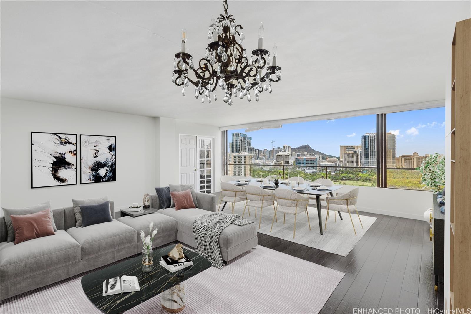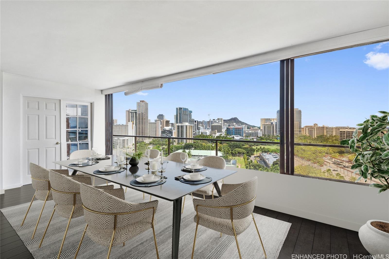 ***新規掲載 + 新価格*** 有名なカンタベリープレイスにある、2ベッドルーム×2バスルーム、人気の「C」スタックユニット。19階からは、ダイヤモンドヘッド、海、そして花火ショーの遮るもののないパノラマビューをお楽しみいただけます!ハワイでの生活にまさにうってつけです。屋根付き専用駐車場1台分付き。ジャグジー、温水プール、ピックルボール、サウナ、バーベキューなど、リゾートスタイルのアメニティを備えたこの物件は、ラグジュアリーでありながら快適なライフスタイルを提供し、あらゆる面で他に類を見ない魅力を放っています。ロビーには5つ星レストランが並び、ワイキキビーチへも徒歩圏内です!さらに、ハリケーン保険100%加入済み、室内洗濯機・乾燥機も完備!