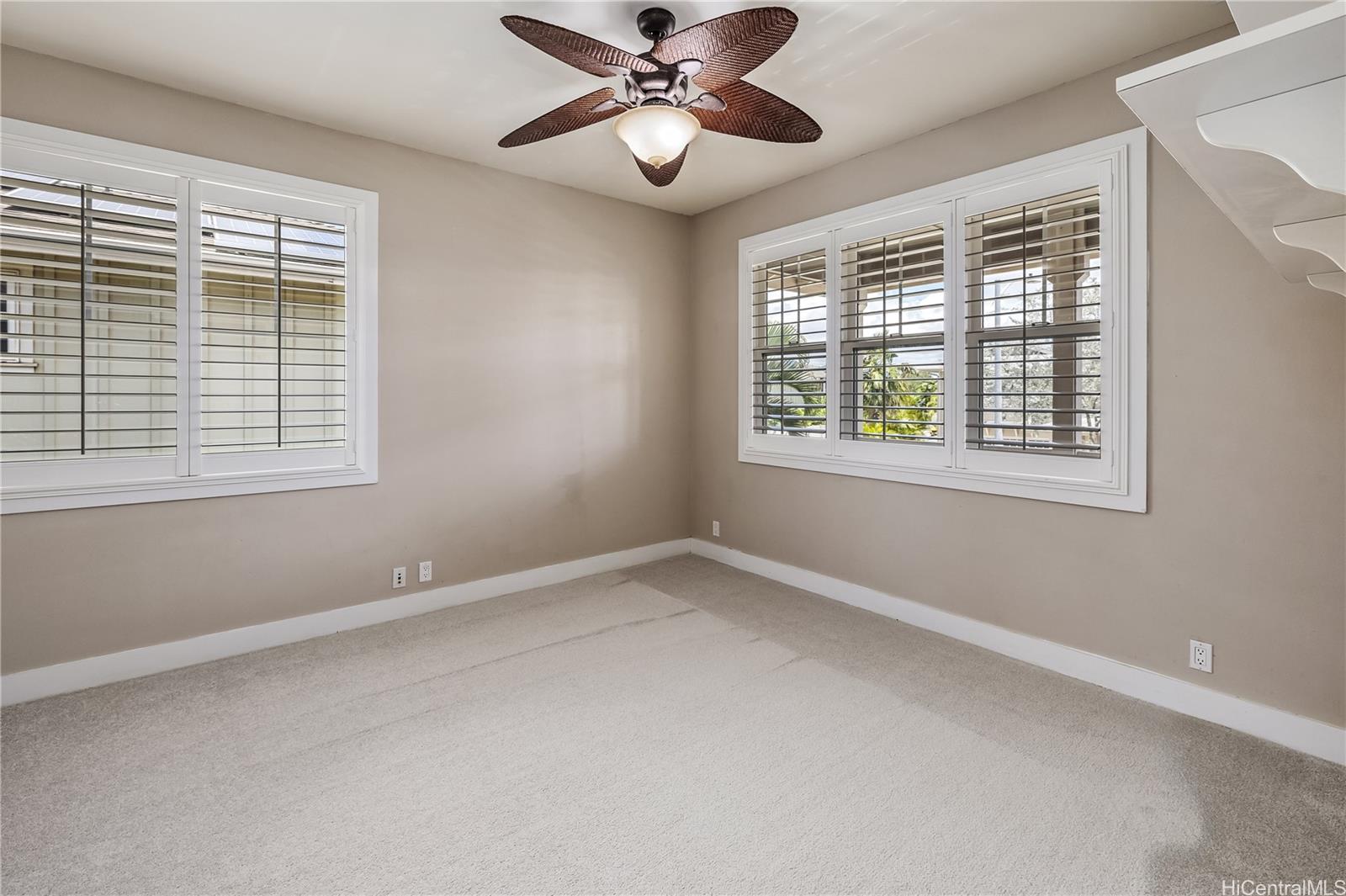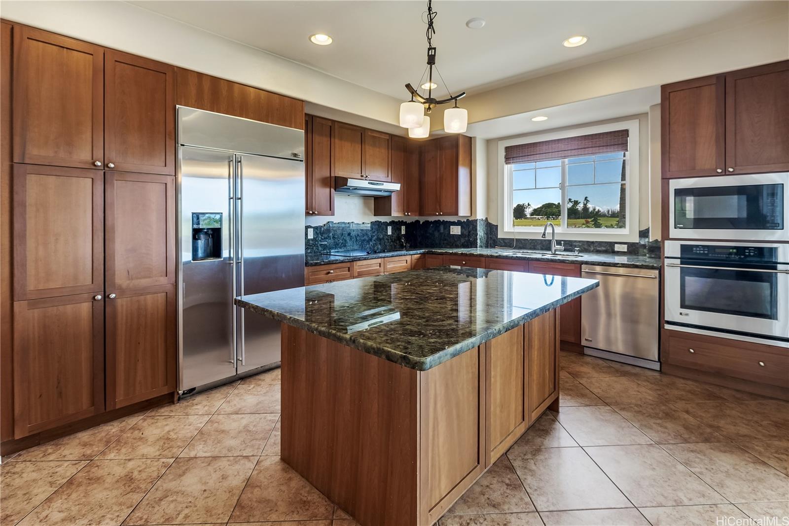 Welcome to Haleakea, one of O‘ahu’s most prestigious neighborhoods. This distinguished four-bedroom, three-bath residence spans 2,710 square feet of refined living space, thoughtfully designed to balance elegance and comfort. Perched along the Hawai‘i Prince Golf Course, enjoyed best from the private covered lanai of the primary suite—a true retreat within your residence.The flexible floor plan includes a beautifully appointed Ohana suite with separate entrance adjacent to the main entrance, perfect for extended family, guests, or a private home office. Enjoy the main level primary suite with golf course views and doors to the outdoor patio. Modern sustainability meets luxury with 16 owned PV panels, delivering energy efficiency without compromise.