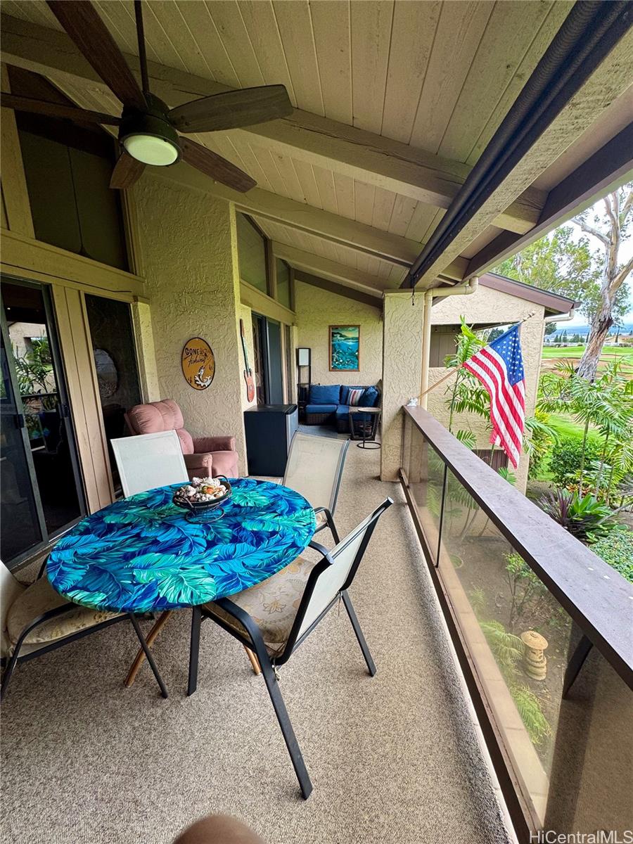 Welcome to aloha paradise! This charming, 3BR, 3 bath, 2 story unit will take your breath away, and make you feel like you never want to leave. With a panoramic ocean view, overlooking the 9th fairway of a Robert Trent Jones designed golf course, every sunset is a picture worth framing, as you enjoy the spacious lanai with its built in wet bar. With vaulted ceilings, spacious primary and guest bedrooms downstairs, and a completely independent 3rd bedroom / loft with it’s own full bath, this unit is a perfect island home. Interior upgrades include wood grain laminate flooring, mahogany furniture throughout, upgraded ceiling fan and light combos everywhere, and three portable AC units, strategically placed to keep cool in the warmer months. This unit is so turnkey, you’ll only need to bring your clothes! Don’t miss this one…it won’t last!