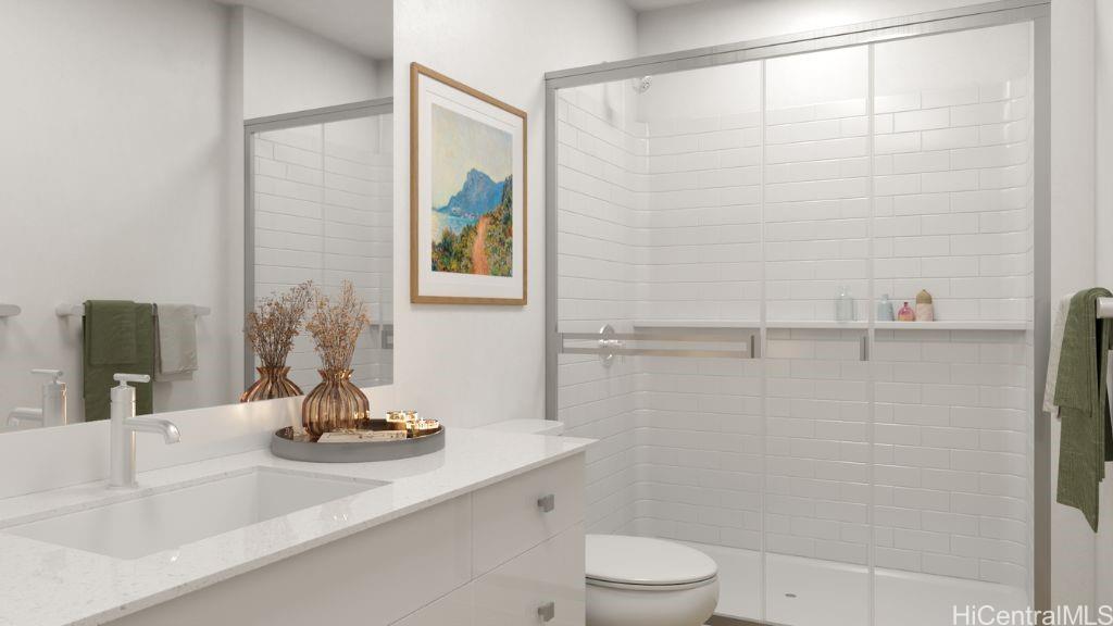 Brand new community. The first phase of ‘Ahakea features four, two-story floor plans of single-family detached condominium units ranging from 880 to 997 square feet of net living area. Each home has designer selected flooring packages, whole house split air conditioning and stainless steel appliances. Every residence comes with an expanded, Home Is Connected®-Smart Home system. This Gen3 plan 3 bedroom and 2 bathroom Single Family Condominium Home consists of 959 square feet (net) of living area and your own private yard area complete with irrigated planter box. When you step into this home, you will be greeted by your two secondary bedrooms centered around a generous bonus space. Go up the stairs to an innovative second floor kitchen/living room/primary bedroom design.