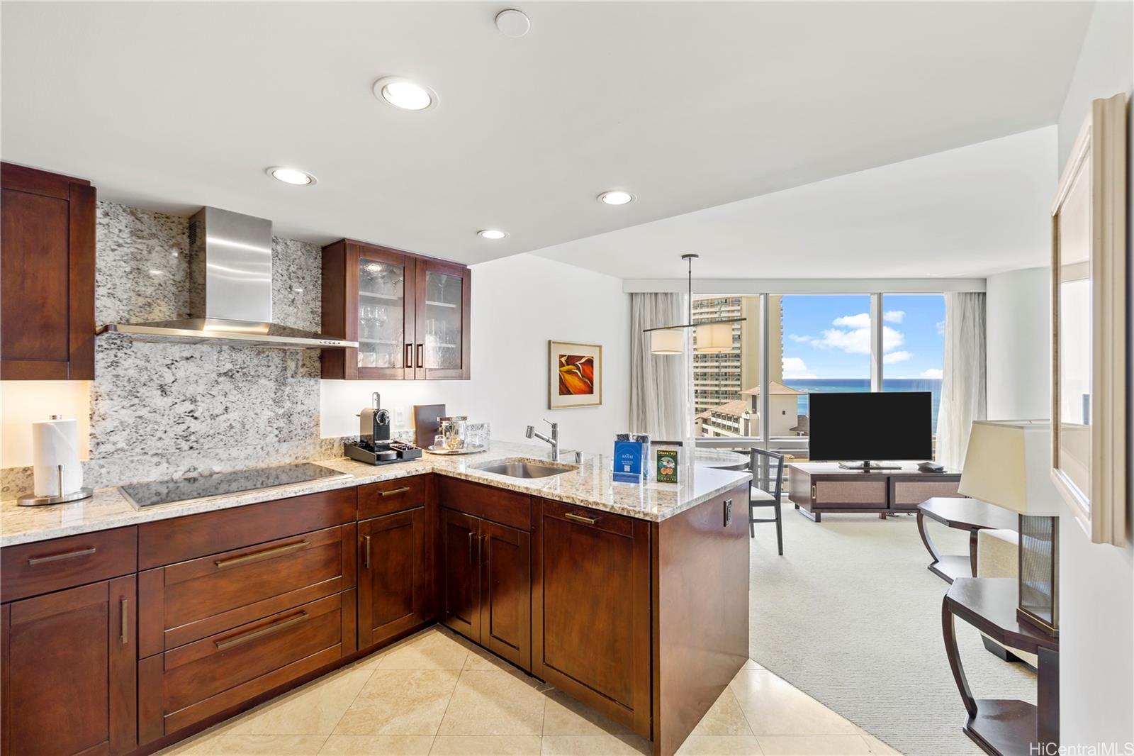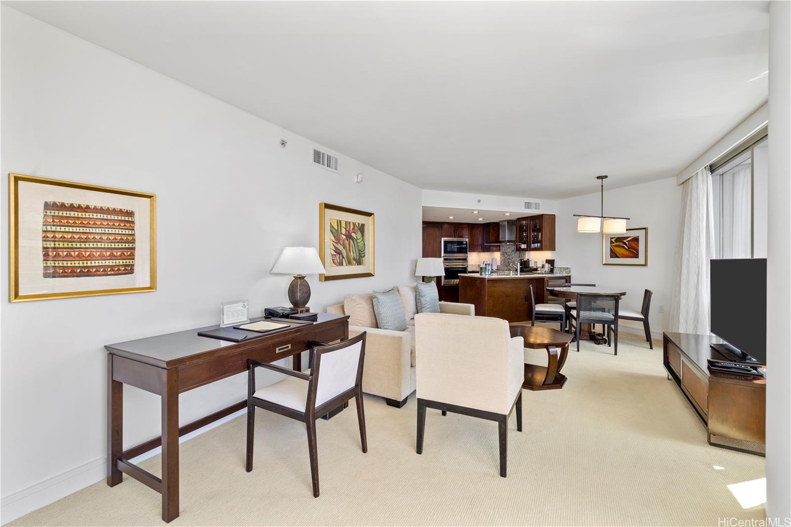 カ・ライ・ワイキキ・ビーチ、LXRホテルズ&リゾーツのホテル/コンドミニアムで、ラグジュアリーな暮らしをお楽しみください!(旧トランプ・インターナショナル・ホテル・ワイキキ)この1ベッドルームユニットは、リネン類とキッチン用品を完備し、シティビューとオーシャンビューをお楽しみいただけます。インフィニティプール、コンシェルジュサービス、バレーパーキング、フルサービススパなど、最高級のアメニティをご用意しています。高級家電、花崗岩のカウンタートップ、トラバーチンタイルの床も含まれています。ワイキキの有名な白砂ビーチもすぐ近くです。