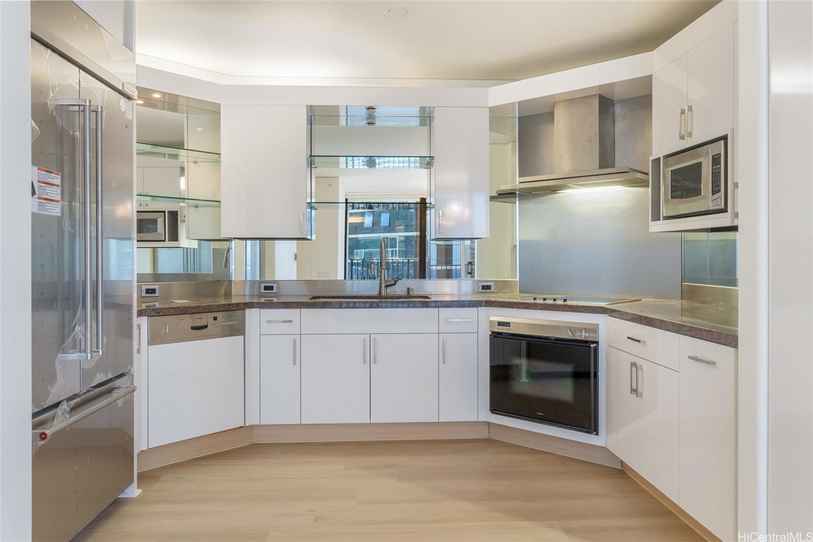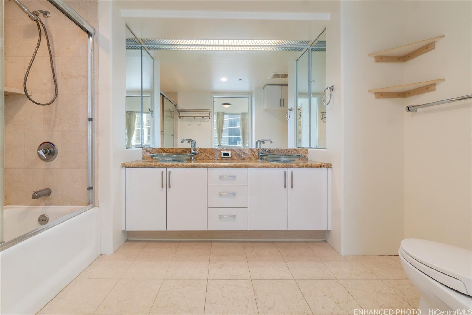 Priced to sell! Rarely available and highly sought after double unit featuring 2 large primary suites in the prestigious Hawaiki Tower. Beautiful corner end unit with spectacular ocean & city views from every room with the floor to ceiling windows that let in lots of natural light. Enjoy lots of space with this open floorplan totaling over 2000 SF. THREE parking stalls which all have storage cabinets above each stall. Upgrades include new flooring throughout the living, dining, kitchen and bedrooms, interior is freshly painted, and new cabinet doors in the kitchen and bath. Relish in luxury amenities including the heated pool, whirlpool, tennis court, putting green, play area, library & more or head to the sandy beaches at Ala Moana Beach Park across the street. Roam the neighborhood full of shopping, restaurants, coffee shops, Ala Moana Shopping Center, Ward Center and world-famous Waikiki just a mile away. Pet-friendly building known for low maintenance fees. One or more photos have been enhanced.