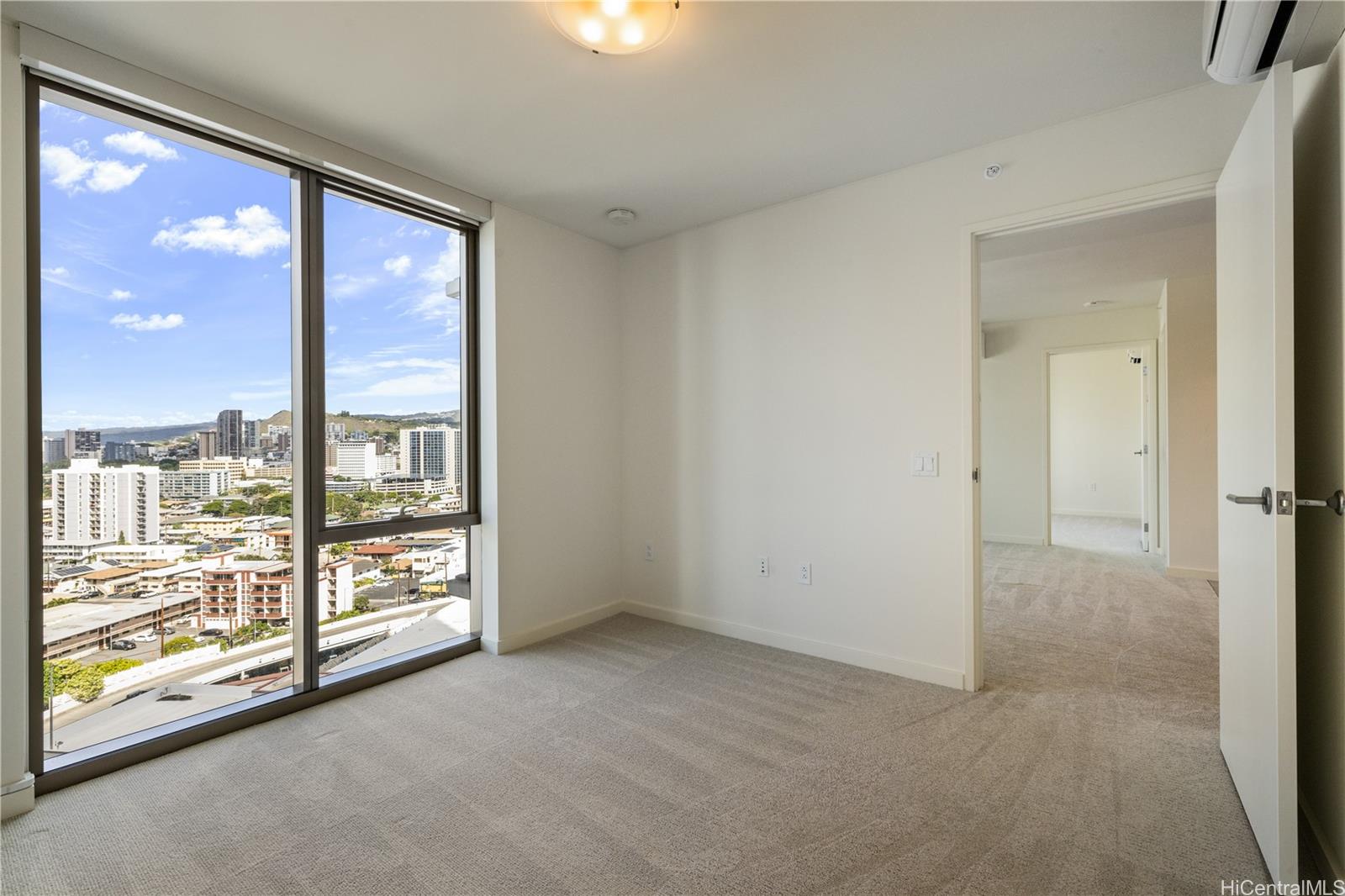 Sky Ala Moana West, completed in 2023, is ideally located in Midtown Ala Moana, close to Ala Moana Beach Park, Ala Moana Center, and Waikiki. This highly desirable 2-bedroom, 2-bath 08-stack residence features floor-to-ceiling windows, Silestone countertops, Bosch appliances, a full-size washer and dryer, split A/C in every room, dual sinks in the primary bath, two custom walk-in closets, a large entry storage closet, and a 96 sq. ft. lanai with stunning city and mountain views. The unit also includes two side-by-side parking stalls and a storage locker.