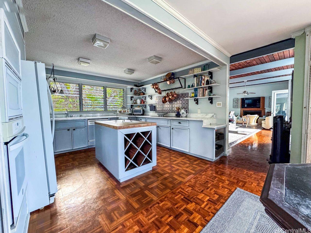 稀少な高低差と無限の可能性を秘めたユニークなレジデンス、このスプリットレベルの住宅からは、ダイヤモンドヘッド、カハラ海岸線、マウナルア湾、そして季節ごとに変化する夕日を一望できます。ほぼすべての部屋から海と海岸線が眺められ、そよ風と移り変わる景色に囲まれた生活体験をお届けします。段々になった敷地に建つこの物件は、ドライブスルーガレージと上部に展望デッキを備え、朝のコーヒータイムや夕日を眺めながらの集まりに最適です。広々としたプールテラスは、リゾートスタイルのくつろぎとエンターテイメントの空間を提供します。広いベッドルームと隣接する書斎/書斎(オプションで3つ目のベッドルームとしても利用可能)からは、屋外スペースに直接アクセスできます。メインのリビングフロアには、暖炉、フォーマルダイニング、カジュアルな朝食エリア、広々としたパントリー付きキッチンがあります。上階は広々としたプライマリースイートに充てられ、息を呑むような景色を堪能できるよう拡張設計されています。ウォークインクローゼット、ダブルシンク、独立したシャワー、そしてバスタブ付きのプライベートルームが、この隠れ家のような空間を完成させます。その他の設備には、ランドリールーム、豊富な収納スペース、将来の拡張に備えて整地された段々になった裏庭などがあります。特別なロケーションにある珍しい物件です。この住宅は、素晴らしい景色と魅力が存分に感じられる、実際にご覧いただくのが一番です。