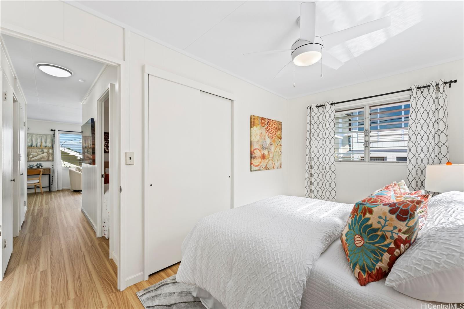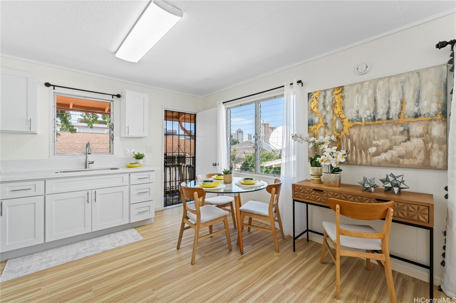 Just a few minutes from downtown Honolulu, this refreshed 3-bedroom, 1-bath home blends comfort, style, and urban convenience. Thoughtfully renovated, it features fresh paint throughout, modern vinyl flooring, an updated kitchen and bathroom, and new appliances—including a stove/oven, water heater, and dryer. Ceiling fans in every bedroom enhance cool, relaxed island living. Enjoy the freedom of owning a private single-family home without HOA fees, nestled behind hedges and framed by mature mountain apple and star fruit trees. A peaceful retreat for your Ohana, close to the heart of Honolulu. Ready to move in,