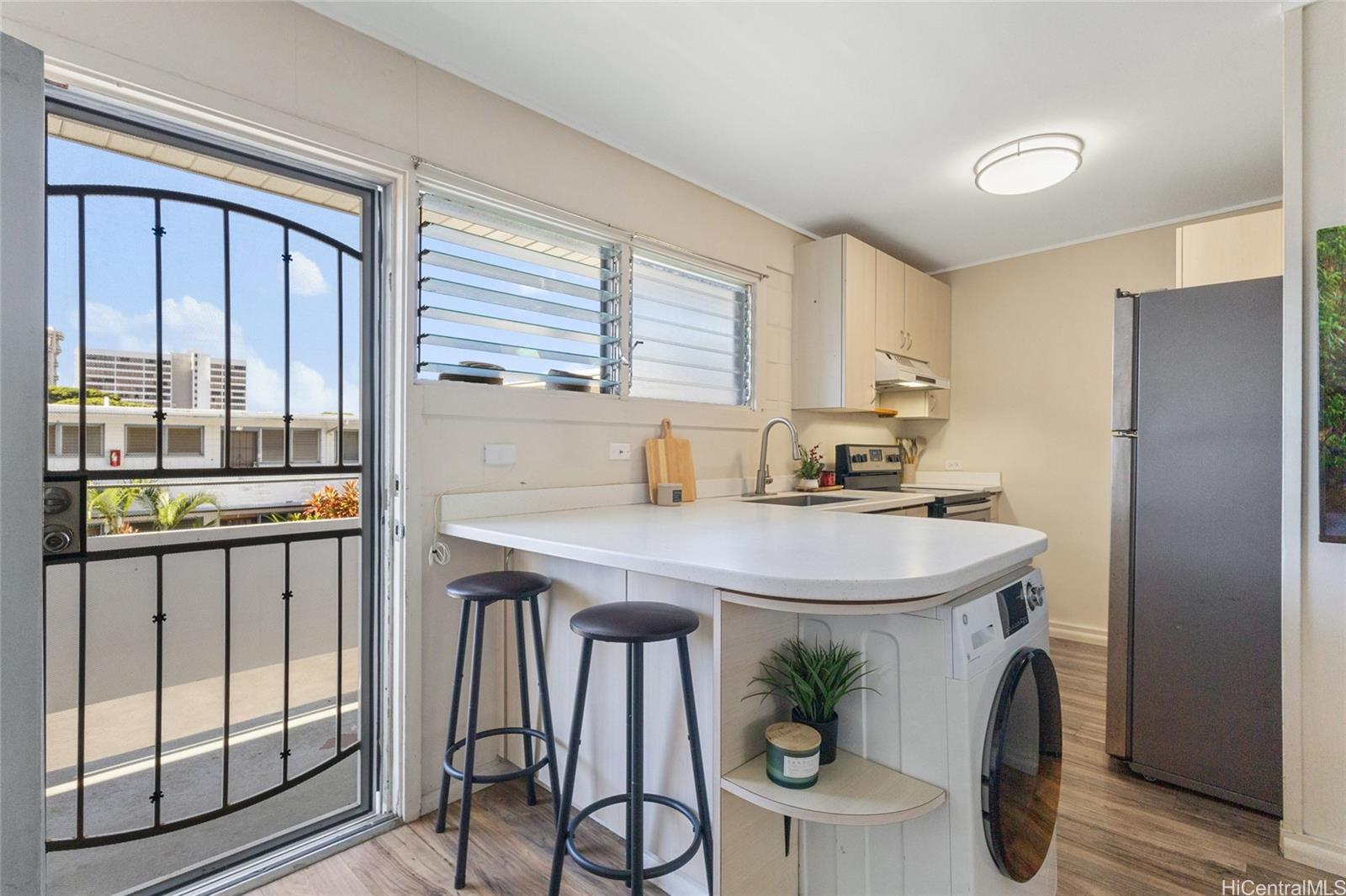 **OPEN HOUSE CANCELLED* Featuring sought-after in-unit laundry, this beautifully updated Makiki home offers modern comfort right where you want to be. Renovated in 2022, this 2-bedroom, 1-bath residence is completely move-in ready. The open, airy layout brings in abundant natural light, creating an inviting space for both entertaining and everyday living. Each bedroom offers generous size and great closet space for added convenience.