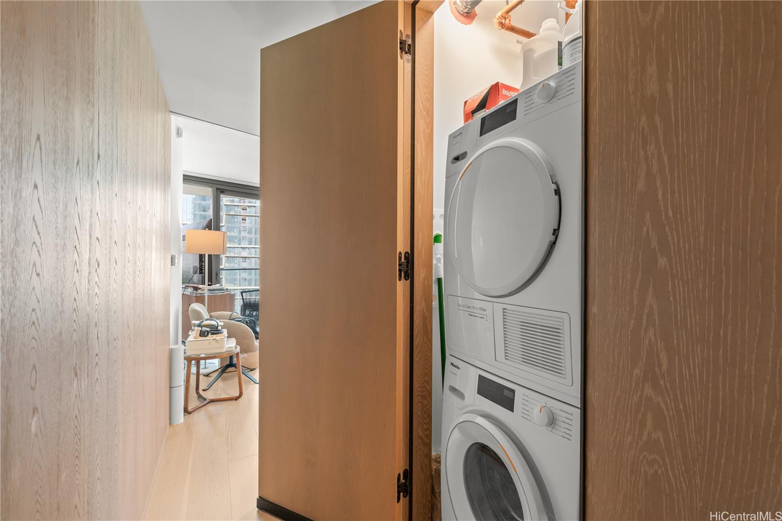Koulaは、TIME誌の2019年「最も影響力のある100人」に選ばれたジーン・ギャングによってデザインされました。この1ベッドルームユニットは、限られた室内空間を最大限に活用するよう効率的に設計されており、アメニティも充実しています。Inspiration Furnitureで購入した家具も備え、すぐに入居可能です。ハワイアンアイランドスタイルとモダンなデザインが融合したリゾートスタイルのアメニティが充実しており、設備の整ったフィットネスセンター、ラッププール、2つのスパ、プールサイドイベントルーム、カバナ、グランドラナイとラウンジ、バーベキューパビリオン、ゲストスイート、ドッグパークなどが備わっています。ホールフーズマーケットも徒歩圏内にあり、1ブロック以内には居酒屋、イタリアン、焼肉など、様々なレストランがあります。