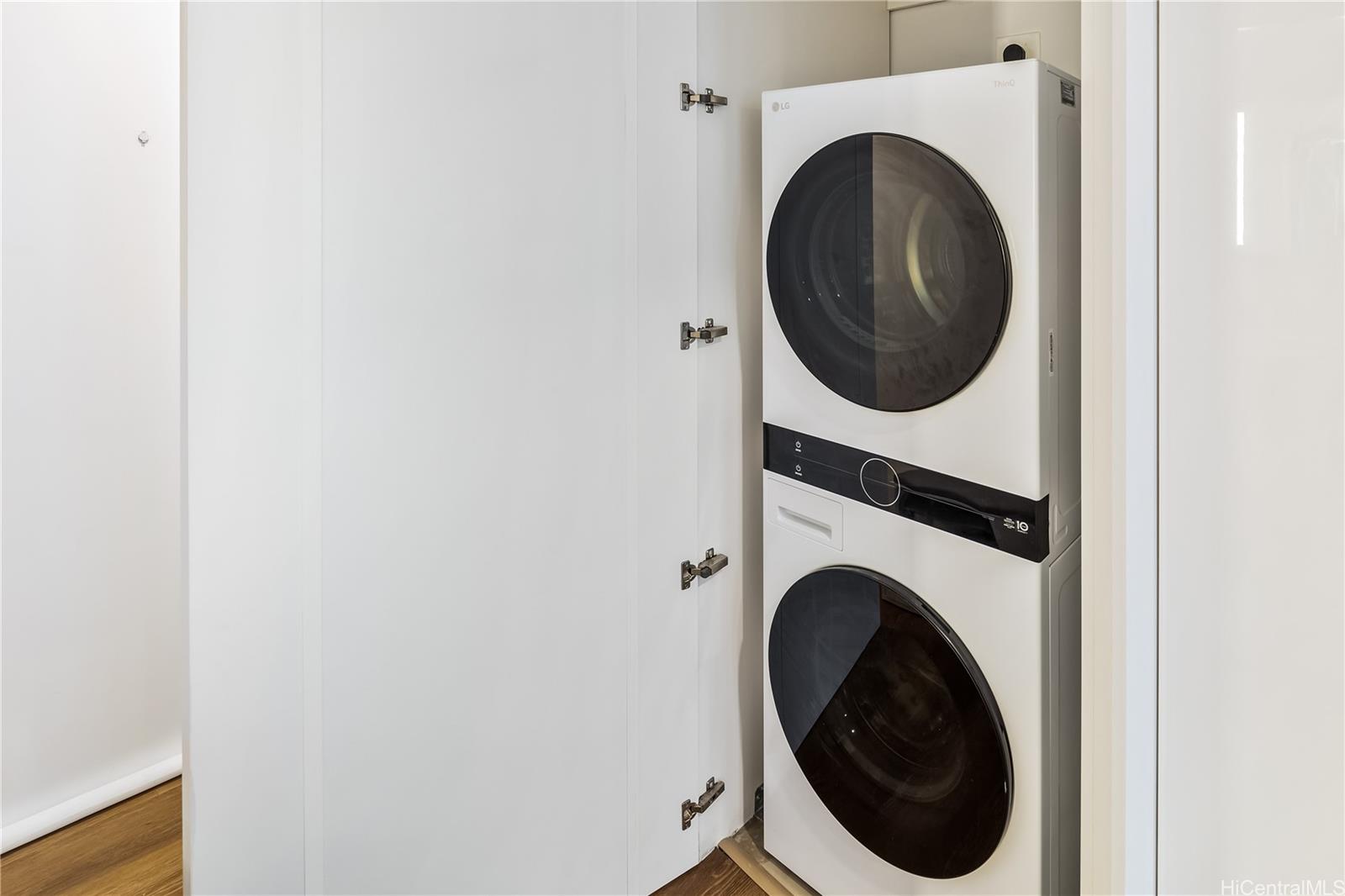 Immaculate gorgeous ocean-view studio with a lanai at A'ali'i in Ward Village, competed in 2021. Features sleek European-style cabinetry, custom Murphy bed, floor to ceiling cabinets and thoughtfully designed storage. The modern kitchen showcases clean European design with glossy integrated cabinetry, stone counters, a full height marble style backsplash, premium stainless steel Bosch appliances and polished fixtures - elegant, efficient and beautifully connected to the living space. Sold fully furnished with A/C, appliances, furnitures, new washer/dryer and cookware included. Enjoy the 8th floor resort dect with pool, spa, keiki pool, BBQ cabanas, lounges and play areas. The 42nd-floor Sky Deck offering a fitness center, yoga studio, lounge spaces, game room and open air terrace overlooking the city and coastline. Includes one assigned parking stall, generous guest and retail parking stalls, pet friendly living, surf/bike storage, dog park/shower room and 24 hour staff. Steps to Whole Foods, Ward Village, Shopping outlets, dining, parks and Ala Moana Beach. This residence blends modern island living with a clean European feel in Honolulu's premier master-planned community.