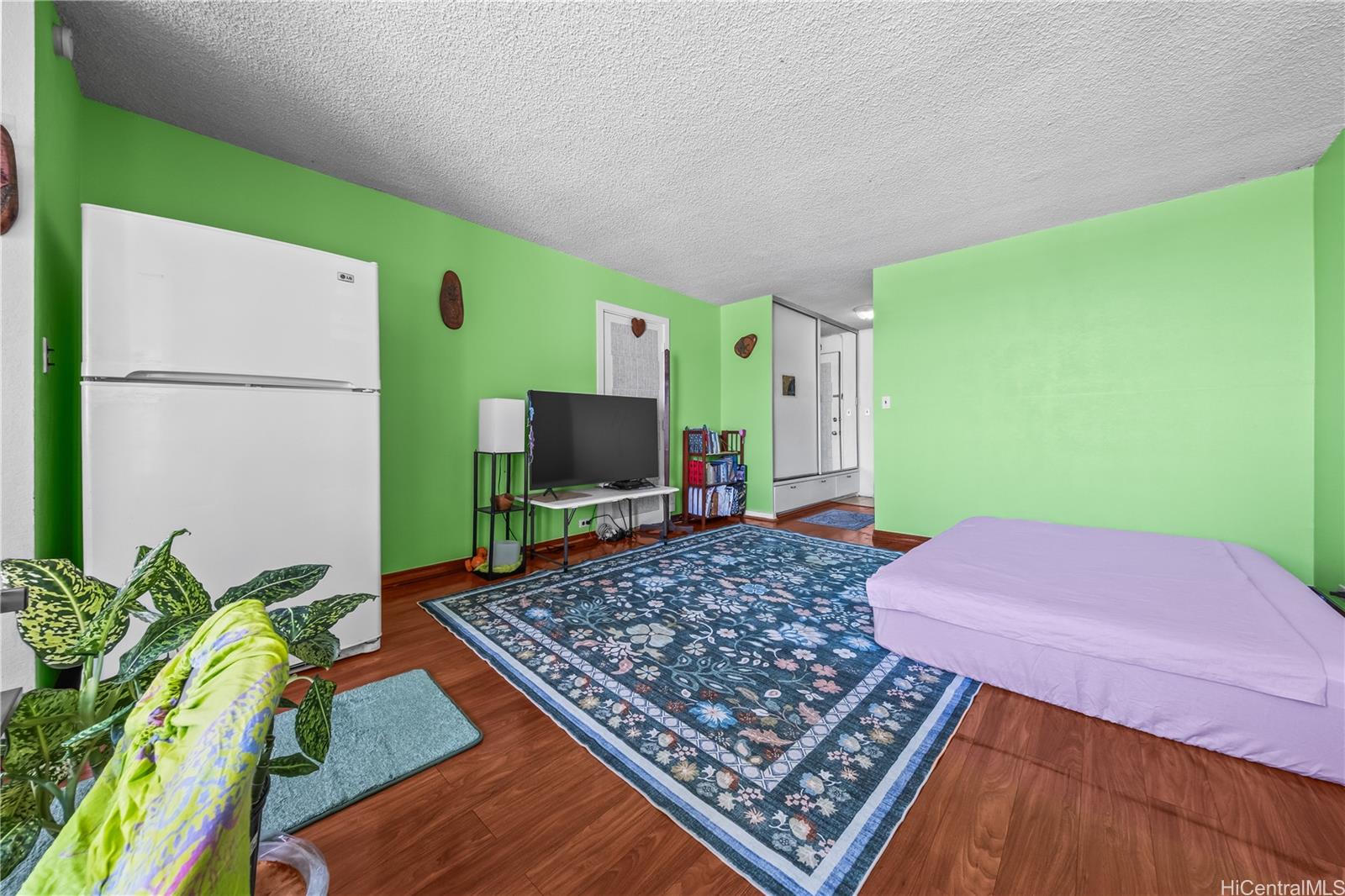 Welcome to comfortable and convenient living in this freshly painted, extra-spacious *end unit* at the popular Pacific Grand. This desirable property is a smart opportunity for a first-time home buyer or investor, offering great value in a highly sought-after Honolulu neighborhood. Step out onto your private lanai and enjoy a lovely Mountain View with occasional rainbows. Situated in a prime area, you are just minutes from a 24-hour supermarket (Don Quijote), bus lines, banks, restaurants, and major shopping destinations like Ala Moana Shopping Center, Walmart, Target, and Sam's Club. The beach is also a short distance away. Pacific Grand is a well-maintained, secured building with keyed elevators, an on-site manager, and a security guard. Residents can enjoy a sparkling pool and a community laundry room on every floor. The low monthly maintenance fee is a major financial benefit, as it covers essential utilities including electricity, hot water, sewer, water, and internet/cable TV. Parking is an additional fee and is on a wait-list. Seller willing to leave some furnishings behind with sale. This is a must-see unit offering the perfect blend of easy living and city convenience.