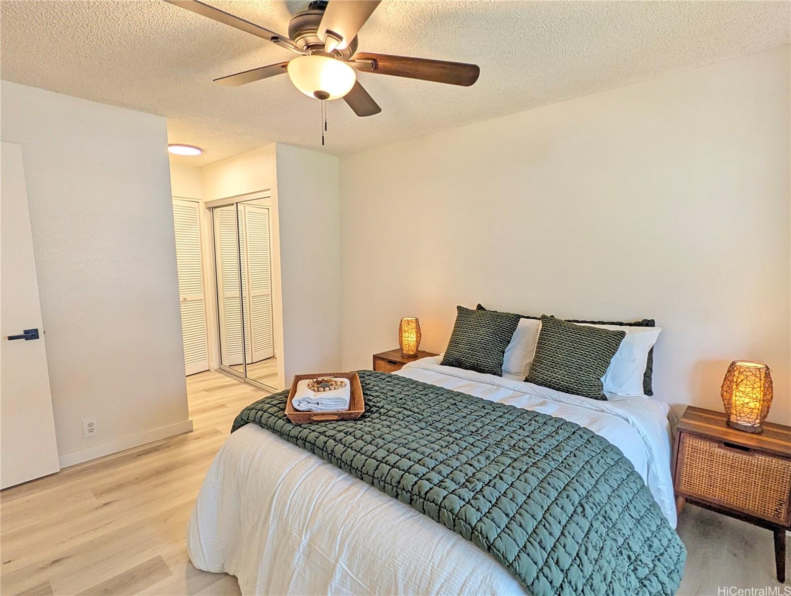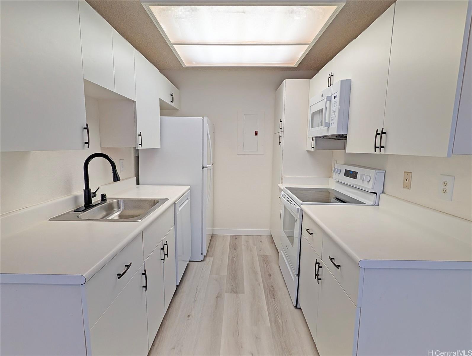 WELCOME HOME to this charming second-floor townhome, where a private balcony frames stunning Ko‘olau Mountain views and creates the perfect backdrop for morning coffee or peaceful sunset at the end of a day. Inside, the inviting layout blends comfort and style, enhanced by thoughtful updates including new flooring, fresh paint, modern ceiling fans and lighting, and a beautifully refreshed kitchen with new appliances. A dishwasher, and a full size washer and dryer add everyday ease, while window A/C units in each room keep the space cool and comfortable year-round. Nestled in a well-maintained community with convenient access to Windward Mall, grocery shopping, dining, movies, parks, and major routes like Likelike Highway and the H-3, this home offers the ideal retreat to experience Hawai‘i living at its finest. First Open House: Sunday, December 7th from 2pm–5pm.