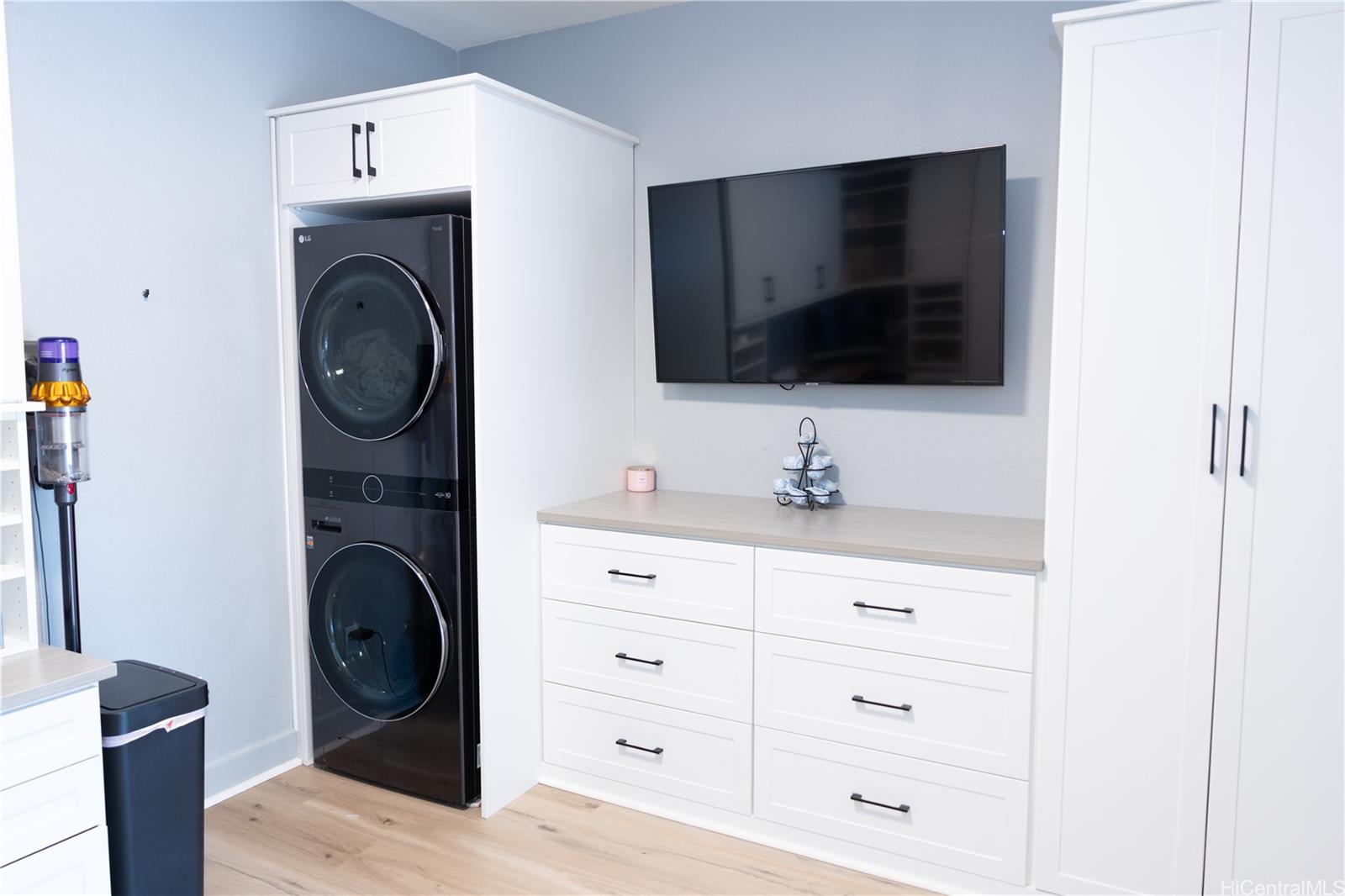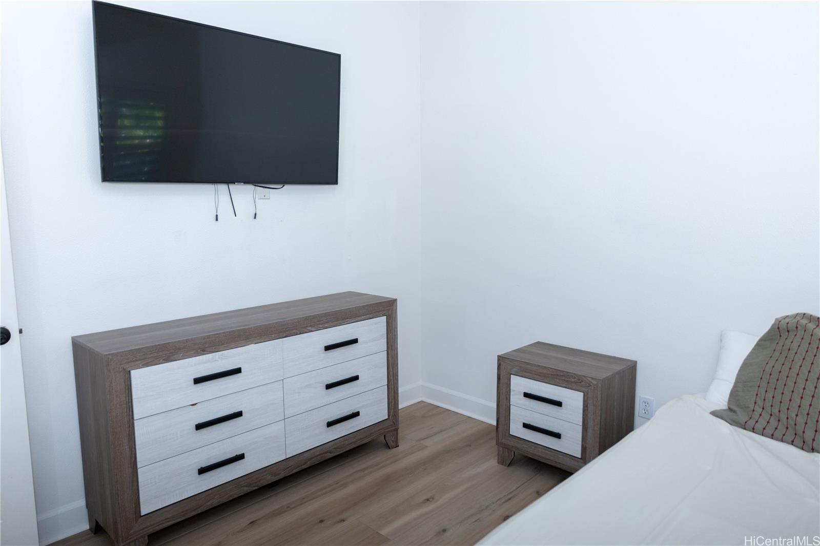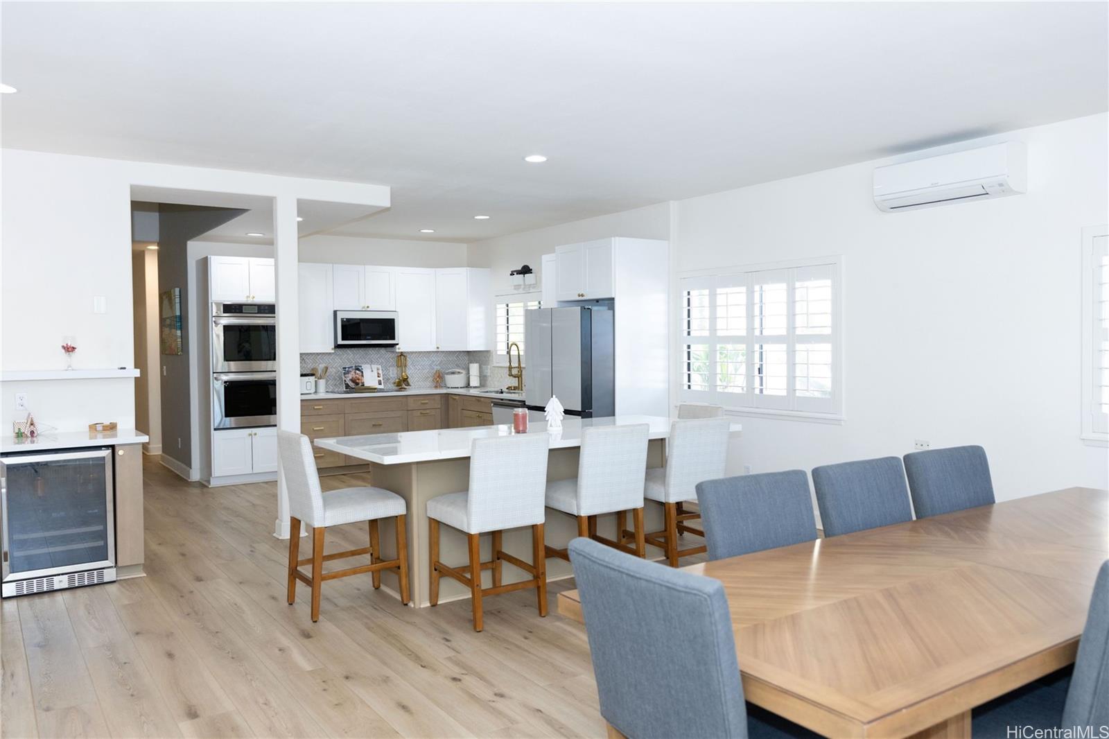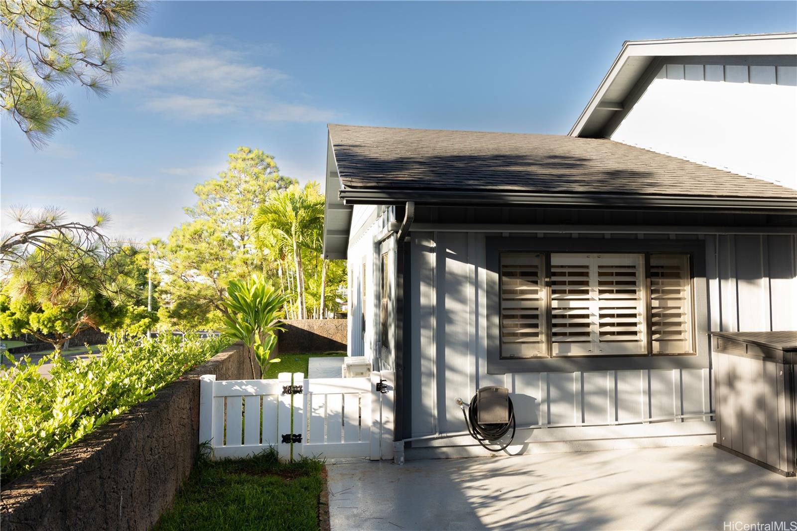 Just a short walk to Mililani Elementary and Middle Schools and Rec Ctr 7. This single story home has a versatile den, tastefully renovated with modern comfort, island charm, with true family living in mind. As you step inside, you're greeted by an elegant dining area and a stunning brand new kitchen - complete with a spacious island, corner coffee bar, and beautiful finishes throughout. The kitchen flows seamlessly into a large family room, highlighted by vaulted ceilings. The den is a thoughtfully designed as a multi-purpose room featuring custom cabinetry and a Murphy bed. Perfect as a home office, laundry room, or guest retreat - flexible space truly adapts to your lifestyle. Down the hallway, you'll find two comfortable bedrooms and a full bathroom with double sinks, ideal for family or guests. The primary suite is a true sanctuary. Custom closets, nightstands, and dressers fill the space with luxury and organization. The ensuite bathroom features a large walk-in shower and dual sinks. Step outside to a spacious, partially covered patio, perfect for entertaining friends, hosting family gatherings, or simply enjoying the cool Mililani breezes.