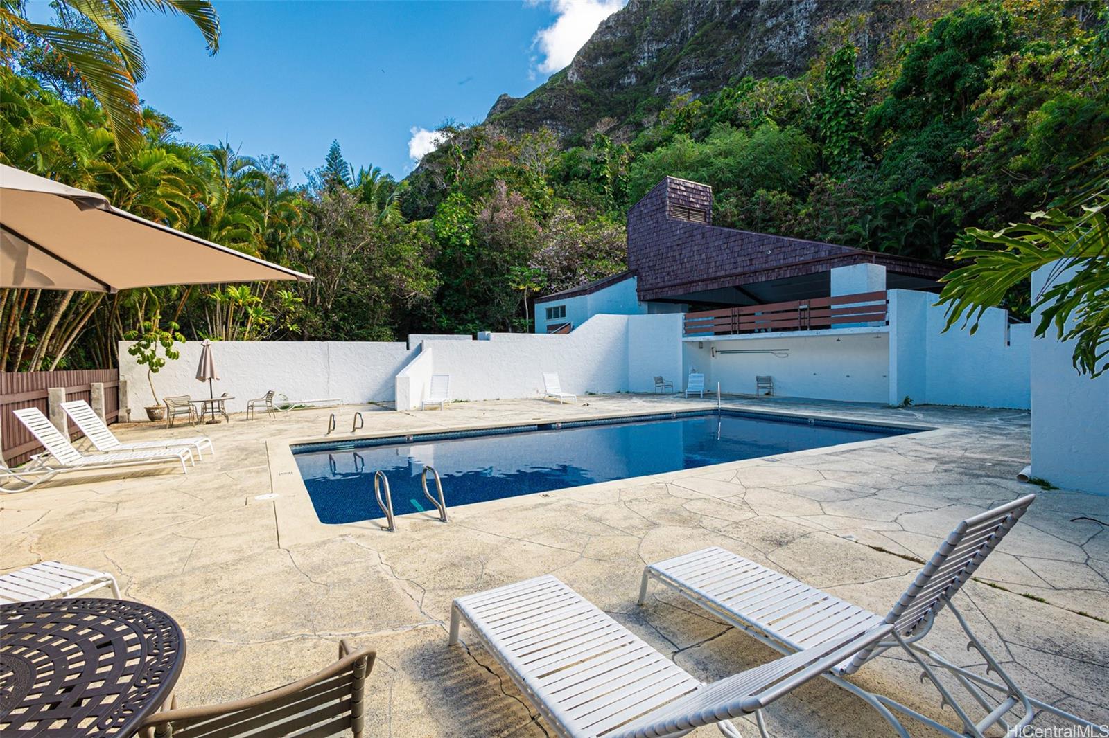 moments from diving into the community's sparkling saltwater pool, wandering down to Kaaawa's sandy shores, or