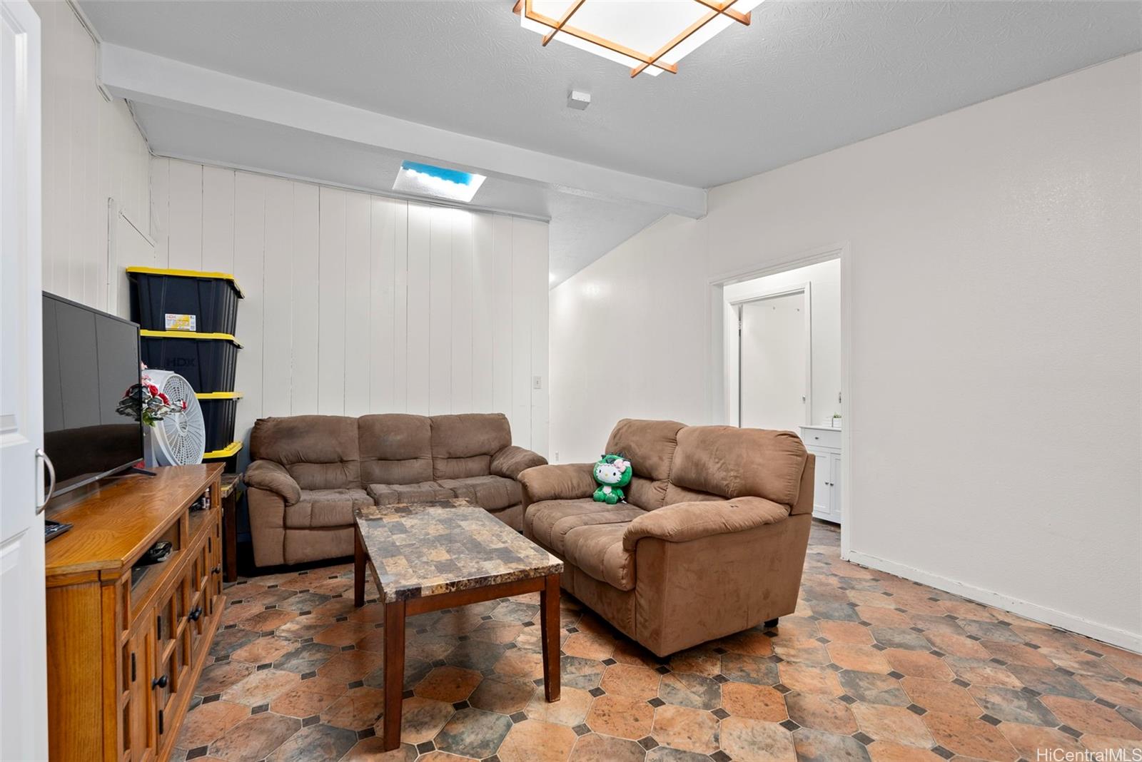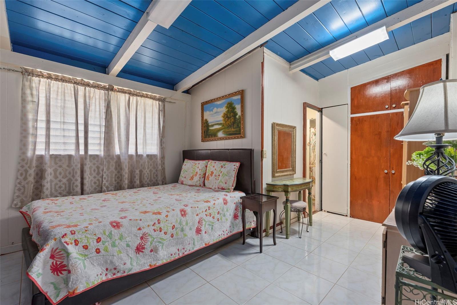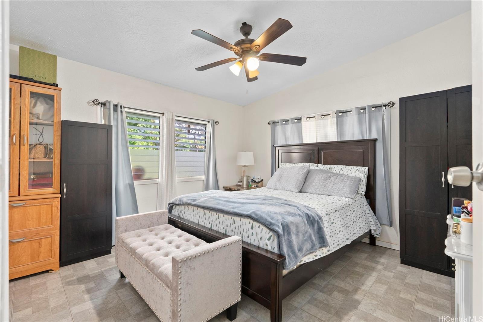 This beautiful multi-generational living 2-story home is available for those investors and/or primary occupant buyers located in the heart of Pearl City at Momilani neighborhood. There are three living areas with full kitchen/kitchenette and laundry. A spacious 3 bedroom with 2 full baths at the lower front of the home with ceramic tile flooring, updated bathroom in the primary room and a large bedroom with a window-type AC unit along with an enclosed storage area within the home that can be turned into a room making it a possible fourth bedroom if need be. The 2 bedroom with 1 full bath at the lower back with ceramic tile flooring, updated bathroom and kitchenette. The 3 bedroom with 2 full baths at the upper level with ceramic tile flooring, updated kitchenette and an enclosed lanai for a storage area as a bonus. A half bath on the lower level access from the exterior of the home. In addition, there are 44 photovoltaic panels (leased) that is based on consumption with a new roof installed in May 2025. The property is in close proximity to public schools, public parks, Pealridge, Walmart, Foodland Farms, H-Mart, freeway access, and more. Number of rooms does not match tax records.