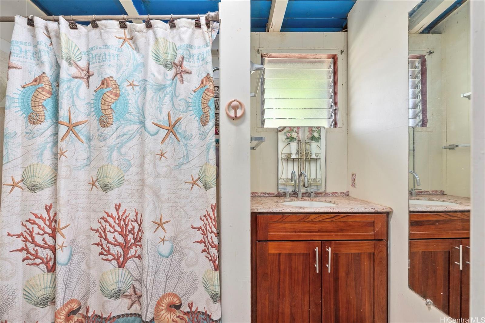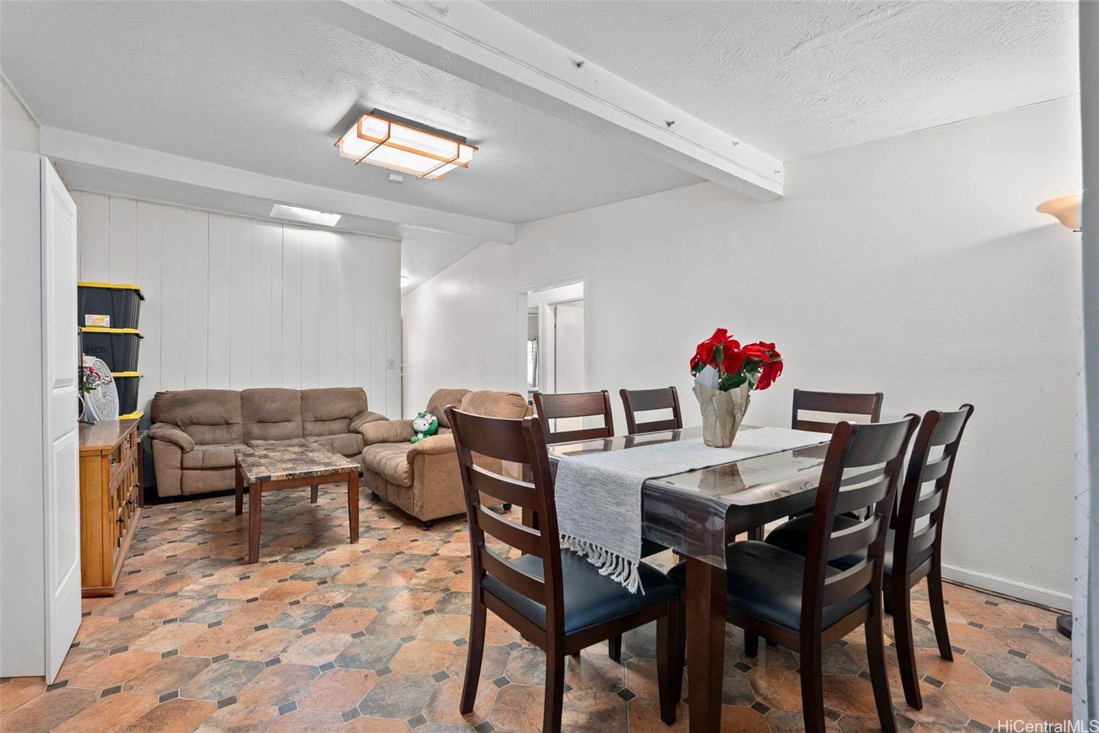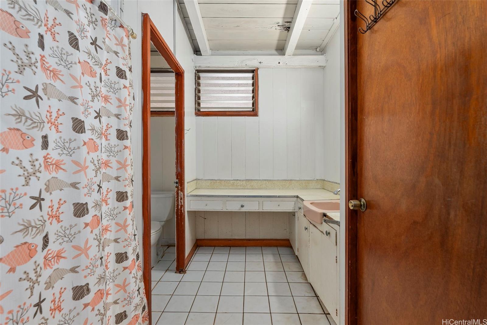 This beautiful multi-generational living 2-story home is available for those investors and/or primary occupant buyers located in the heart of Pearl City at Momilani neighborhood. There are three living areas with full kitchen/kitchenette and laundry. A spacious 3 bedroom with 2 full baths at the lower front of the home with ceramic tile flooring, updated bathroom in the primary room and a large bedroom with a window-type AC unit along with an enclosed storage area within the home that can be turned into a room making it a possible fourth bedroom if need be. The 2 bedroom with 1 full bath at the lower back with ceramic tile flooring, updated bathroom and kitchenette. The 3 bedroom with 2 full baths at the upper level with ceramic tile flooring, updated kitchenette and an enclosed lanai for a storage area as a bonus. A half bath on the lower level access from the exterior of the home. In addition, there are 44 photovoltaic panels (leased) that is based on consumption with a new roof installed in May 2025. The property is in close proximity to public schools, public parks, Pealridge, Walmart, Foodland Farms, H-Mart, freeway access, and more. Number of rooms does not match tax records.