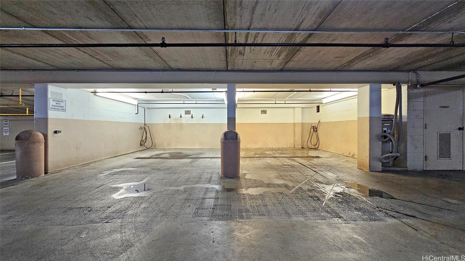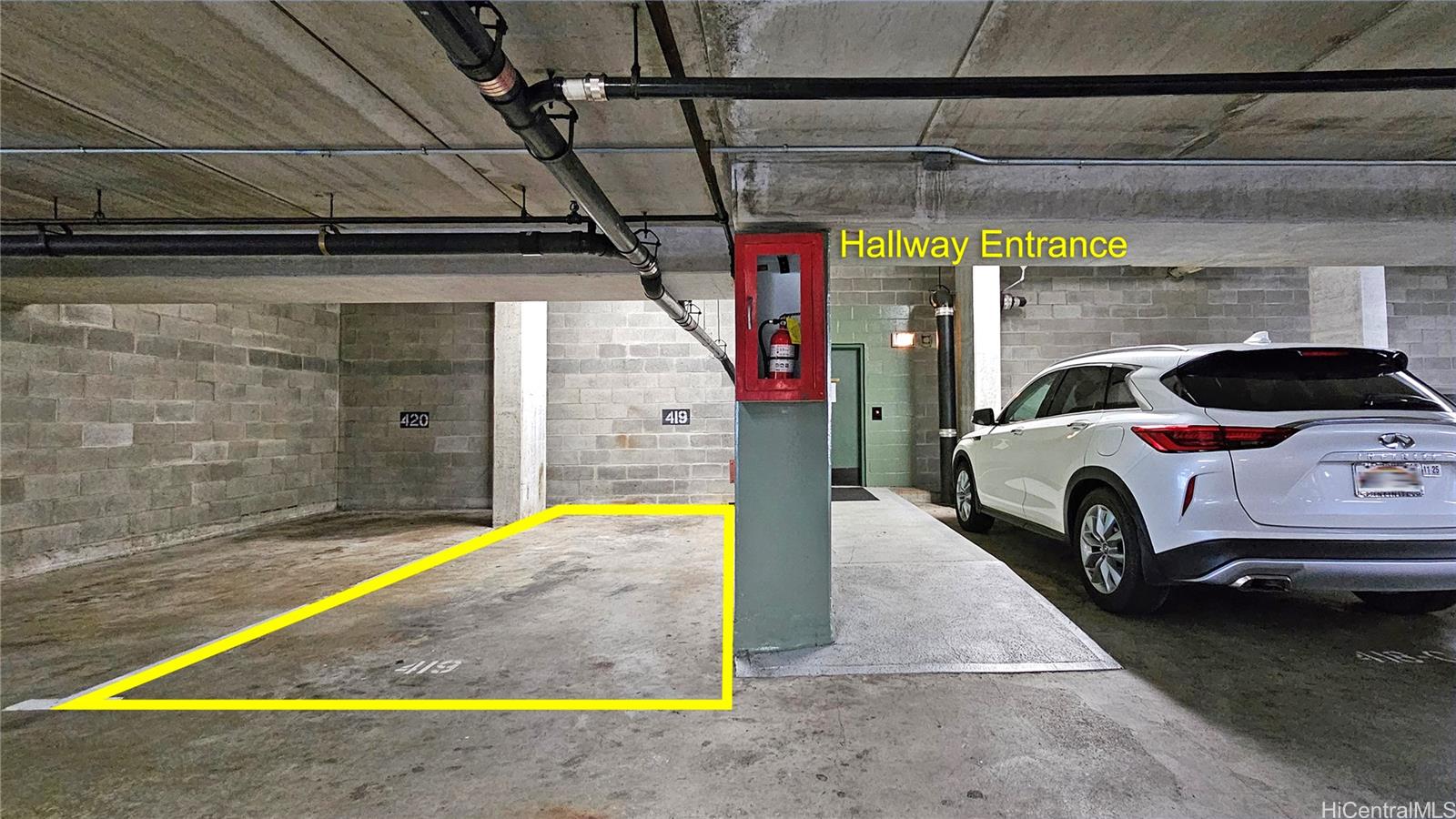 Brand new carpet installed 4/14/2025. Largest 1 bedroom in Iolani Court Plaza. Extra spacious, 1 of only 2 units that are 578 sq ft of interior living space. Brand new paint. Renovated kitchen and bath. Desirable covered secured parking stall on same floor as unit, just exit door on 4th floor hallway. Resort like amenities and central A/C, 25 guest stalls, 2 tennis courts, pickle ball court, pool, jacuzzi, sauna, putting green and car wash area. Fee simple.