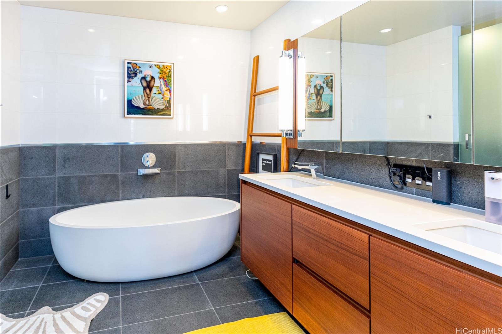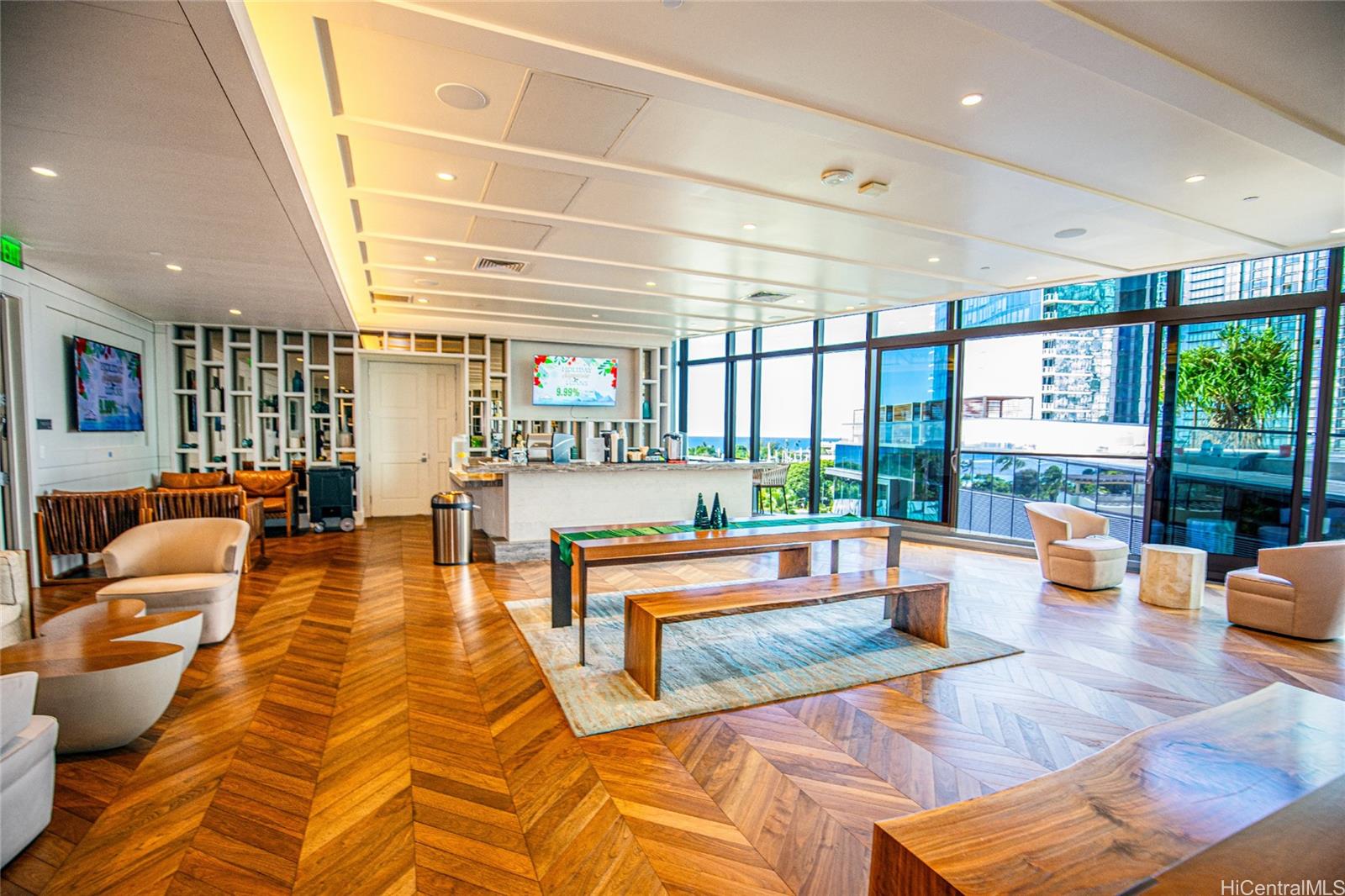 アナハ ~「光の反射」は、ホノルルの名高いワードビレッジに位置する洗練されたラグジュアリーな住まいです。ダイヤモンドヘッド方面の角地に位置し、ベッドルーム3室、バスルーム3.5室、そしてオーシャンビューの主寝室を備えています。エレガンスと機能性を兼ね備えたこの住宅は、9フィート(約2.7メートル)の天井高、ミーレ社製の家電、ドルンブラハト社製の照明器具、ヨーロッパ製のキャビネット、メインリビングエリアのフローリング、ベッドルームのカーペットに加え、独立したランドリールーム、ワインセラー、そして隣接する2台分の駐車スペースと同じ階に66平方フィート(約6.3平方メートル)の収納スペースを備えています。居住者は、コンシェルジュ サービス、オーシャン ビューのプール、テニス コートとバレーボール コート、ゲスト スイート、シェフのキッチン、ドッグ パーク、ゴルフ シミュレーター、パッティング グリーンなどのワールドクラスのアメニティをお楽しみいただけます。また、セントラル空調、ガス調理、ペット歓迎ポリシー、ケーブルテレビ、ガス、温水、インターネット、水道、下水道を含む包括的なメンテナンス カバレッジにより、特別な評価なしで 100% 保険がかけられた快適さと安心が保証されます。