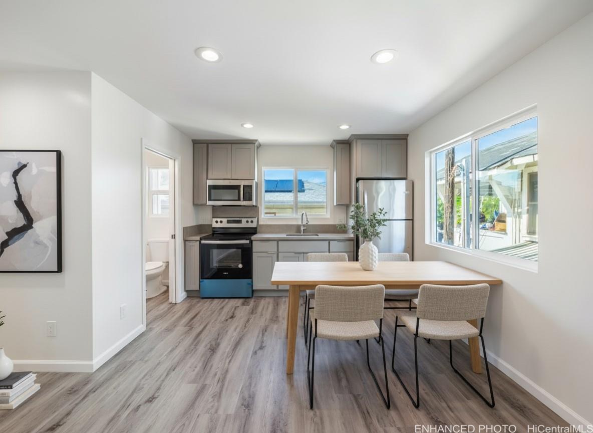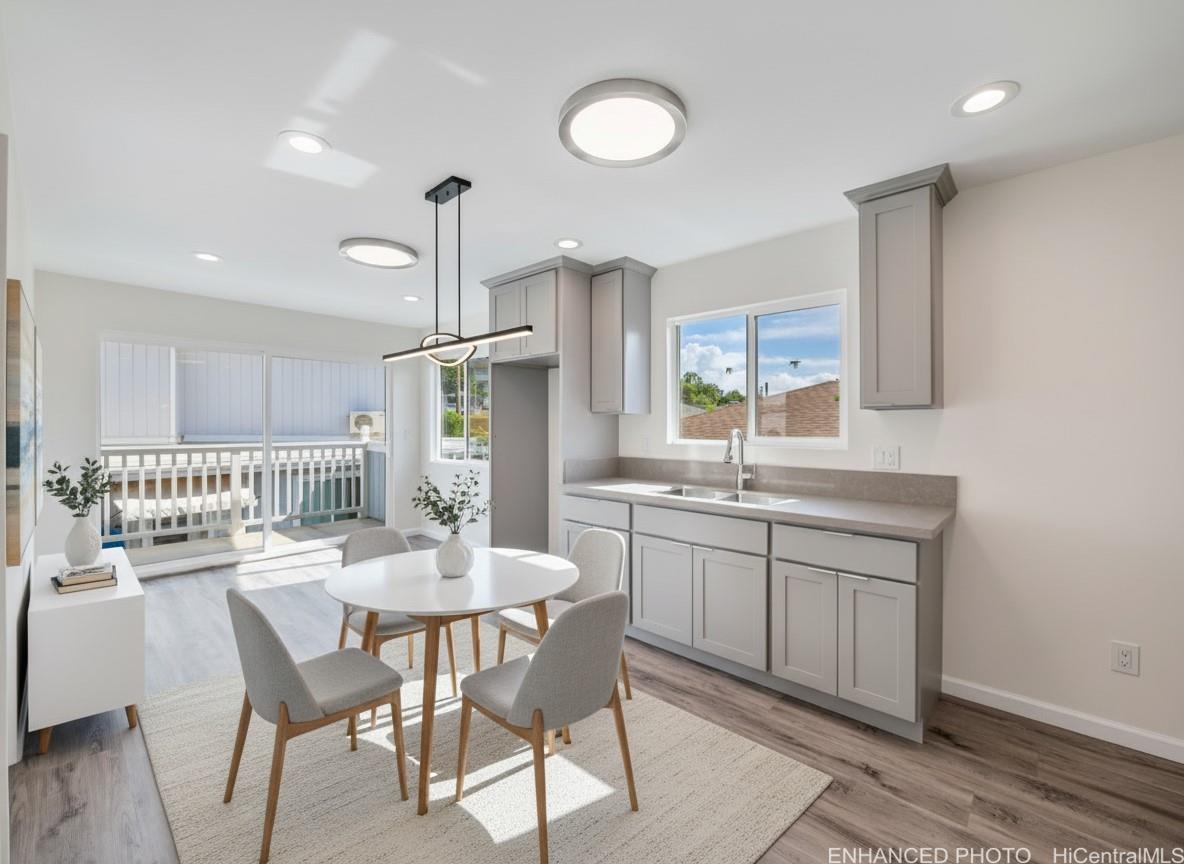 Discover a brand-new, never lived in home in the heart of Punchbowl. This newly built two-story residence offers a flexible multi-generational layout with a 3-bedroom, 1.5 bath living area with full kitchen downstairs, and a 2-bedroom, 1-bath living area with a wet bar upstairs. The upper level features a wrap-around deck--perfect for relaxing, entertaining, or enjoying the Punchbowl breezes. With 5 bedrooms and 2.5 baths total, this home showcases modern finishes throughout, tons of storage under the house, and two open parking stalls. Conveniently located near H-1, Queen's Medical Center, Downtown Honolulu, restaurants, and shopping. A rare opportunity to own a brand-new home in town with outstanding versatility, storage, and urban convenience. First Open House Sunday, December 14th, 2-5 pm.