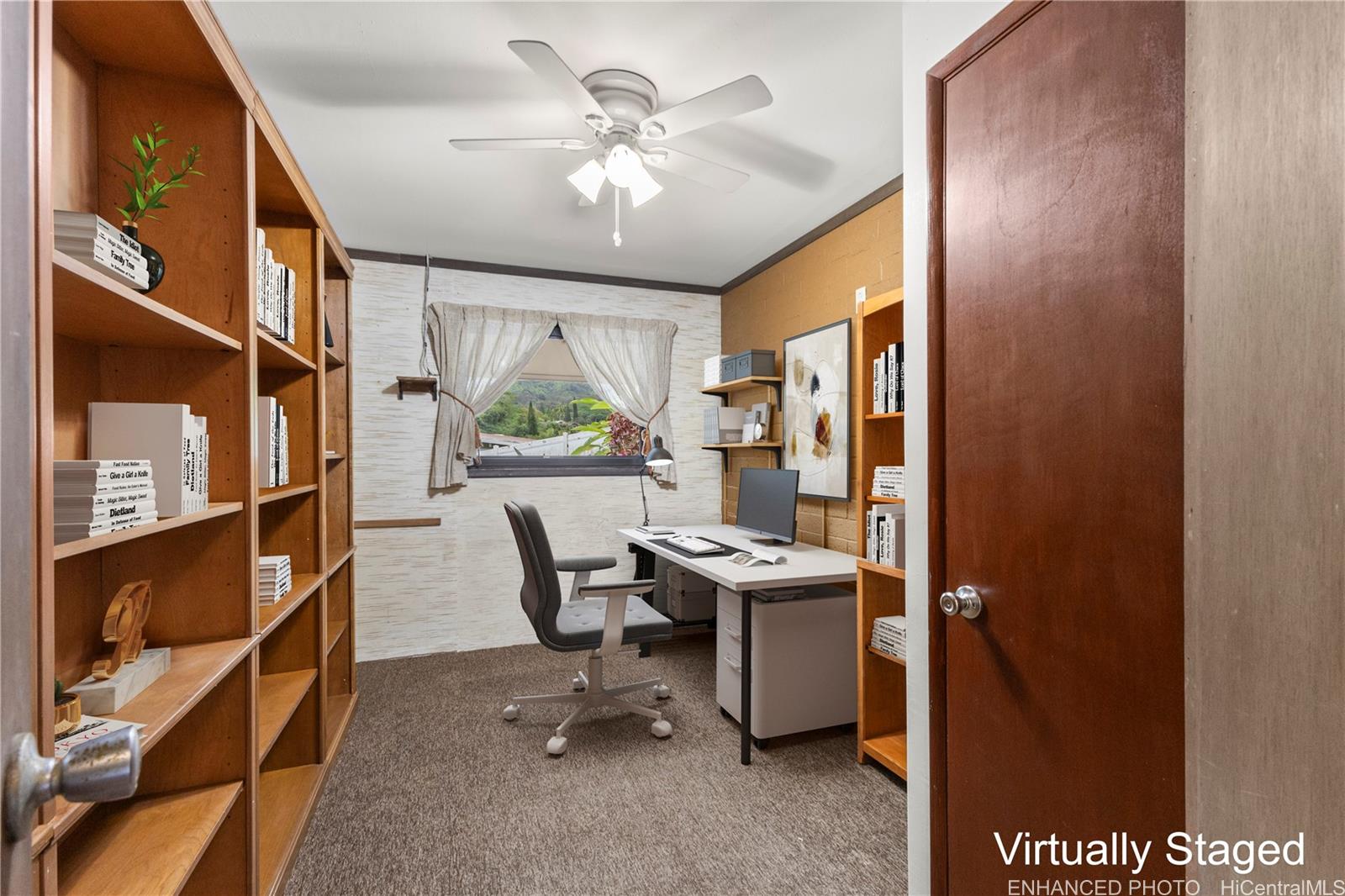 雄大なコオラウ山脈に抱かれた静かなマウナウィリ・コミュニティで、貴重な物件をお探しください。3ベッドルーム、2バスルーム、そしてボーナスの書斎付きのこの住宅は、袋小路の突き当たりにある12,090平方フィート(約1,200平方メートル)の広大な敷地に建ち、スクリーン付きベランダにある屋内温水プールが最大の魅力です。大きな窓とスライドドアを開けると、緑豊かな熱帯植物を見渡せる広々としたラップアラウンドデッキがあり、まるでツリーハウスのような静寂に包まれた空間を演出しています。フェンスで囲まれた屋外スペースには、小さな芝生エリアと成熟した植栽が広がり、高床式のデッキは木々に囲まれたプライベートな空間を提供します。室内には自然光が差し込み、リビングスペースに温かさを添えています。ガレージにある引き下げ式はしごから広々とした屋根裏部屋へ出ることができ、ハワイの物件としては珍しいほどの収納スペースを確保しています。レジデンスには、2台分のカーポート、追加の私道駐車スペース、広々とした屋根裏スペース、そしてプールの暖房専用の屋上ソーラーパネルも備わっています。カイルアタウン、ビーチ、学校、高速道路へのアクセスからわずか数分の場所に位置するこのマウナウィリのリトリートは、オアフ島ウィンドワードで最も静かなエリアの一つに位置し、プライバシー、広々とした空間、そして可能性を兼ね備えています。
