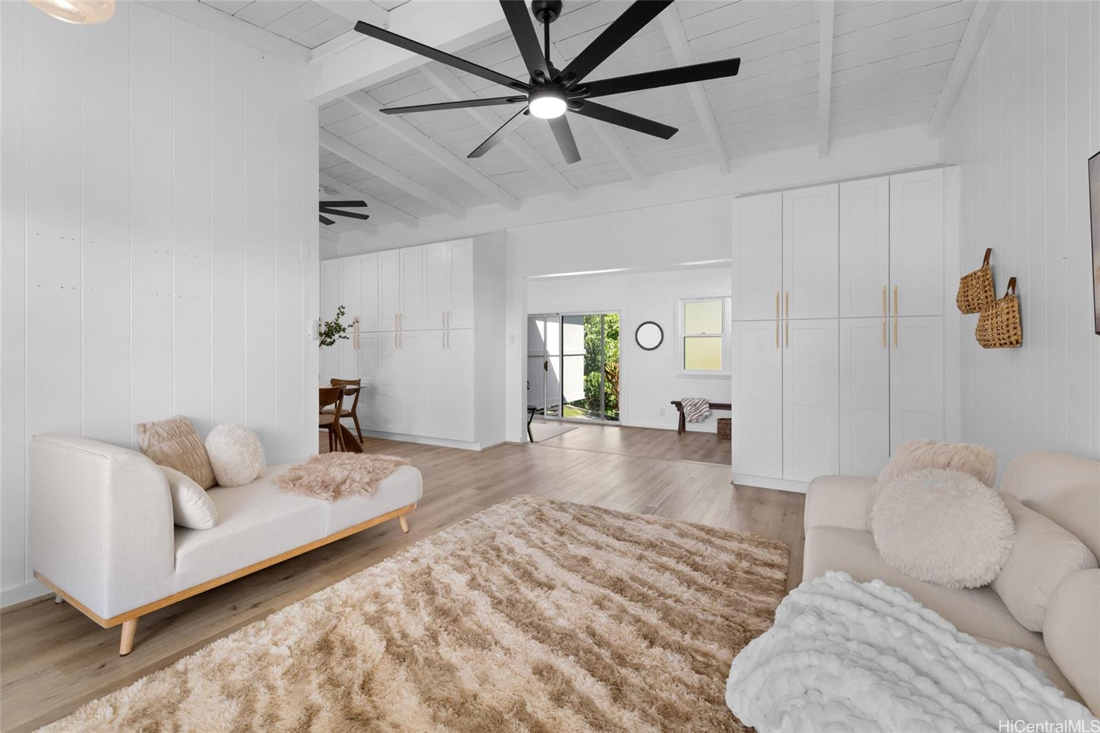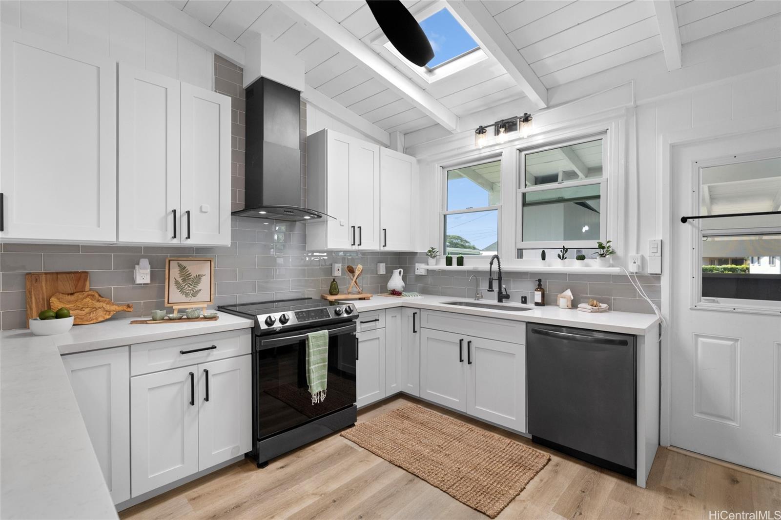 Welcome to a rare Manoa retreat, where the rhythm of valley rains and the shimmer of morning light create the quiet poetry of the valley. Set on an expansive 19,003 sq. ft. parcel embraced by lush surroundings, this traditional Manoa home with vaulted ceilings has been thoughtfully renovated with a 2023 roof, 200-amp electrical, vinyl windows, newer appliances, luxury vinyl flooring, quartz countertops, and abundant storage, offering a refined yet comfortable modern living experience. Outdoors, a serene island sanctuary unfolds along the valley’s natural contours, framed by mature mango, avocado, coconut, and banana trees on the private yard area beyond the valley’s whispering waters. The gentle flow of Manoa stream, resting well below street level with FEMA waiver, provides a peaceful backdrop that feels worlds away. Here, tranquility meets convenience, just moments from UH, parks, cafés, and town amenities; a place where comfort and the calm of the valley come together in timeless harmony.