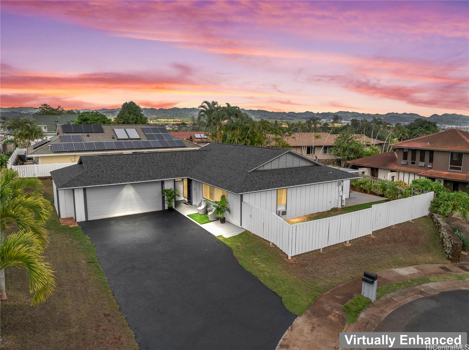 Honey....STOP the TACOMA! This is the Mililani home you've been waiting for. Situated on a QUIET and HUGE 8,381 sq ft cul-de-sac lot, this gorgeous home has been tastefully remodeled and is ready for it's new owners to move in today. The wonderful backyard features palm trees, palm trees and more palm trees..... along with an open lanai and tons of open space to host your backyard BBQ's while tossing the football or playing fetch with Boo. With enough space to park up to 6 trucks and/or a boat, a long refinished driveway leads to an attached garage where you can house 2 more cars. That's right....enough parking for 8 vehicles on your own property! Need a bigger house? No problem as the possibilities are endless. You could build out, or you can build up to take advantage of the Mountain, Ocean and Diamond Head Views. Enjoy the outdoors and the convenience of being located within a short distance of Mililani Uka Elementary, MTA Rec Center 4 Swimming Pool, Kuahelani Neighborhood Park, Mililani District Park & Kealohi Park. Hurry and schedule your showing today as this home is an extremely rare find and WILL NOT LAST!!