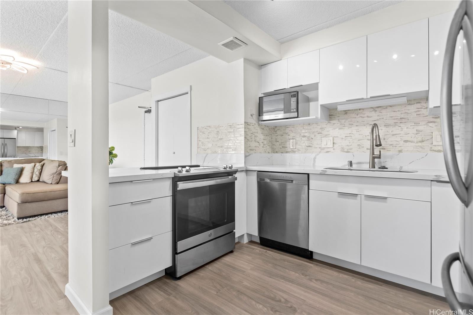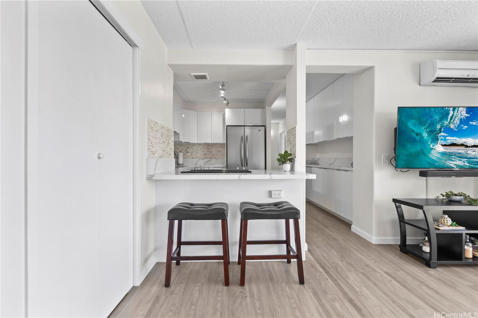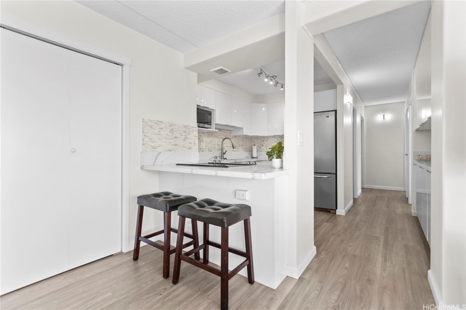 ワイキキの中心部、ケオニ・アナでアイランドライフをお楽しみください。美しく改装され、すぐに入居可能なこのコンドミニアムからは、フォート・デルシー公園に沈む夕日を眺めることができ、すぐそばに海があります。明るくモダンなインテリアに足を踏み入れると、光沢のあるソフトクローズキャビネット、クォーツカウンタートップ、そして新品のステンレス製家電を備えた真新しいキッチンが目に入ります。バスルームは、新しいタイルの壁、最新の洗面台、そして新しいシャワーでセンス良くリフレッシュされています。家全体に高級防水ビニールプランクフローリングが敷かれ、内外装は新しく塗装され、新しい窓用エアコンとリビングエリアにはスプリットエアコンが設置されています。この細部にまでこだわってアップグレードされた2ベッドルーム、1.5バスルームのレジデンスを、いち早くお楽しみください。ケオニ・アナは、24時間体制のセキュリティ、十分な広さのゲスト用駐車場、バーベキューエリア、そして美しいウォーキング/ジョギングコースを提供しています。屋根付きのベランダから公園と山の景色をお楽しみいただけます。ワイキキ ビーチ、世界クラスのレストラン、ショッピング、そして最高の島暮らしからわずか数分です。