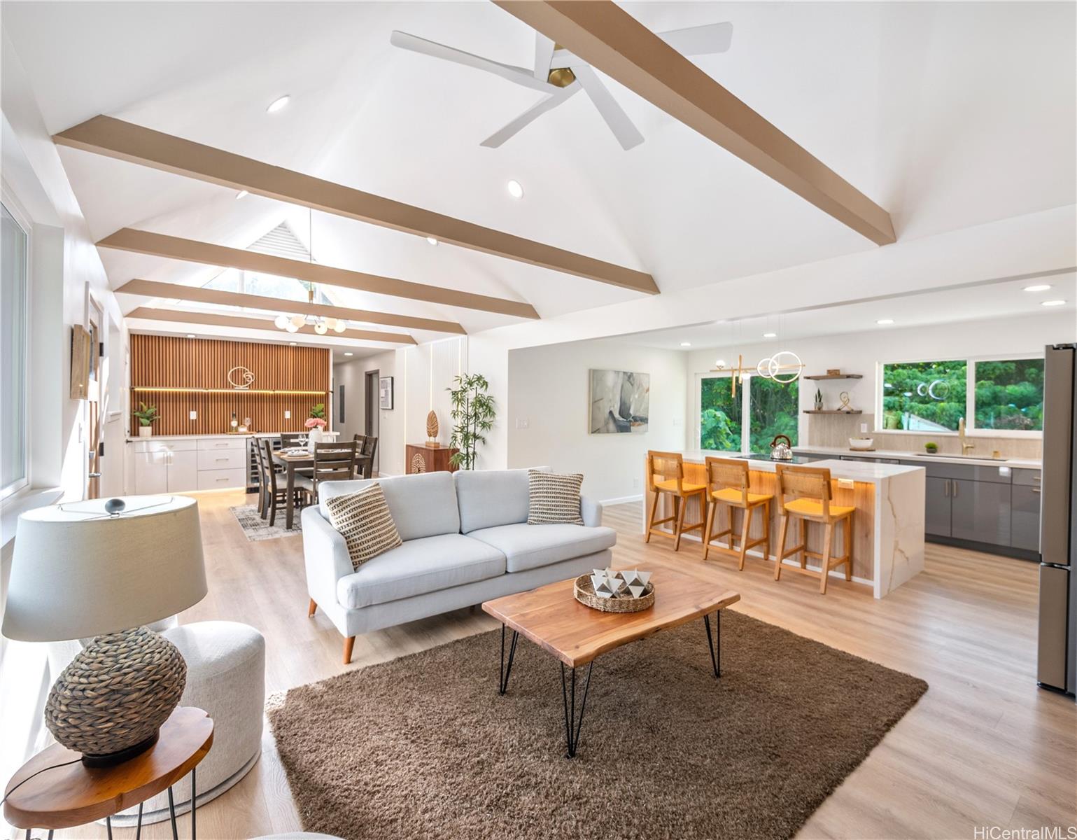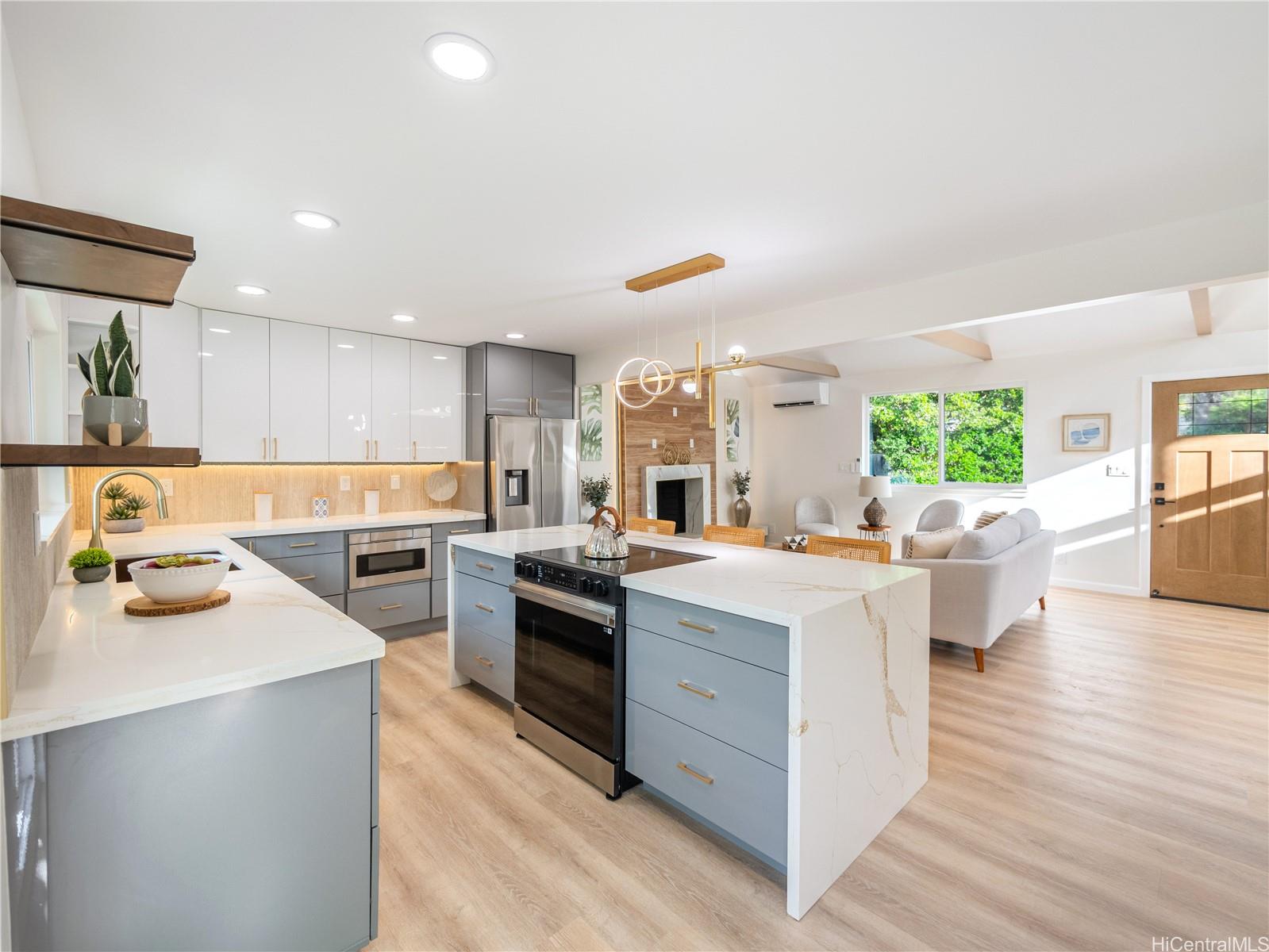 NEW LISTING IN MANOA!! This completely renovated 3bed/2bath home is located in desirable Manoa Valley features an open floorplan, high cathedral ceilings, wine refrigerators, quartz counter tops, designer kitchen, resort-like bathrooms, new appliances, ALL new fixtures, recessed lights, backsplash, new cabinets, new windows, split AC's, accent walls, laundry room, cool breezes, quiet cul-de-sac, ample parking, an additional separate space perfect for home office/gym/man cave/or multi-generational living, and an enclosed landscaped yard perfect for pets, children, & entertaining family & friends. This home is conveniently located near Manoa Shopping Center, Manoa & Noelani Elementary, Manoa Park, Safeway, Punahou & Mid Pacific Schools, University of Hawaii, Chaminade, freeway access, many restaurants, banks, parks, bus stops & more…Don’t miss this opportunity!!