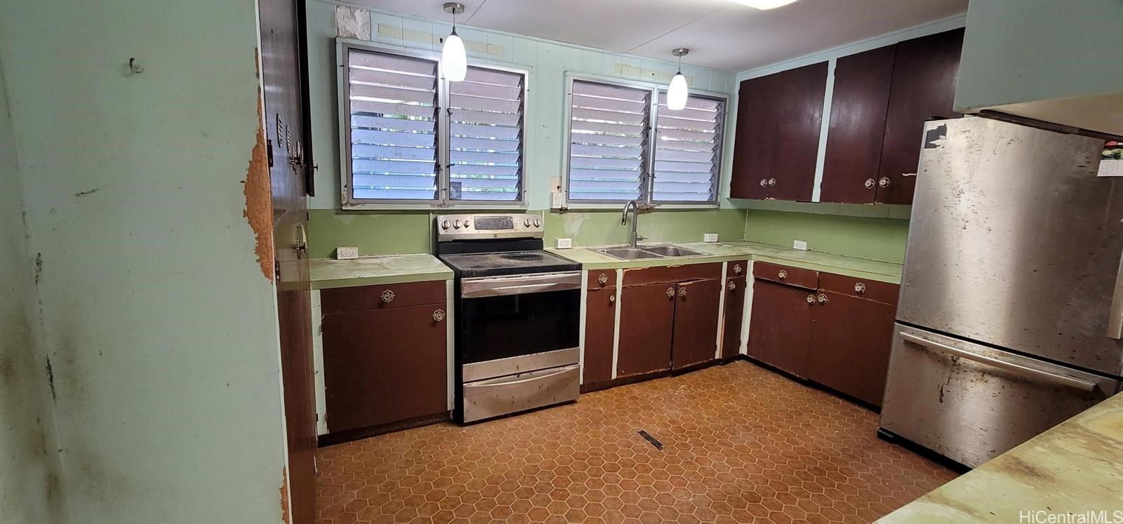 Unique opportunity to own a large lot on a great street in desirable Keolu Hills! Fenced with mature white pirie mango, orange, apple banana & puakenikeni trees. Renovate or rebuild this fixer to create your own paradise in Kailua! House has 2 split AC units & electric vehicle charger, family & laundry rooms. Electric & sewer line have been updated. AC & ceiling fans work, but are being sold As-Is along with the other appliances & fixtures on the property. No repairs to property or appliances will be made. Close to schools, dining options & Enchanted Lake Shopping Center.