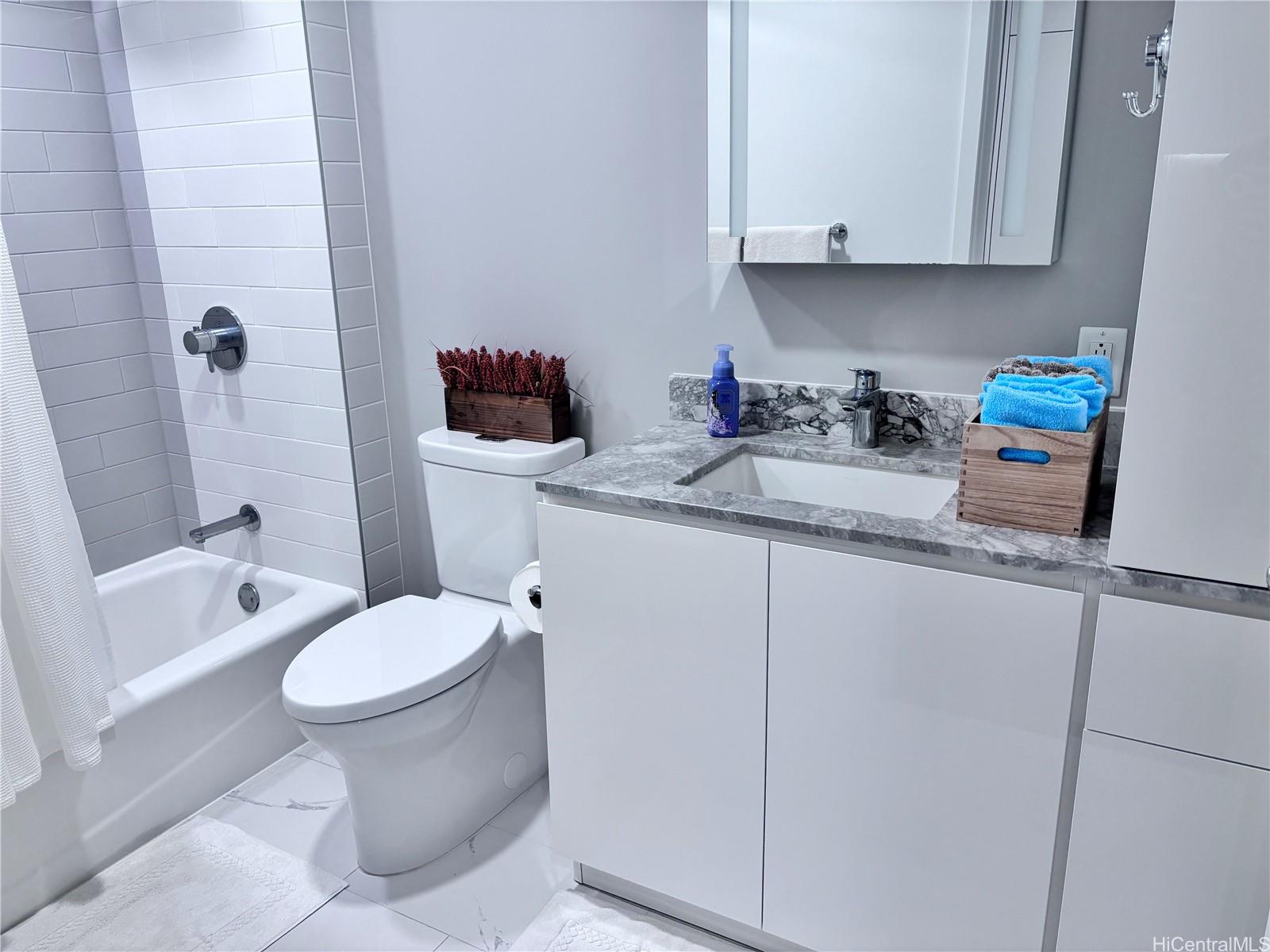 建物の涼しい方面にある高層階の家具付きスタジオに住んでみませんか。このスタジオは大変お手頃な価格で、クイーンサイズのマーフィーズベッド、ソファ、折りたたみ式ダイニングテーブル、ビルトインのワークセンターとクローゼット、たくさんの収納スペース、有名デザイナーのローレン・ロテットが手がけたエレガントなインテリアにぴったり合う家具付きラナイが備わっています。調理器具、食器、銀食器など、キッチン用品一式もお忘れなく。セントラル空調システムで、いつでも涼しい環境を演出できます。このユニットは、すぐに快適なライフスタイルを送れるよう、設備が完備されています。アメニティはリゾートスタイルで、フィットネスセンター、ヨガルーム、プールデッキ、カバナに囲まれたジャグジーなどがあります。プライベートラナイから素晴らしい海と街の景色を、42階のサンセットスカイラウンジからパノラマビューをお楽しみいただけます。すぐ近くには、Cino、Rinka、Onkee、Tonkatsu Kuro、Planted by La-Tour、Dean & DeLucaなど、数々の美味しいお店があります。州内有数のホールフーズマーケットや、土曜日に開催されるカカアコ・ファーマーズマーケットへも徒歩わずか数分です。