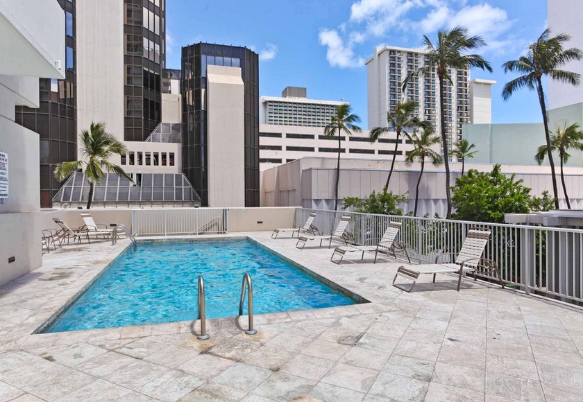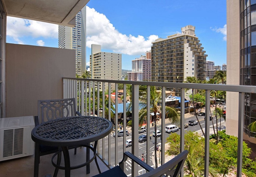 建物内に駐車場があり、エレベーターは、セキュリティーキーがないと外部の人が入れない様に安全策が取られています。道の対面には長崎チャンポンの“リンガーハット”。カラカウアを渡れば“ロイアル・ハワイアン・ショッピングセンター”です。ABCストア、食材が買える“フードパントリー”も歩いてすぐです。