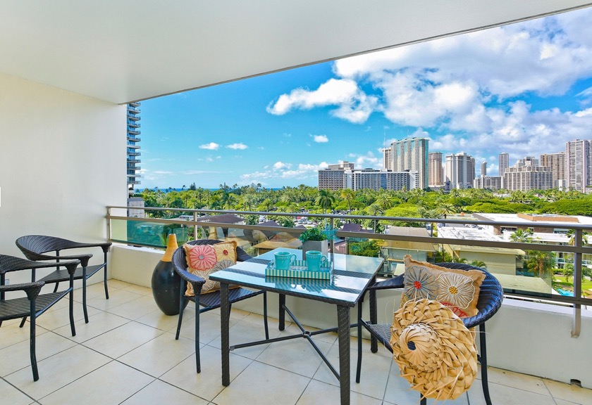 ファッショナブルなワイキキの隠れ家的なバケレンのユニット。2ベッドルーム、1バス。693平方フィートのユニットには、裏側と表に二つのラナイが付いています。周囲にはハレクラニ・ホテル、トランプタワー、パークホテル、シェラトンがひしめきあう中にひっそりと静かなトロピカルなオアシスです。海のアクセスも徒歩3分と抜群。